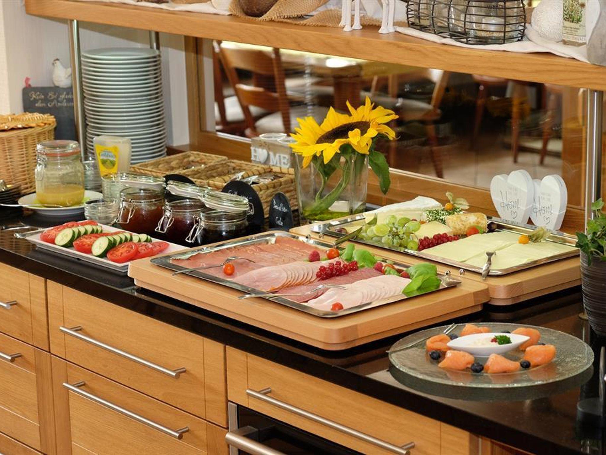 Genießen Sie das Eifeler Frühstücksbuffet oder ein Schlemmer-3-Gänge Menü am Abend mit Produkten vom eigenen Hof.