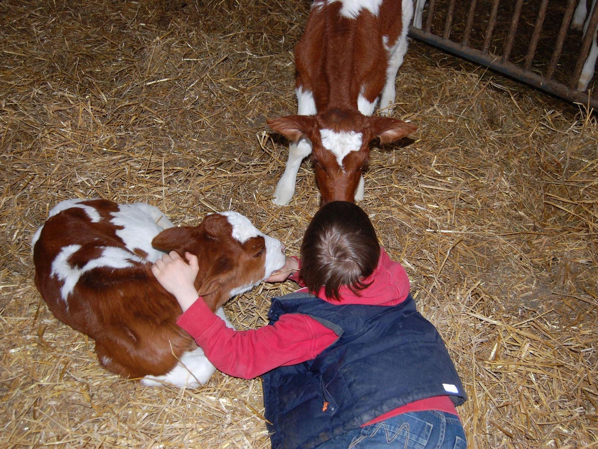 Zum Ferienhof gehört ein voll bewirtschafteter Bauernhof mit Kühen, Ponys zum Reiten und Katzen in 150m Entfernung. Hier können Sie hautnah beim Melken zusehen und mithelfen.