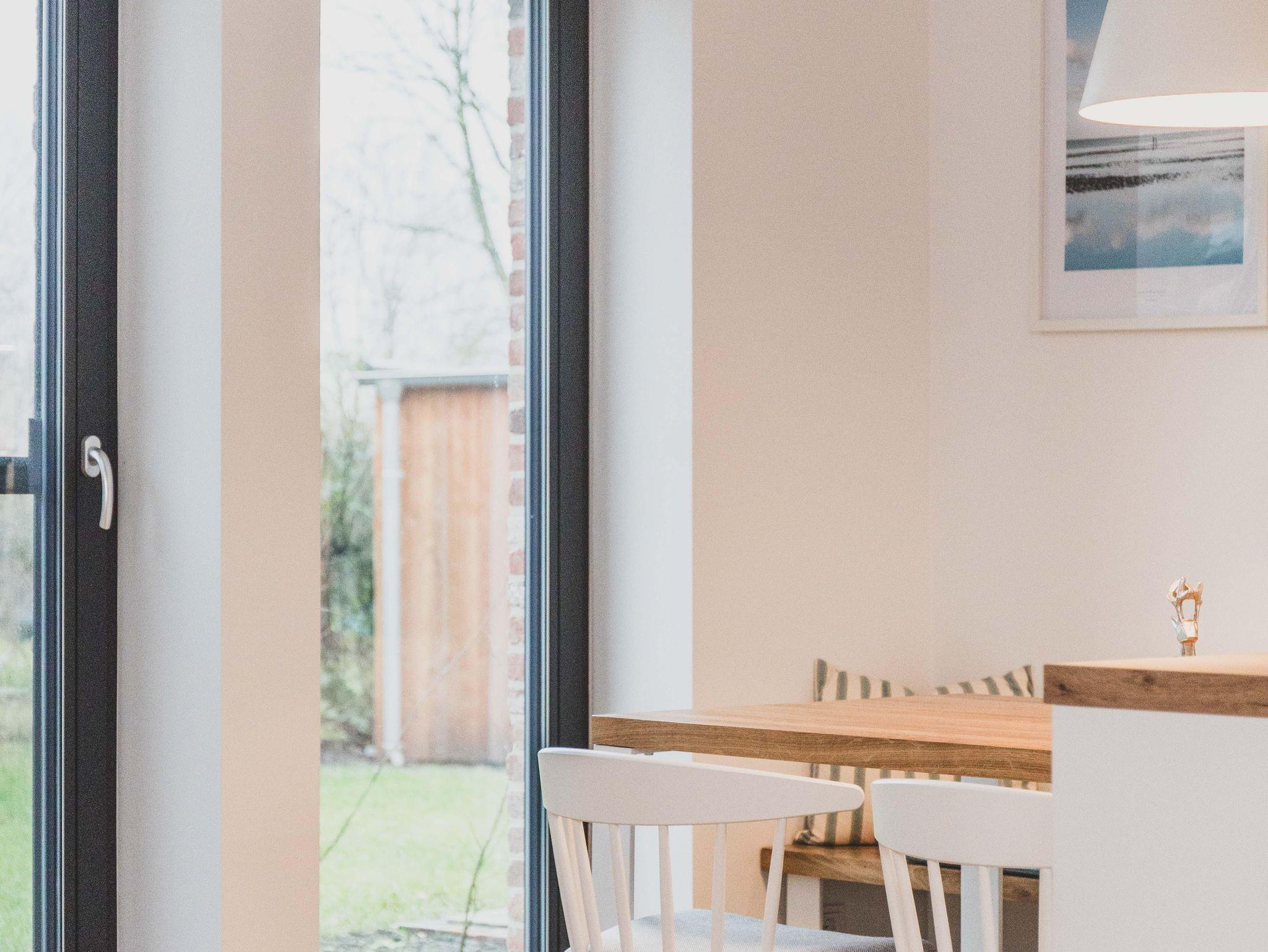 Freizeitköche freuen sich über die umfangreich ausgestattete Küche mit Bora-Kochfeld, hoch eingebautem Backofen, Mikrowelle, Geschirrspüler und Kühlschrank. Startet euren Tag mit einer Tasse heißen Ostfriesentee oder einem Espresso aus der Nespresso-Maschine auf der gemütlichen Bank im Essbereich mit Blick auf die Terrasse und ins Grüne.