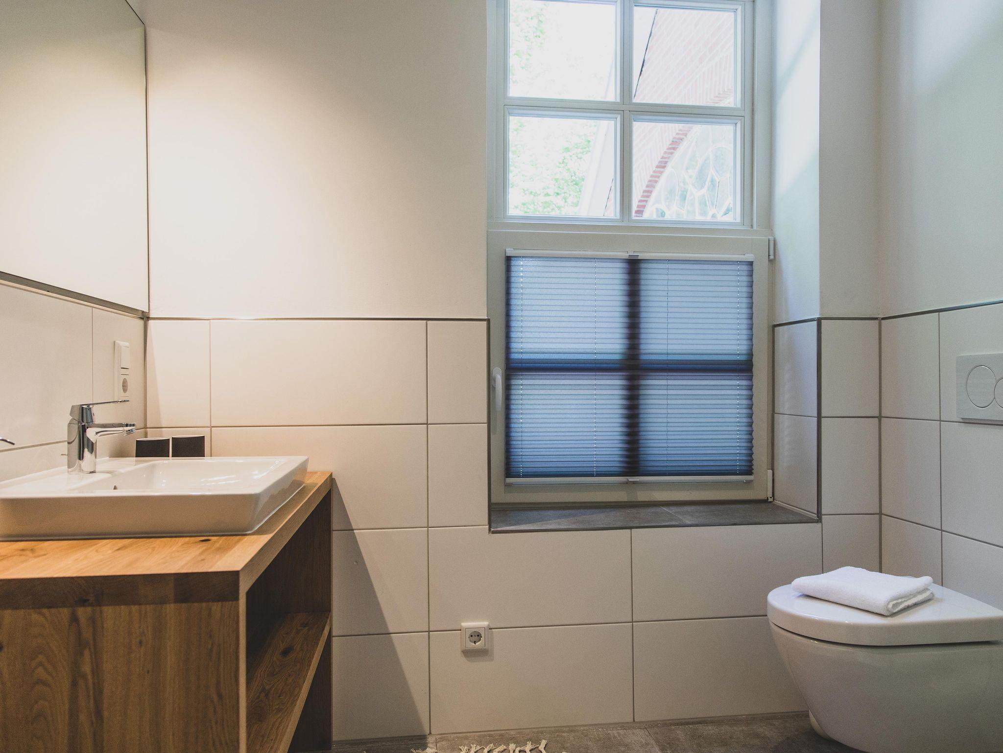 Unsere Wohnungen im Vorderhaus des Ferienhofs verfügen über hohe Decken mit durchgehend erhaltenen alten Deckenbalken. Die historischen Blockrahmenfenster und Fensterläden wurden in Handarbeit neu erstellt und runden den Anblick des denkmalgeschützten Gulfhofs ab. Im ehemaligen Scheunentrakt befinden sich durch bodentiefe Fenster helle und großzügig geschnittene Wohnungen. Alle Ferienwohnungen sind individuell, modern und mit viel Liebe zum Detail eingerichtet und bieten von der Terrasse einen erholsamen Blick auf die Grünflächen mit altem Baumbestand.