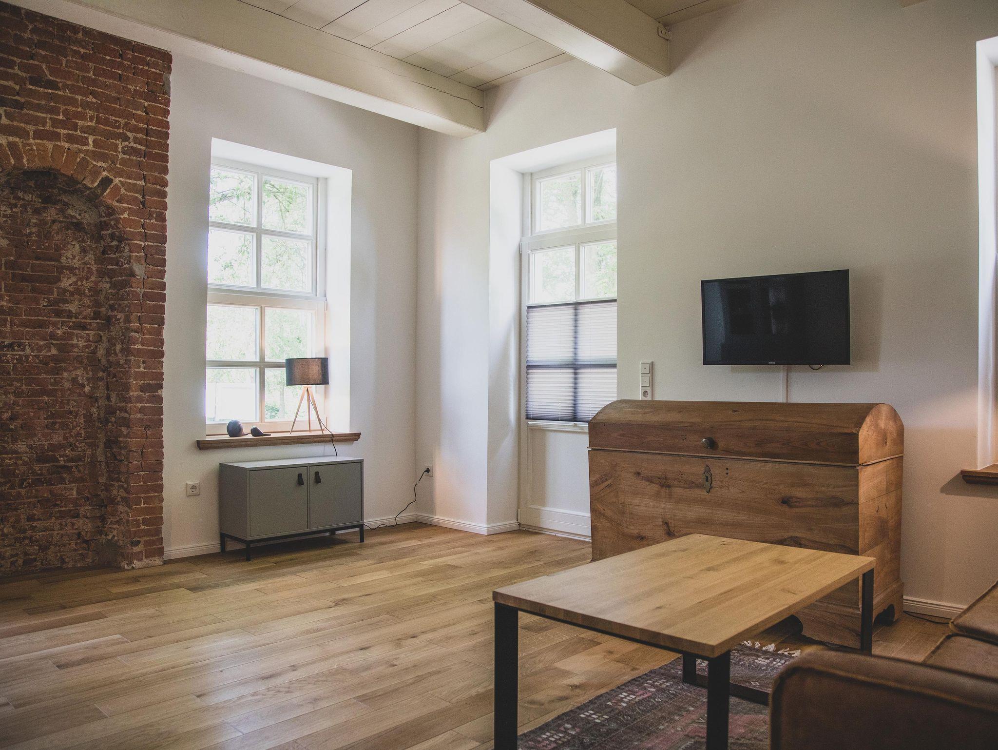 Willkommen im ehemaligen Wohnteil des Gulfhofs Boomgaarden, sozusagen in der „guten Stube“. Wo man sich früher nach einem Tag harter Arbeit vor dem Kamin wärmte, können Sie sich heute eine Auszeit zu zweit gönnen.