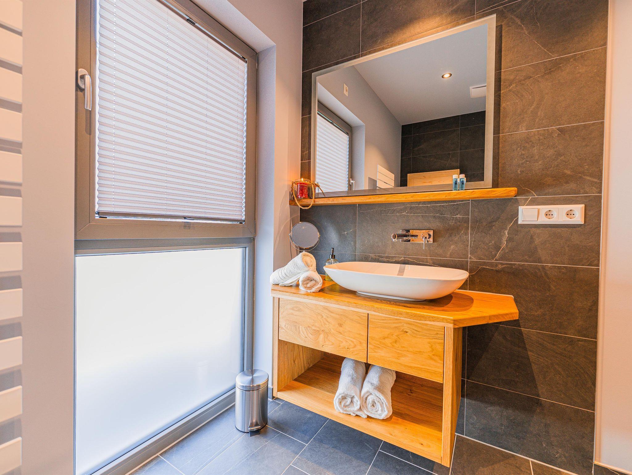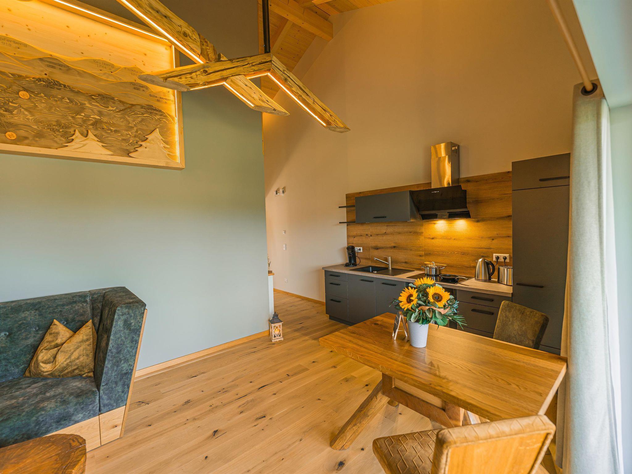 Noch mehr Entspannung findest du in einer der 3 privaten Biosaunas in den großen Wohnungen oder im separaten Erzalmhaus im Wellnessbereich Stollengrotte mit gemütlichem Saunabereich, eigenem Ruheraum und Außenbereich.