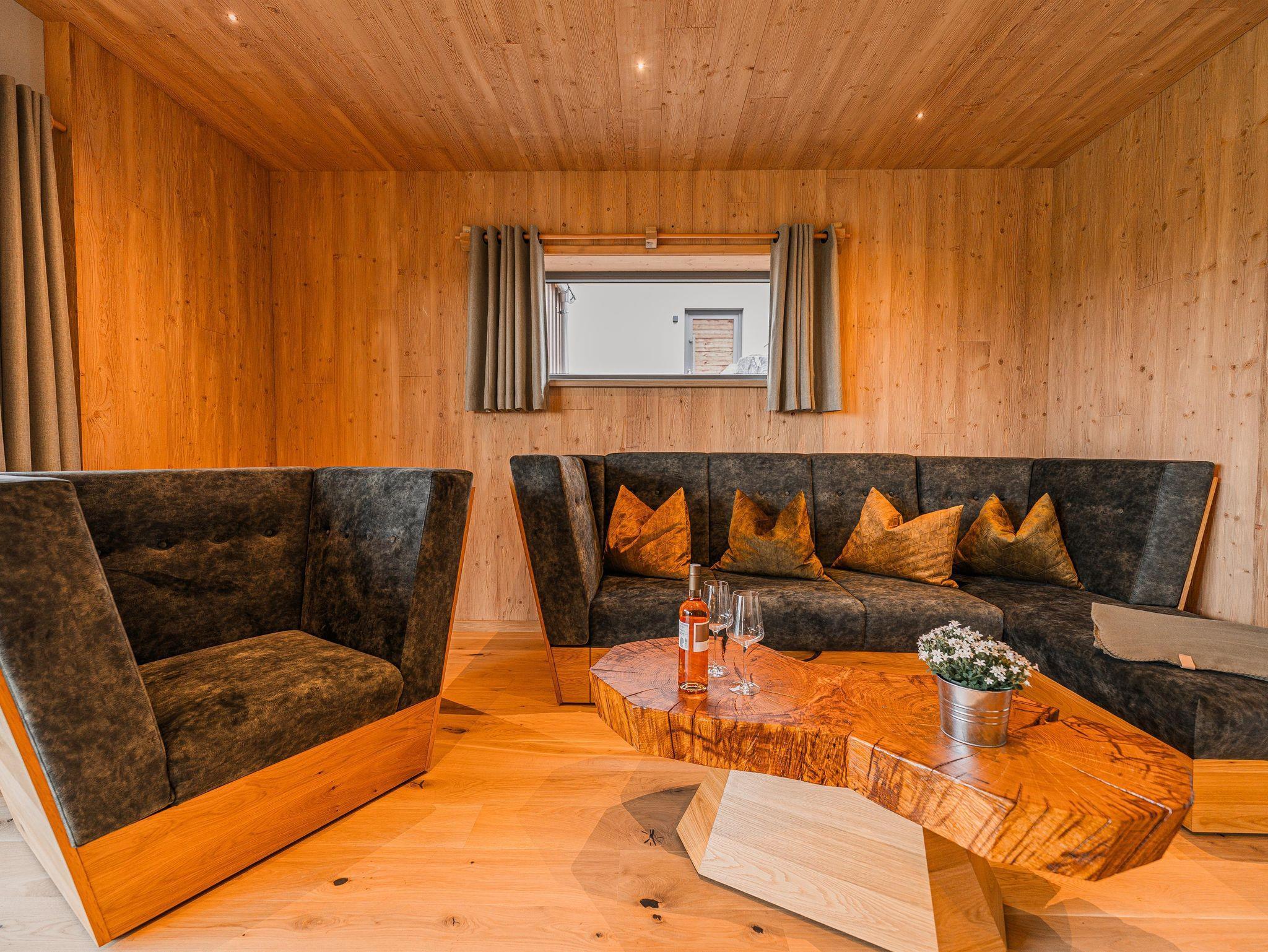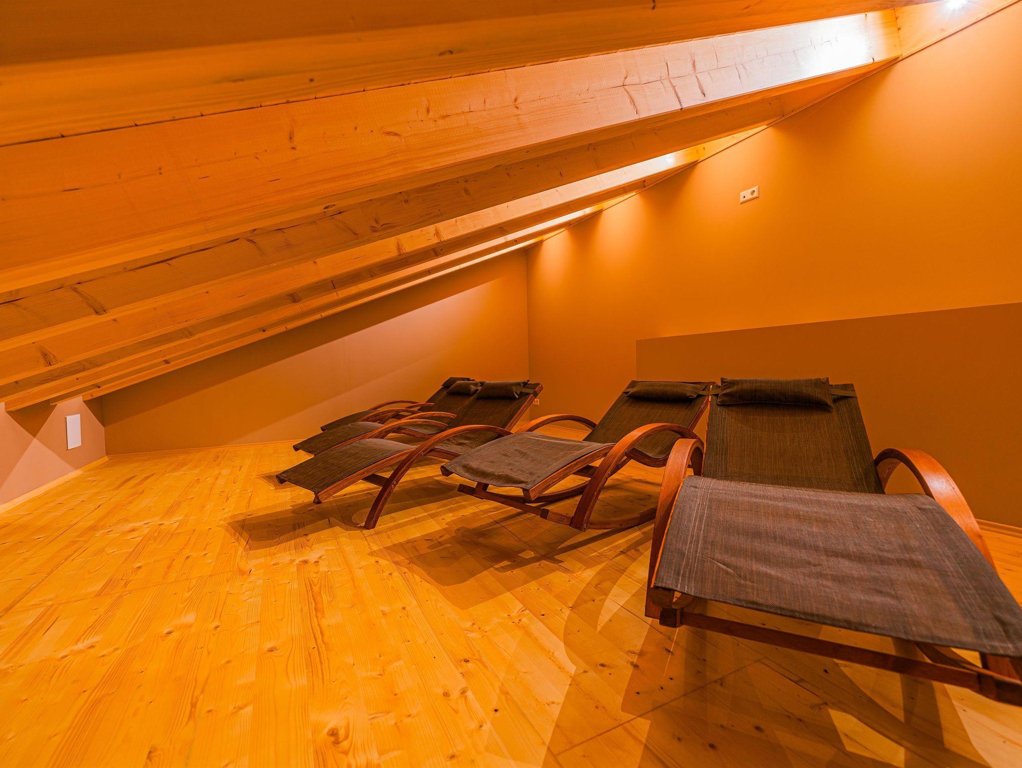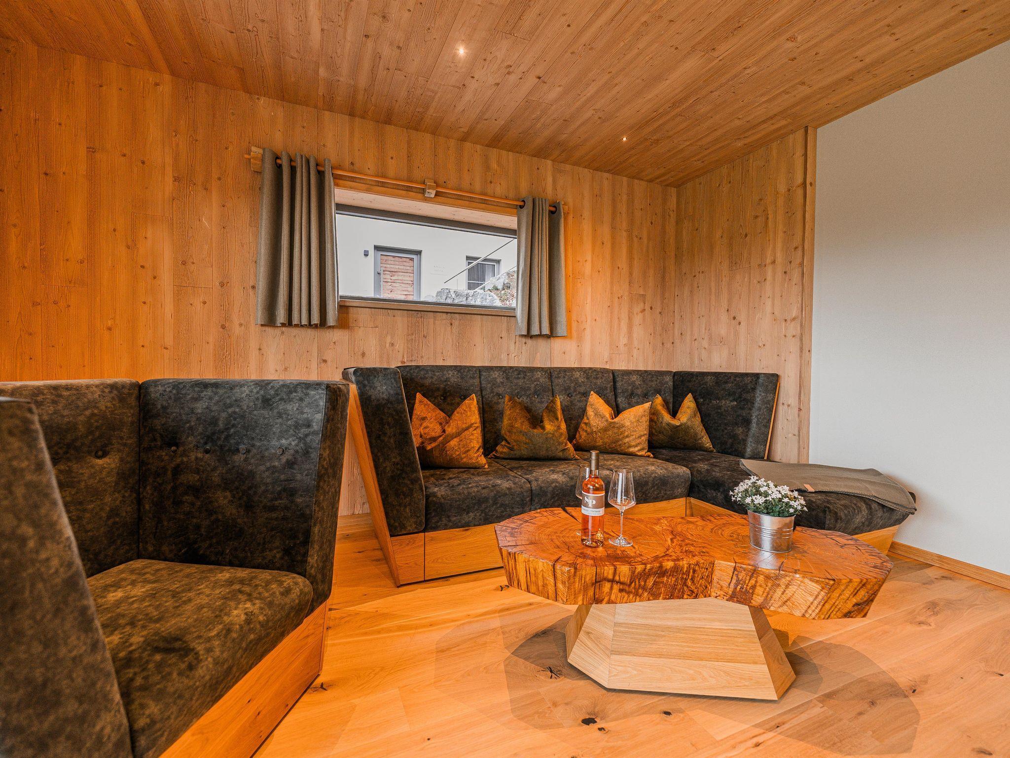 Noch mehr Entspannung findest du in einer der 3 privaten Biosaunas in den großen Wohnungen oder im separaten Erzalmhaus im Wellnessbereich Stollengrotte mit gemütlichem Saunabereich, eigenem Ruheraum und Außenbereich.