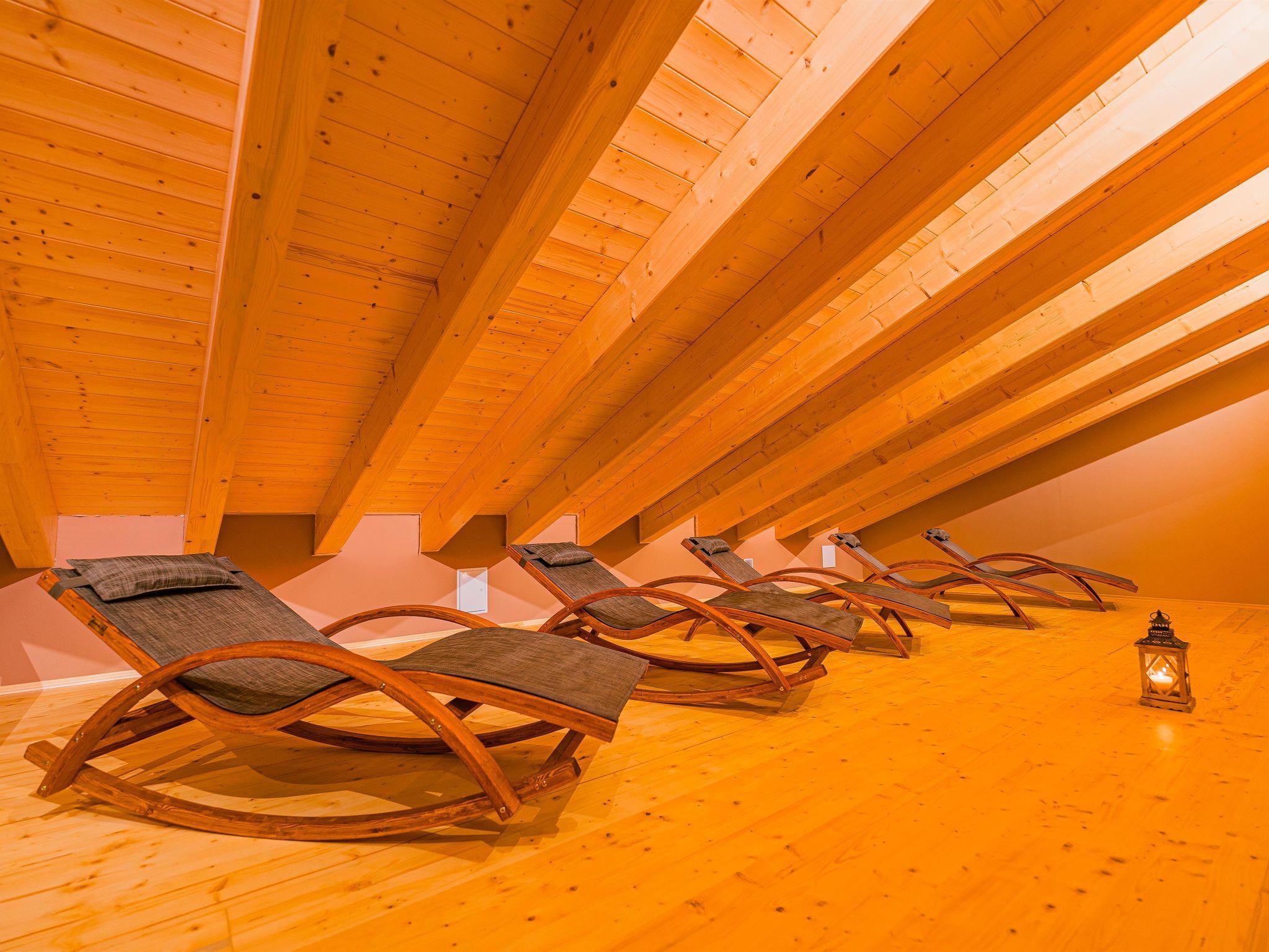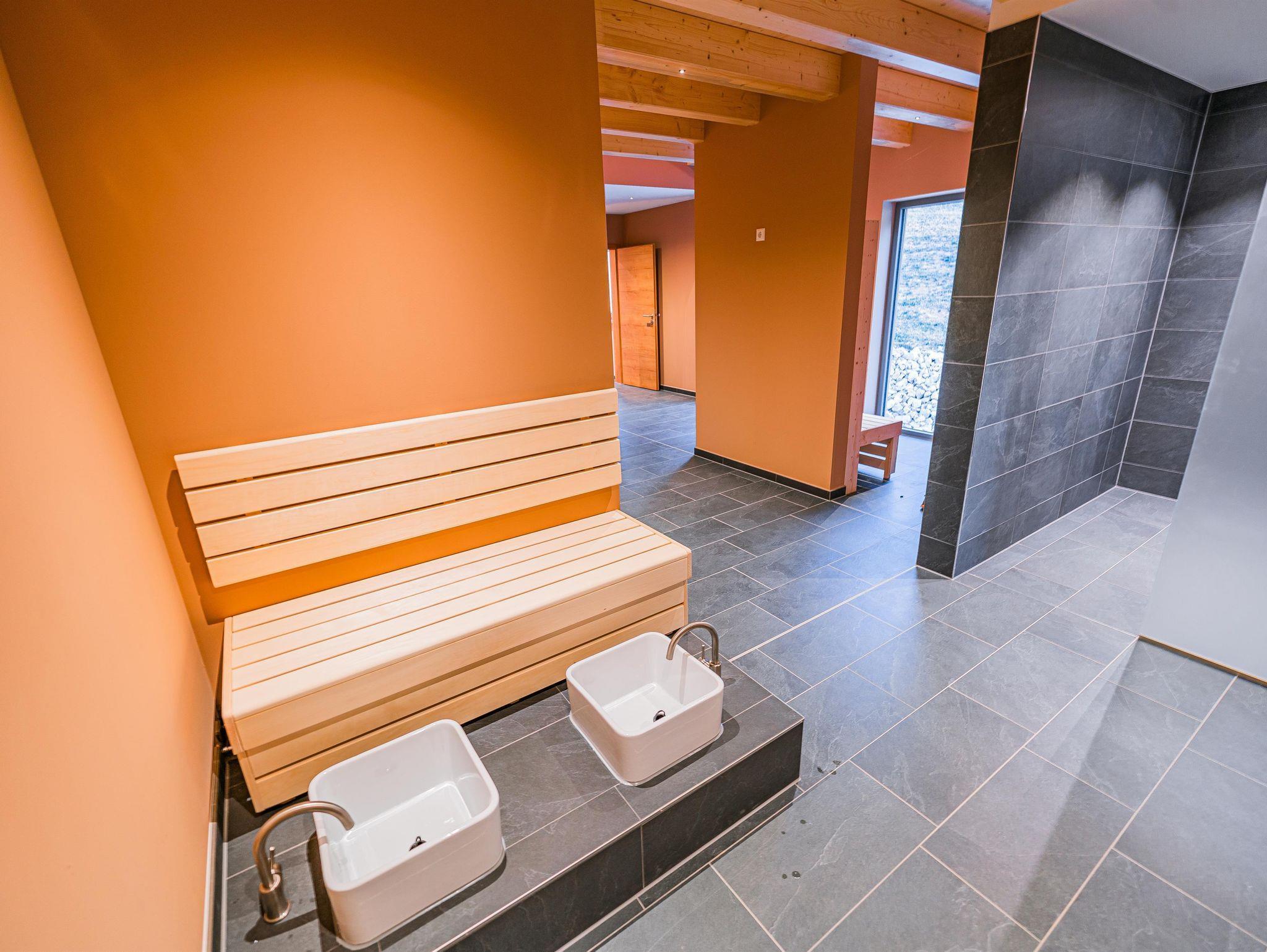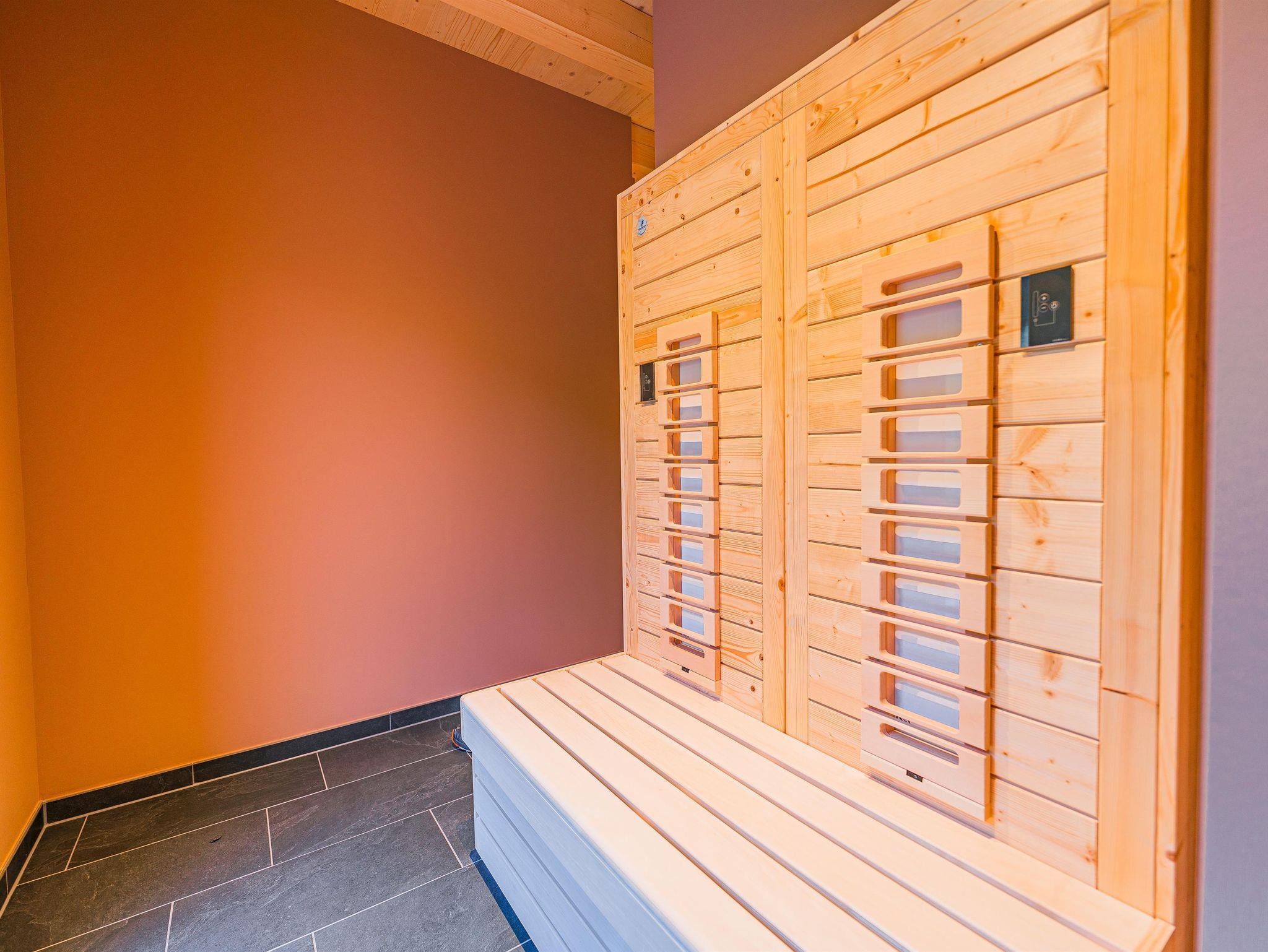 Noch mehr Entspannung findest du in einer der 3 privaten Biosaunas in den großen Wohnungen oder im separaten Erzalmhaus im Wellnessbereich Stollengrotte mit gemütlichem Saunabereich, eigenem Ruheraum und Außenbereich.