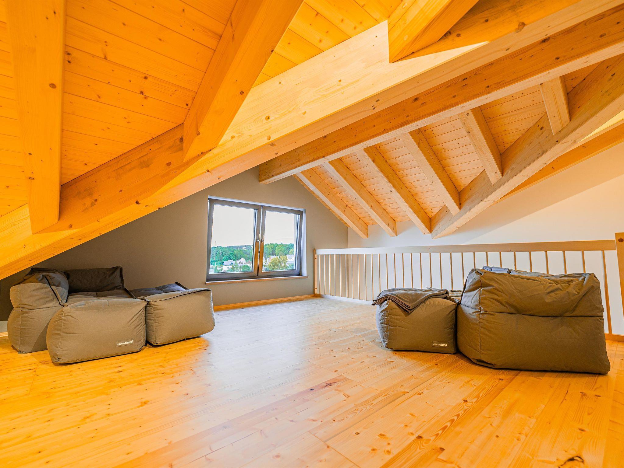 Noch mehr Entspannung findest du in einer der 3 privaten Biosaunas in den großen Wohnungen oder im separaten Erzalmhaus im Wellnessbereich Stollengrotte mit gemütlichem Saunabereich, eigenem Ruheraum und Außenbereich.