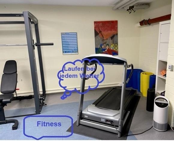 Im Untergeschoss des Hauses befinden sich ein großer Fitnessraum mit verschiedensten Geräten, sowie unsere Sauna.