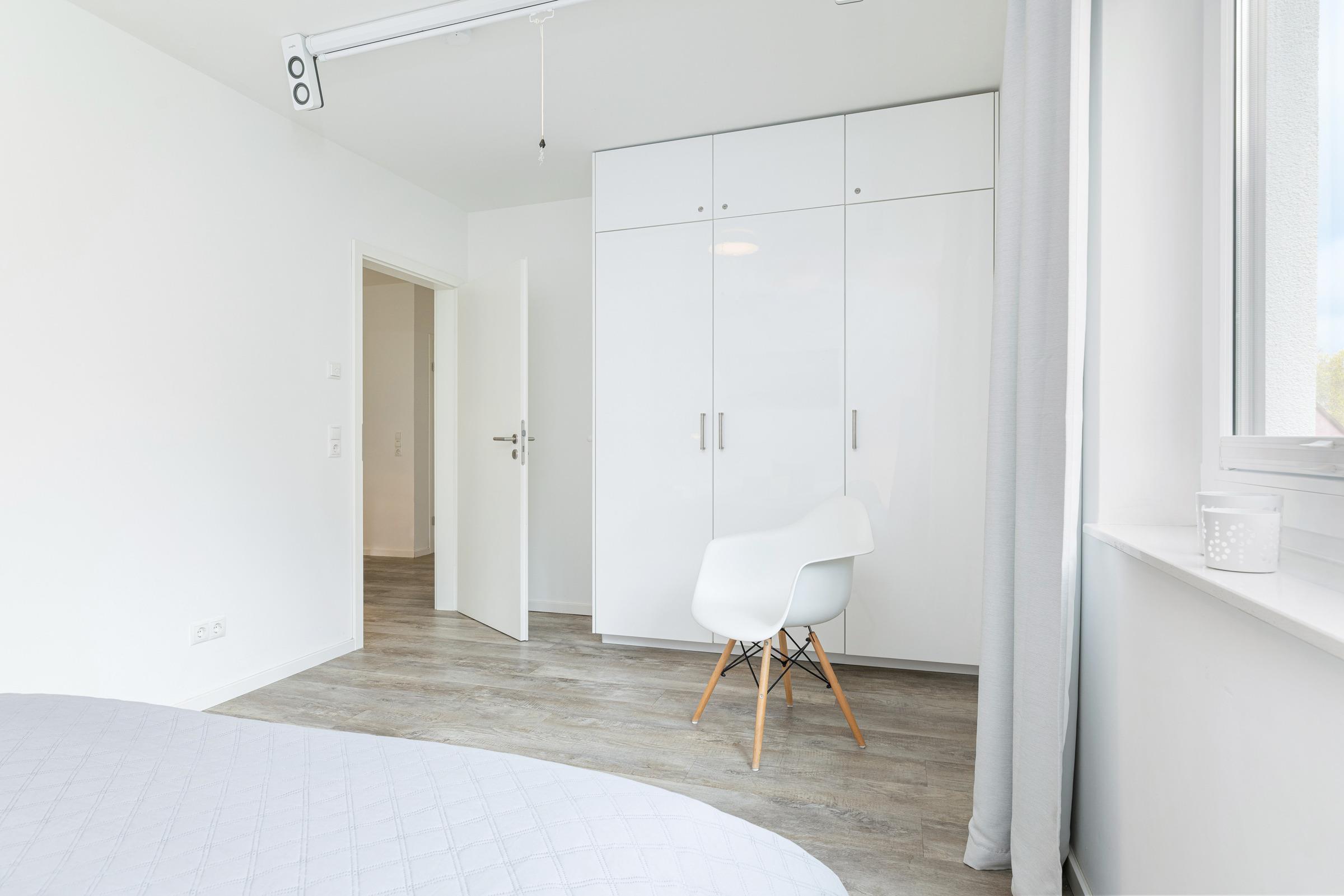 Das Zentrum des hellen Wohnbereichs bildet ein großer Tisch zum Essen, Spielen oder Klönen. Ein gemütliches Ecksofa lädt zum Lesen oder Fernsehen ein. Die Technik ist auf dem neusten Stand: Es erwartet Sie ein Smart-Fernseher, ein Blu-ray-Player mit div. DVDs für Kinder und Erwachsene, ein Beamer im Schlafzimmer mit Zugängen zu Netflix, Amazon Prime und Co. sowie ein Stereo-Digitalradio mit Bluetooth Audiostreaming. Wer ohne elektronische Medien Zeit verbringen möchte, findet in der "Spielekiste" Gesellschaftsspielen. Auch Urlaubslektüre steht Ihnen zur Verfügung. Die moderne Küchenzeile ist ausgestattet mit Geschirrspülmaschine, Ceran-Kochfeld, Backofen, Kühlschrank etc. Das separate Schlafzimmer bietet im Doppelbett (180x200 cm) erholsamen Schlaf. Im kleinen Schlafzimmer steht ein Etagenbett (je 80x200 cm). Sie möchten zu sechst in der Wohnung Urlaub machen? Dann wandeln Sie zusätzlich das Ecksofa im Wohnzimmer in eine weitere Liegefläche (140x200 cm) um. Im Badezimmer mit Dusche und Badewanne können Sie nach einem Strandtag prima entspannen. Zusätzlich gibt es ein Gäste-WC. Die Wohnung ist mit einem stilvollen Design-Fußboden sowie einer Fußbodenheizung ausgestattet. Ein Highlight sind sicher die beiden möblierten Balkone: Der Süd-West-Balkon bietet Ihnen einen geschützten Ort zum Sonnen. Der Nord-Ost-Balkon mit Blick gen Förde eignet sich hervorragend für ein sonniges Frühstück oder einen Sun-Downer in der Abendsonne.