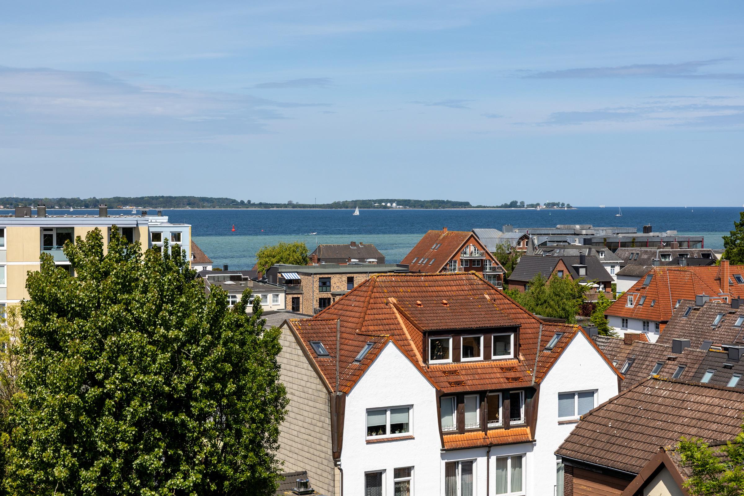Der Ausblick von dieser wunderschönen, großen 3-Zimmer-Ferienwohnung für bis zu 6 Personen in der 2. Etage der beliebten Fördeblick-Anlage wird Sie begeistern. Über die Dächer der vorgelagerten Häuser haben Sie einen fantastischen Blick auf die Kieler Förde und dem stets wechselnden Bild der vorbeifahrenden Schiffe.