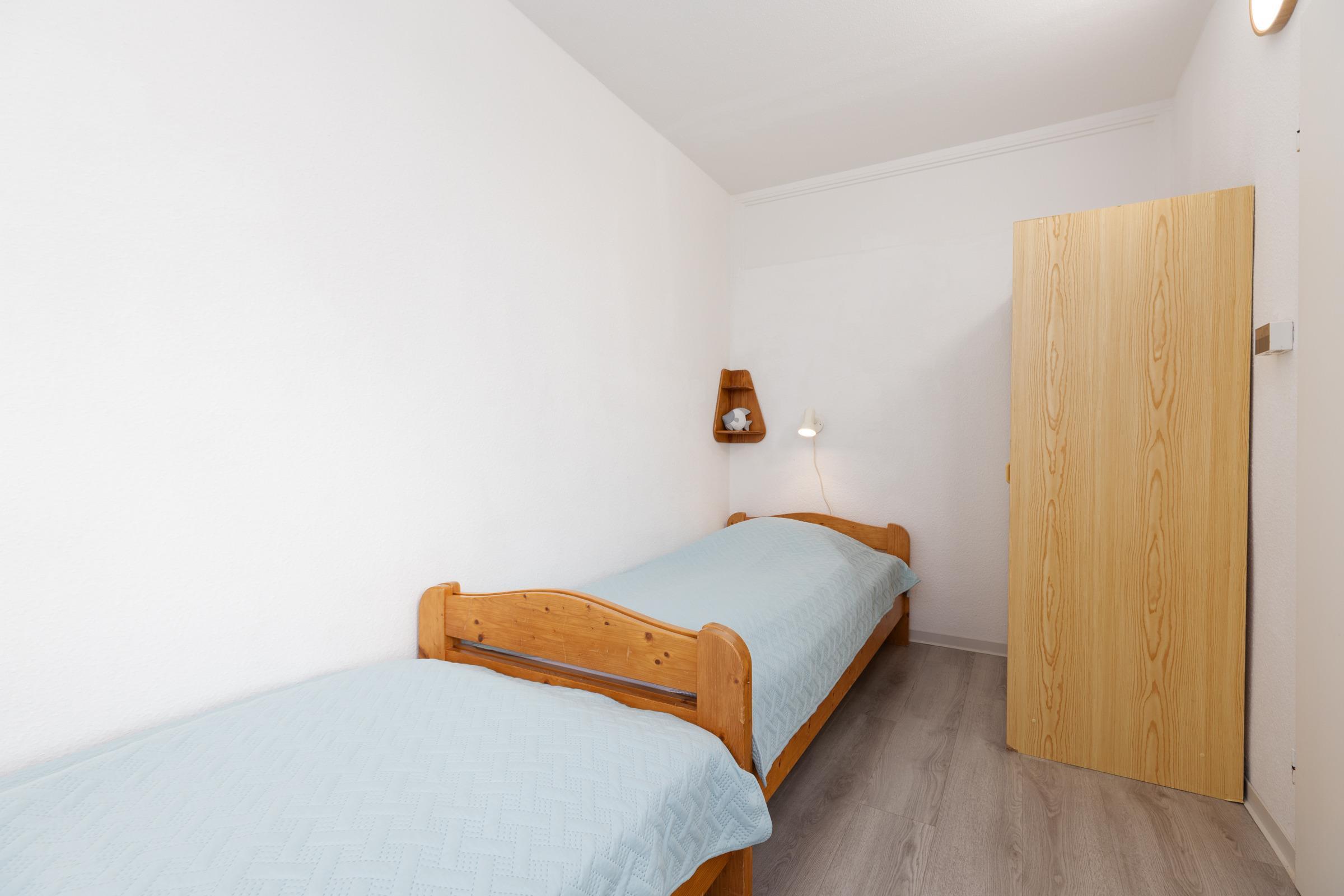 Schlafzimmer 2: 2 Einzelbetten (je 90x200cm), Kleiderschrank, Verdunkelung: Vorhänge, kein Platz für Babybett vorhanden