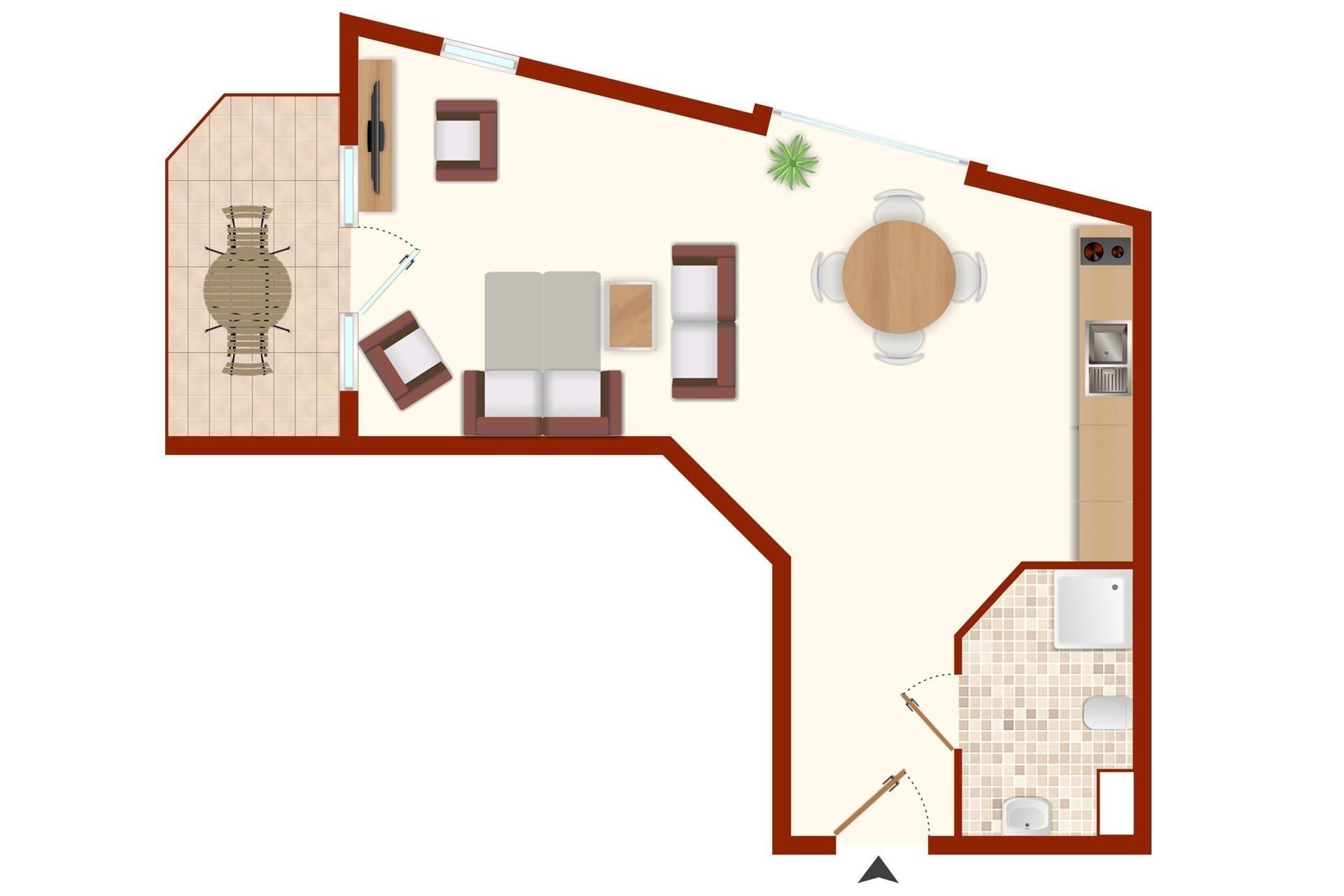 Der komfortabel aufgeteilte Wohn-, Ess- und Schlafbereich besticht durch die großen Fensterfronten. Für die Sommermonate gibt es sogar eine Außenmarkise zum Verdunkeln und gegen die Wärme. In der kleinen Küche des geräumigen Appartements lassen sich kleinere Gerichte prima zubereiten. Von dem hochwertigen Komfort-Schlafsofa aus lässt sich das bunte Treiben beobachten. Abgerundet wird diese Ferienunterkunft durch ein funktionales Duschbad. Für Ihre Urlaubswäsche stehen Ihnen gemeinschaftlich nutzbare Waschmaschinen und Trockner zur Verfügung (Münzgeräte).