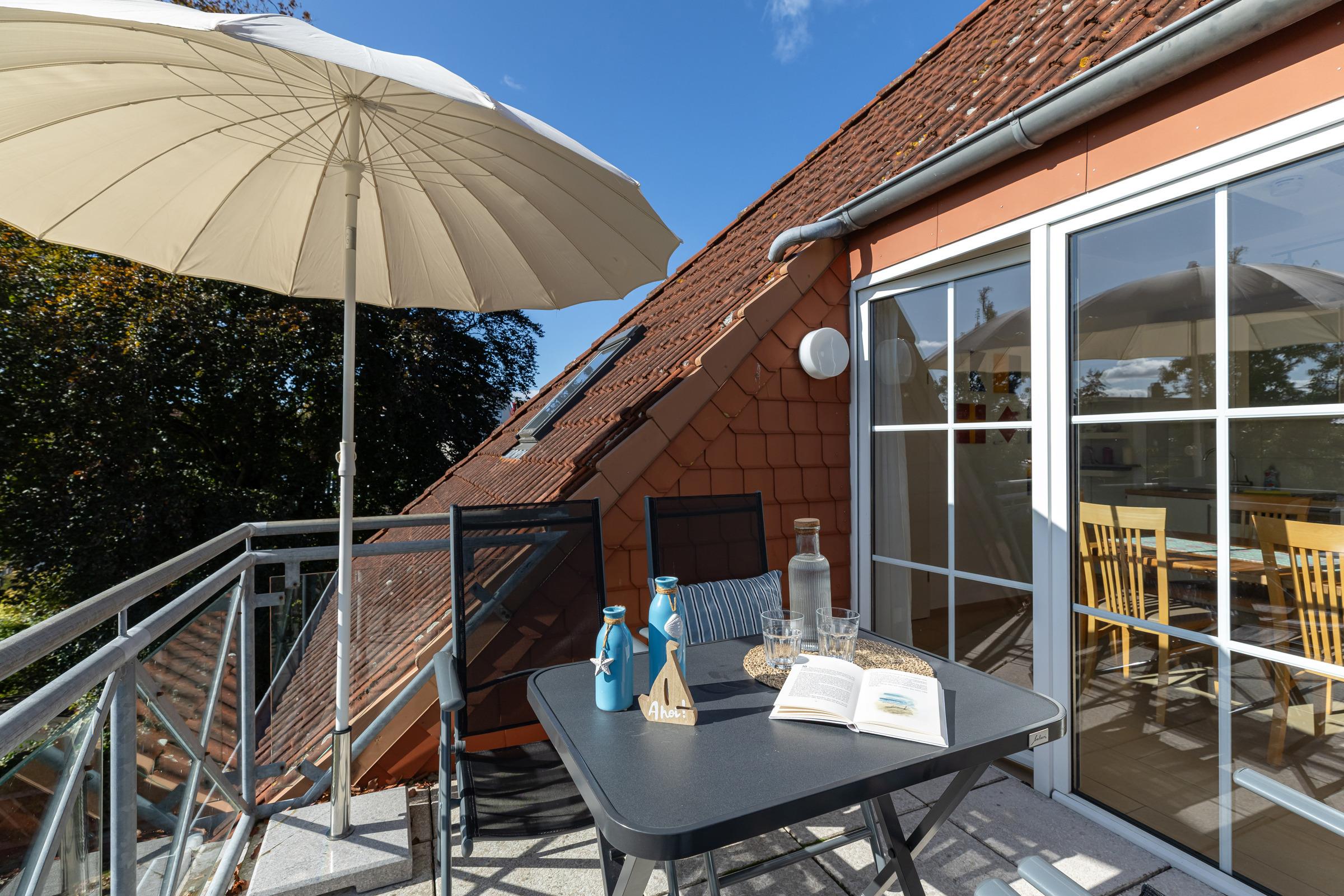 Strandnahe 3-Zimmer-Ferienwohnung in Laboe mit 50 m² Wohnfläche über zwei Ebenen mit Balkon für bis zu 4 Personen.
