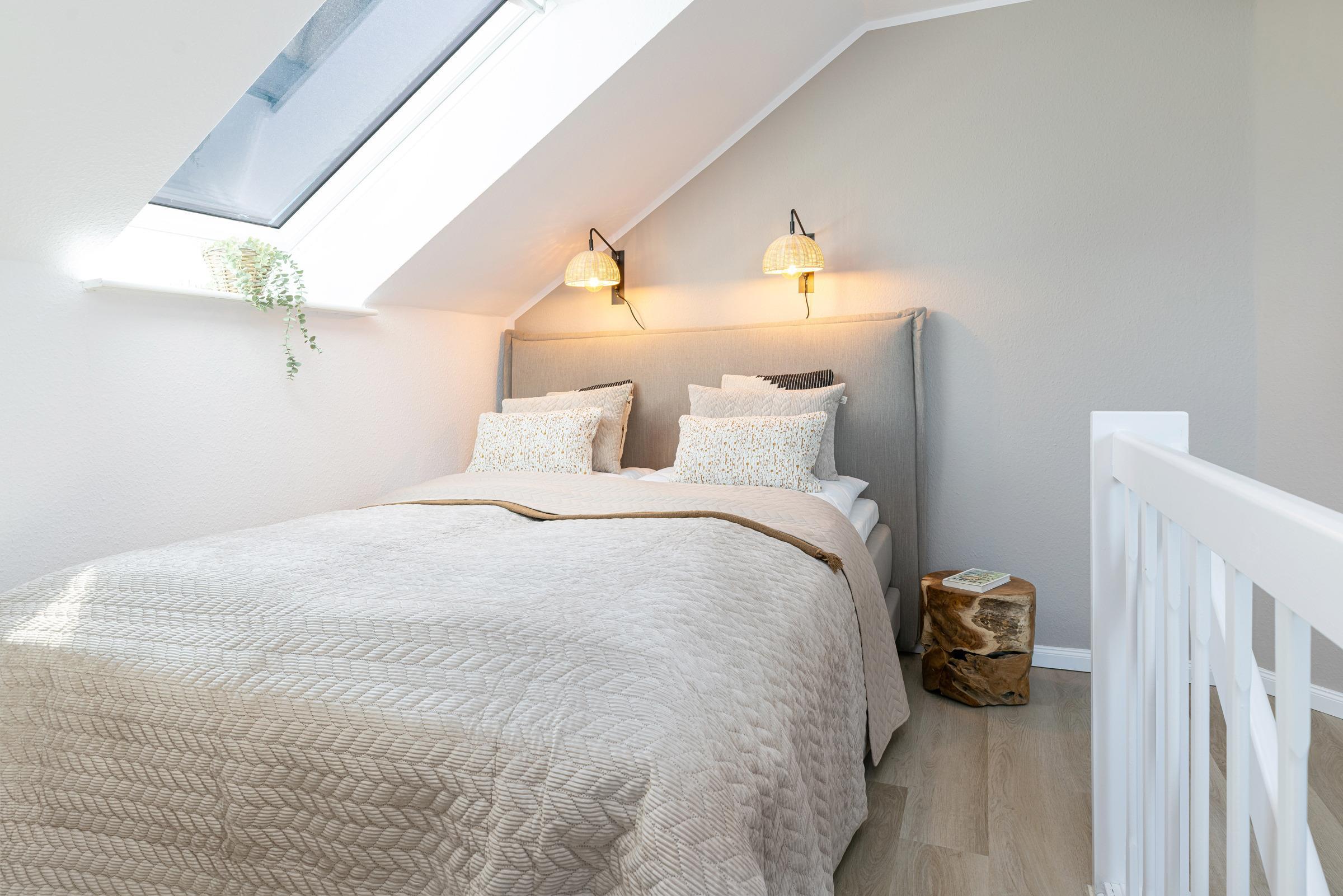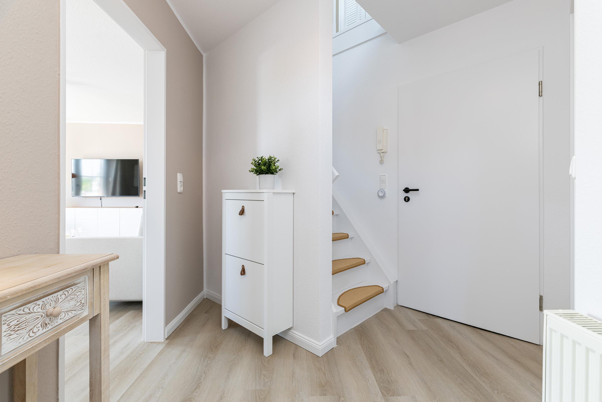 Die modern eingerichtete Maisonette-Wohnung Flat White empfängt Sie im zweiten Stock des Haus Baltic Laboe und bietet auf 67m² genug Platz und Erholung für vier Urlauber.