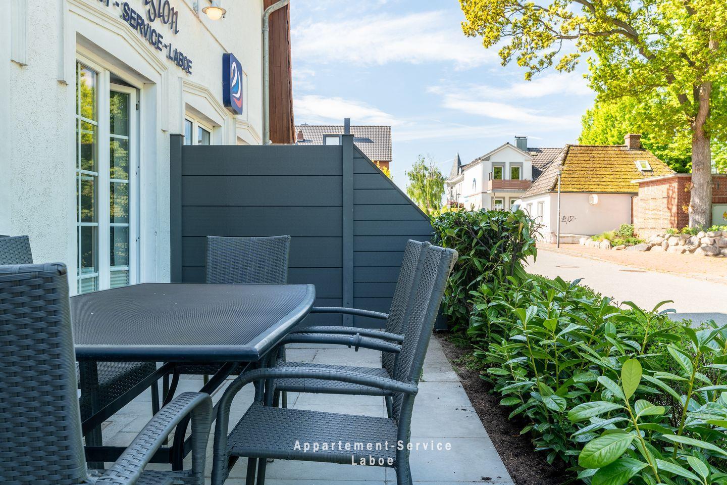 FeWo Parkpension W03: 2-Zimmer-Wohnung, ca. 50 m², im Erdgeschoss, für bis zu 4 Personen. Wohnbereich mit Schlafcouch, TV, WLAN, Esstisch und offener Küchenzeile mit Ceranfeld, Backofen, Kühlschrank mit Gefrierfach, Geschirrspüler und Kaffeemaschine. Schlafzimmer mit Doppelbett. Badezimmer mit Dusche, WC, Haartrockner und Kosmetikspiegel. Möblierte Terrasse. Gemeinschaftsdachterrasse mit Grill, Wellnessgarten mit Fass-Sauna, Hot-Tub und saisonalem Pool (Mai–September). Waschraum, Fahrradstellplatz, abschließbarer Schuppen. Pkw-Stellplatz und Wallbox vorhanden. Haustiere erlaubt. Ca. 150?m zum Strand, zentrale Lage in Laboe.