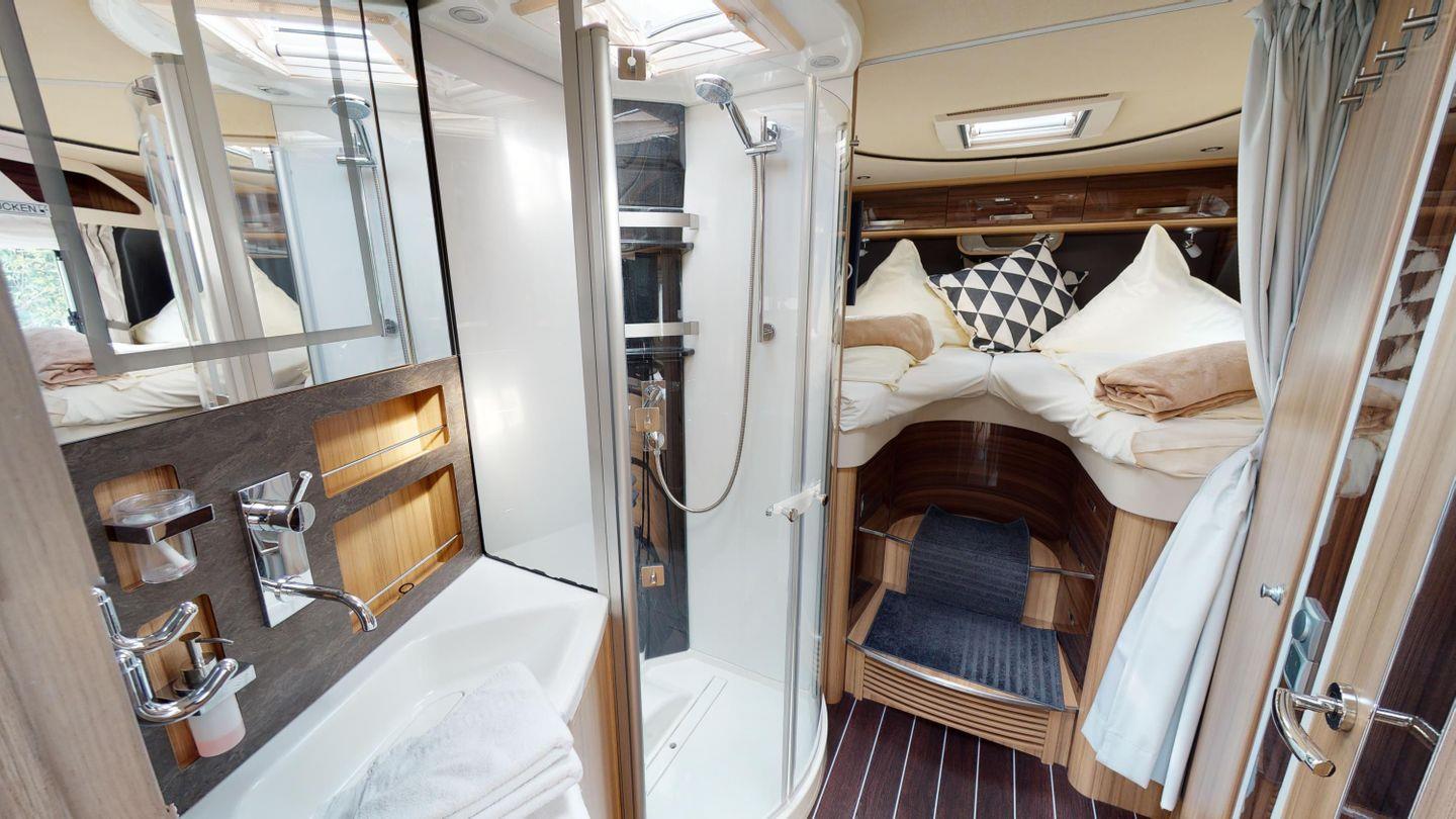 ist ebenfalls vorhanden. Die Waschausstattung beinhaltet eine Dusche, Toilette,
