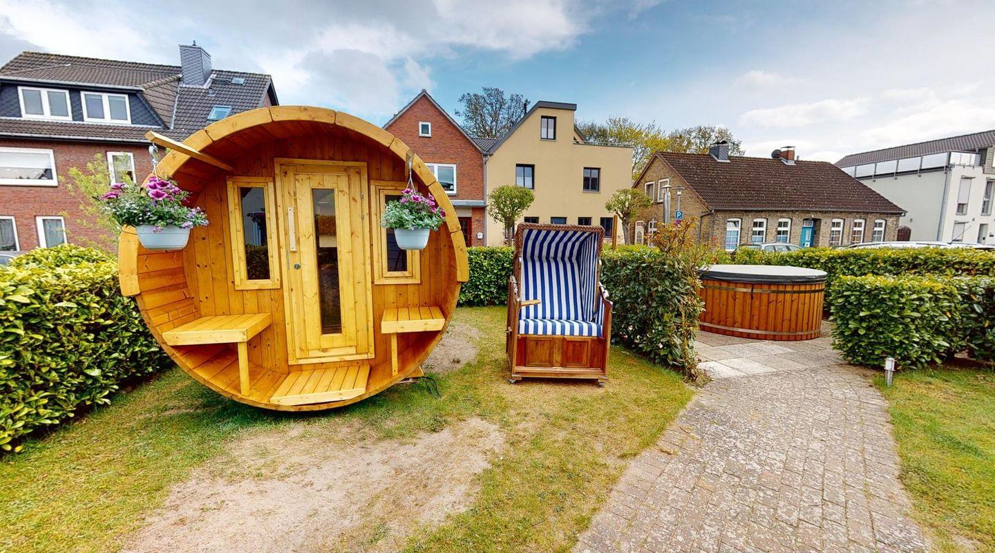 Und auch draußen wird’s besonders gemütlich: Im gemeinschaftlich genutzten Garten stehen dir eine Fass-Sauna, ein Hot-Tub sowie eine Grillecke mit Sitzmöglichkeiten zur Verfügung – perfekt für entspannte Abende nach einem Strandtag.