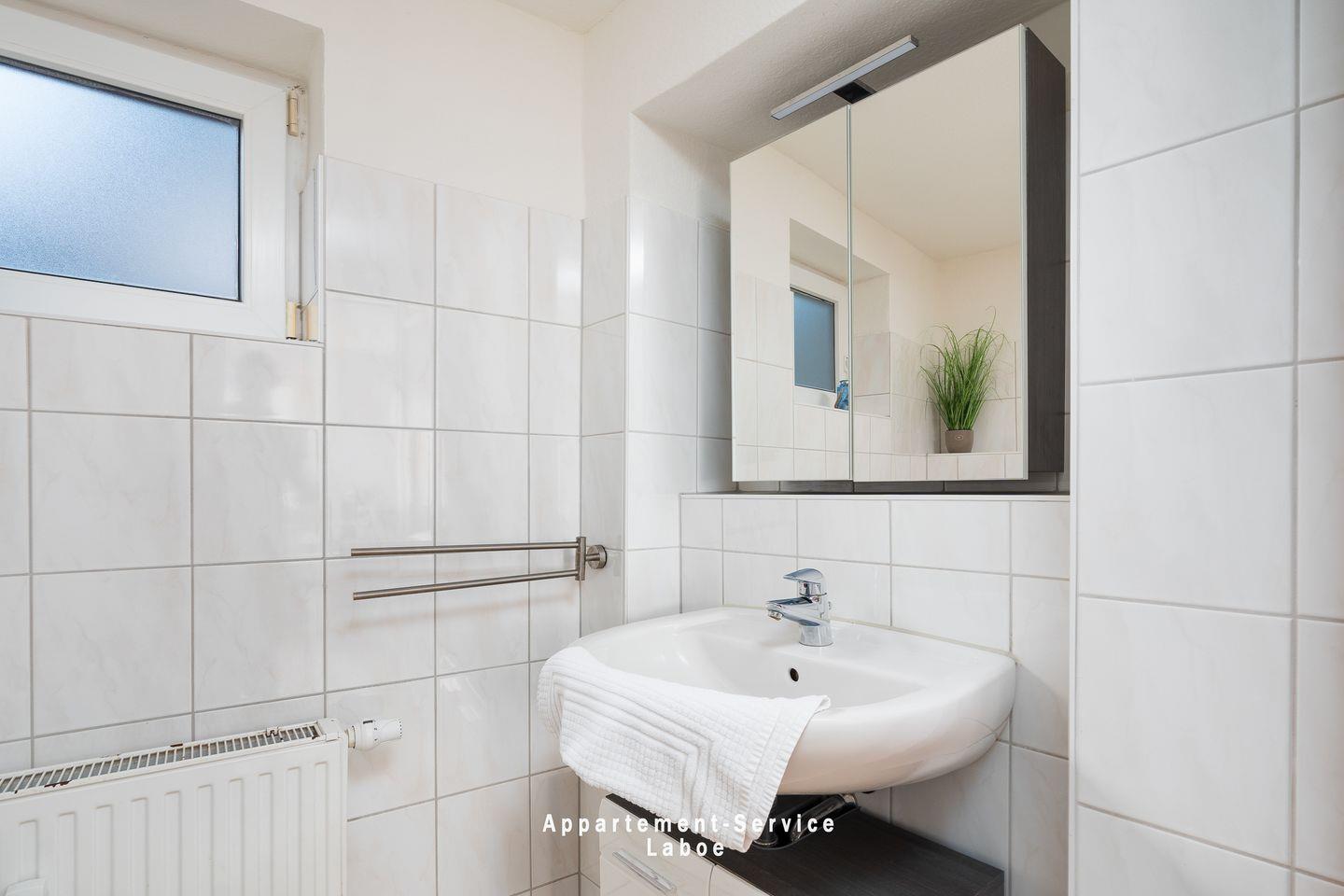 FeWo Kleines Glück: 46?m² große 2-Zimmer-Wohnung im 1. OG direkt Zentrum von Laboe für bis zu 3 Personen. Wohnzimmer mit gemütlicher Sitzgruppe (Schlaffunktion), TV, DVD-Player und WLAN. Separate Küche mit Geschirrspüler und Essplatz. Schlafzimmer mit Doppelbett und zusätzlichem TV. Modernes Bad mit Dusche. Möblierter Balkon für entspannte Stunden im Freien. Nur wenige Gehminuten zum Strand, Hafen und zu Einkaufsmöglichkeiten. PKW-Stellplatz inklusive (ca. 300 m entfernt) Nichtraucher, Haustiere willkommen.