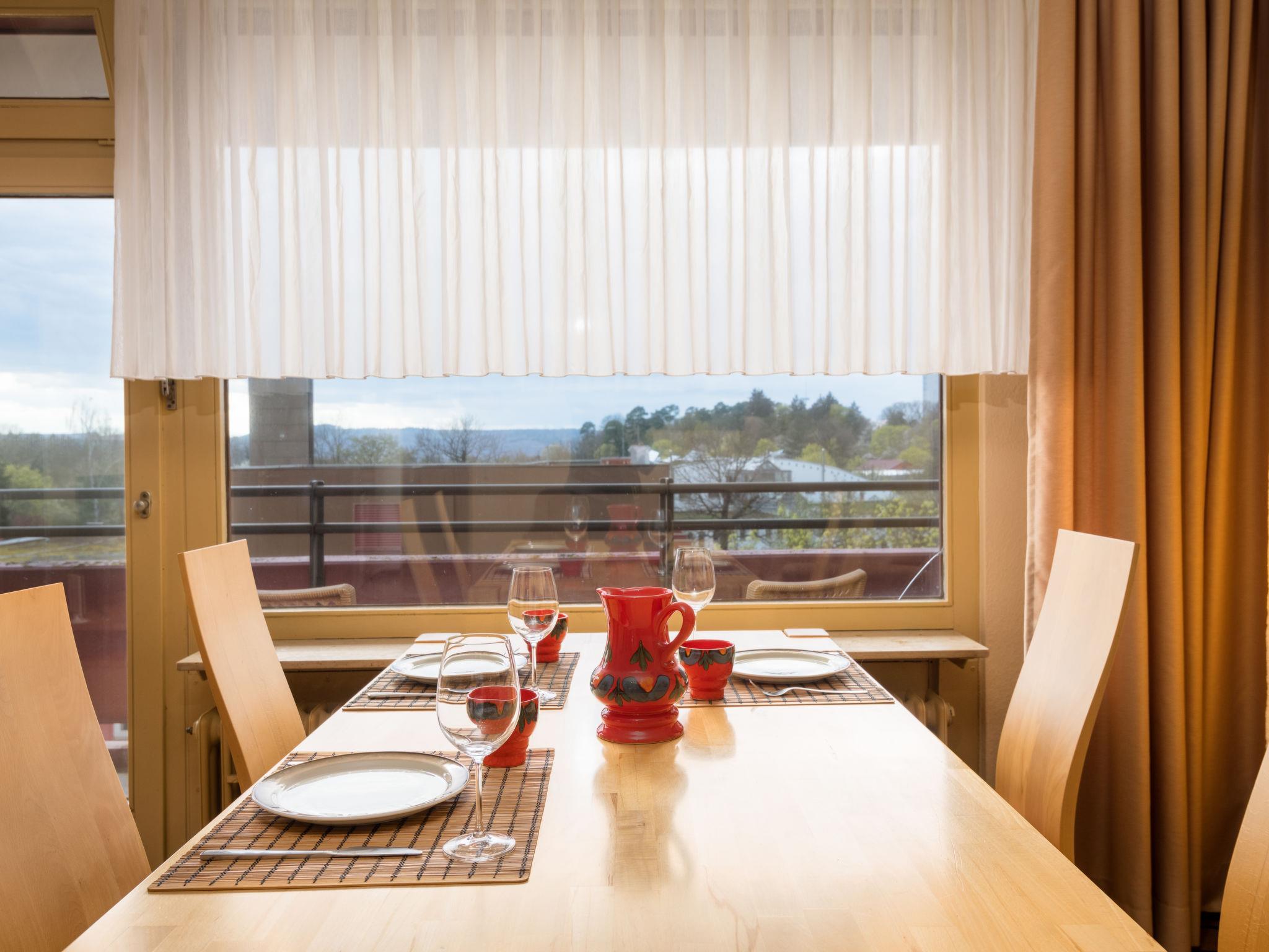 Lahnstein 12 km from Koblenz: Apartment block "Ferienpark Rhein-Lahn". In the district of Lahnstein auf der Höhe 4 km from the centre of Lahnstein, 12 km from the centre of Koblenz, 4 km from the river. For shared use: indoor pool (11 x 6 m, depth 120 cm) with internal staircase. Shower/WC in the pool area. In the complex: reception, WiFi, table tennis, lift, central heating system, washing machine, tumble dryer (for shared use, extra). Parking at the house. E-charging station. Grocery 200 m, supermarket 4.5 km, restaurant 800 m, bakery 4.5 km, bicycle rental 4.5 km, 45 minute walk to the centre, bus stop "Kurklinik" 200 m, railway station "Koblenz (HBF)" 12 km, park "Kurpark" 200 m, outdoor swimming pool 1.5 km, indoor swimming pool 5 km, thermal baths "Emser Therme" 10 km. Golf course (18 hole) 16 km, tennis 500 m, minigolf 6 km, walking paths from the house 100 m, cycle lane 4.5 km, children's playground 100 m. Nearby attractions: Burg Lahneck 3 km, Marksburg 7 km, Deutsches Eck Koblenz / Seilbahn 10 km, Schloss Stolzenfels 13 km. Hiking paths: Lahn-Höhenweg 100 m, Rheinsteig (11) 100 m, Jakobswege Rhein-Lahn. Please note: car recommended. Lahn River 4 km. Boat trips (KD) on the Rhine 4.5 km. Moselle River 10 km. A small kiosk with a small animal enclosure is 300 m away. The Rhein-Lahn holiday park is located 200 m above the town of Lahnstein, in the heart of the 530 km² Nassau Nature Park. It consists of two interconnected apartment buildings and its own Interhome service office. Smoking is permitted on the balconies of the apartments. An 11 kW electric charging station is located in the parking lot. Usage and billing are handled through the Interhome service office.