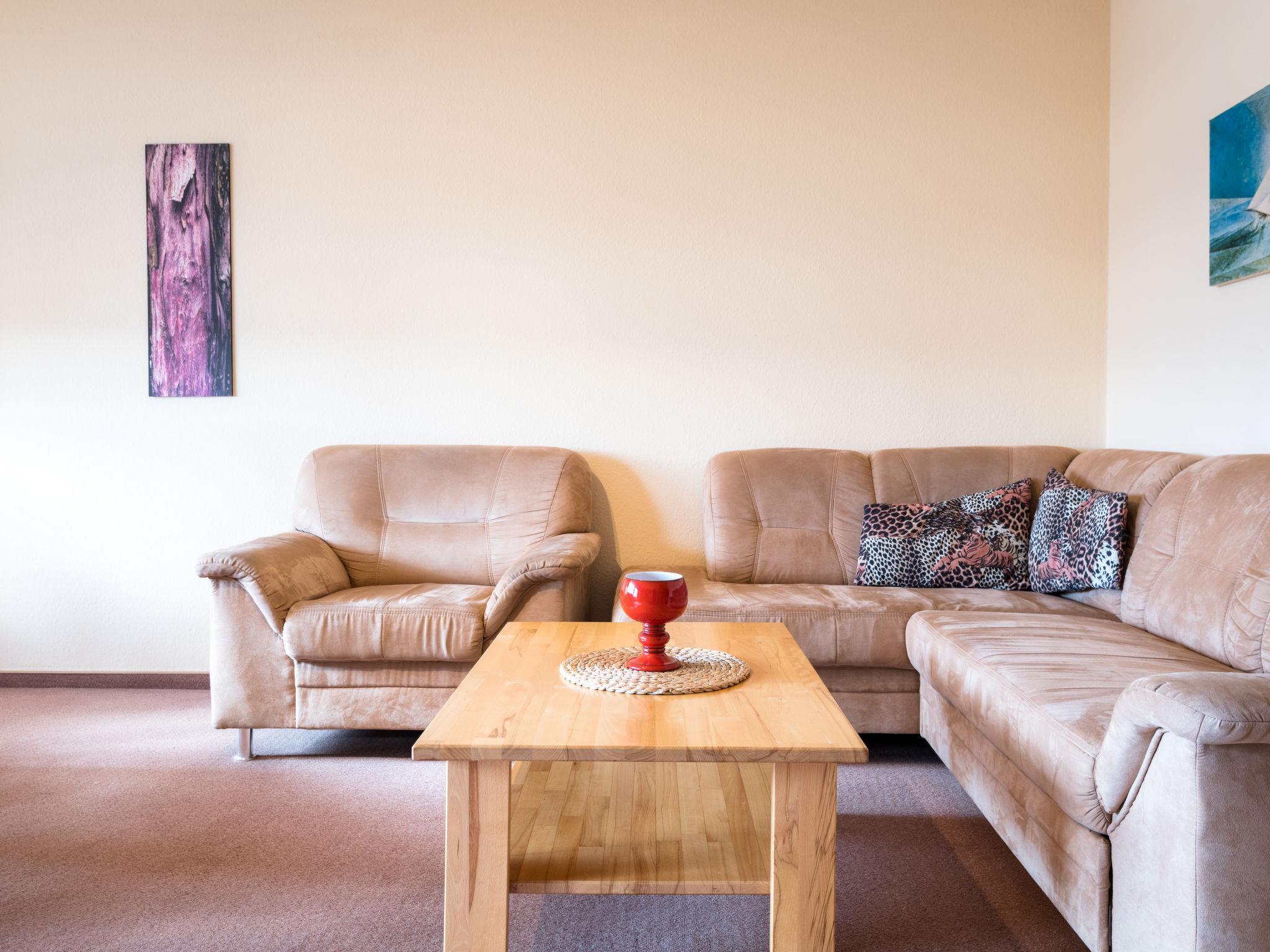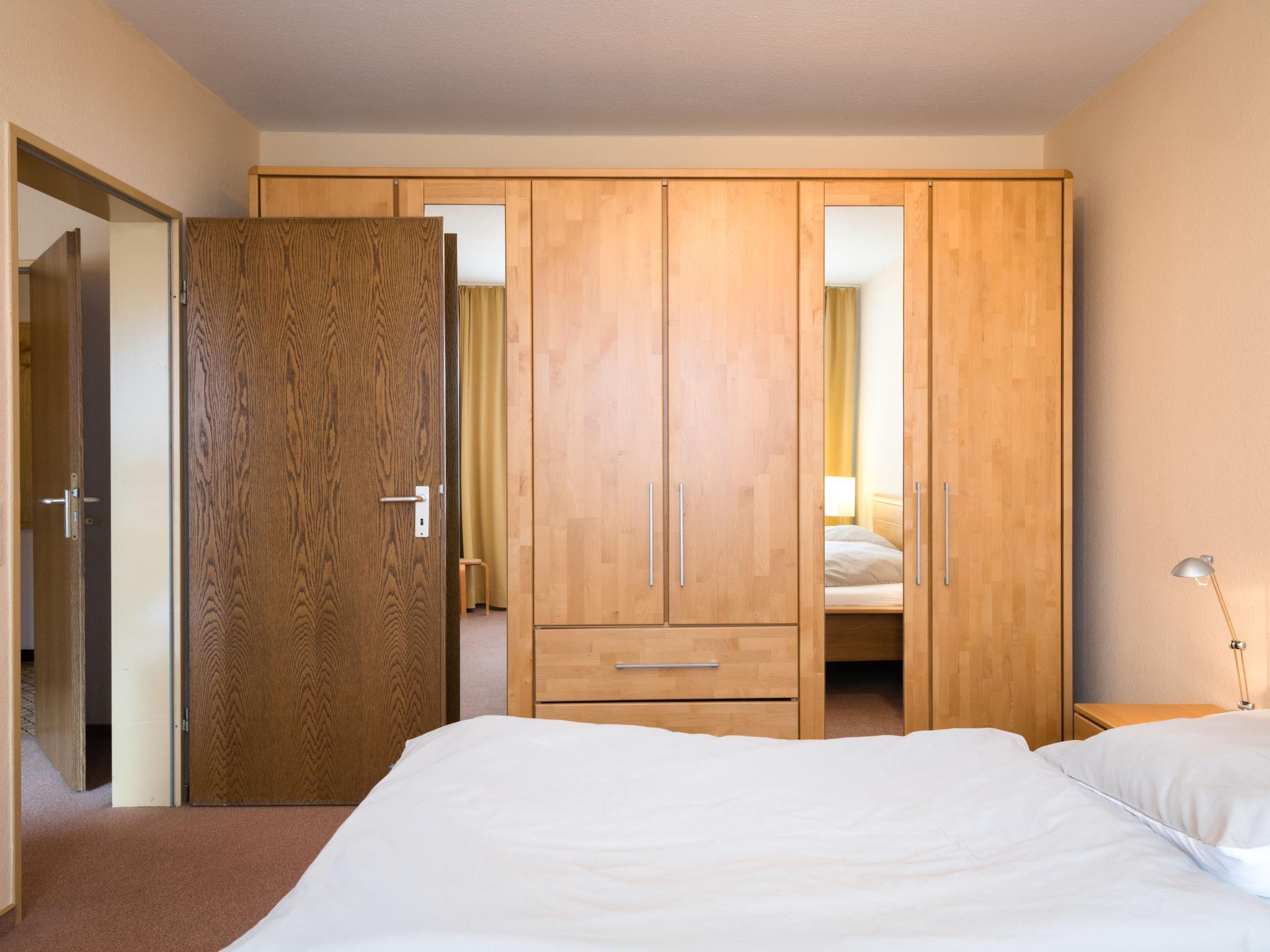 "Birke (A504)", 2-room apartment 52 m2 on 5th floor, west facing position. Living/dining room with 1 sofabed (120 cm, length 175 cm), satellite TV (flat screen). Exit to the balcony. 1 double bedroom with 1 double bed (2 x 100 cm, length 200 cm). Kitchenette in the entrance (2 hot plates, toaster, kettle, electric coffee machine). Bath/shower/WC. Balcony furniture. Facilities: Internet (WiFi, free). Please note: fridge without freezer, non-smokers only. Maximum 1 pet/ dog allowed. Smoke alarm.