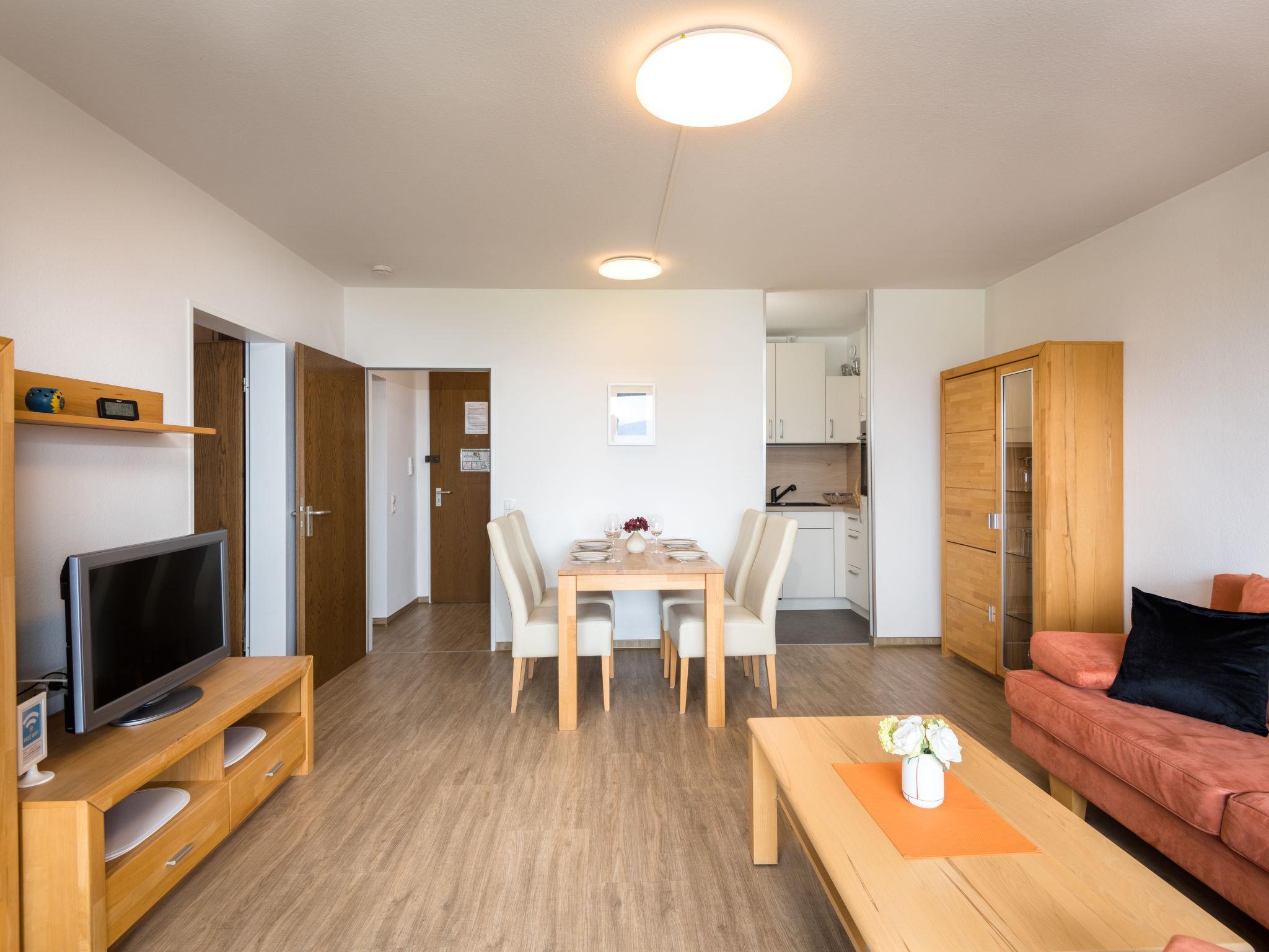 "Rheinblick (A1208)", 2-room apartment 56 m2 on 12nd floor, west facing position. Living/dining room with 1 double sofabed (160 cm, length 200 cm), satellite TV (flat screen), CD-player. Exit to the balcony. 1 double bedroom with 1 double bed (2 x 90 cm, length 200 cm). Kitchenette (4 hot plates, oven, toaster, kettle, electric coffee machine). Bath/shower/WC. Balcony furniture. Marvellous view of the countryside and the river. Facilities: Internet (WiFi, free). Please note: non-smokers only. Smoke alarm.