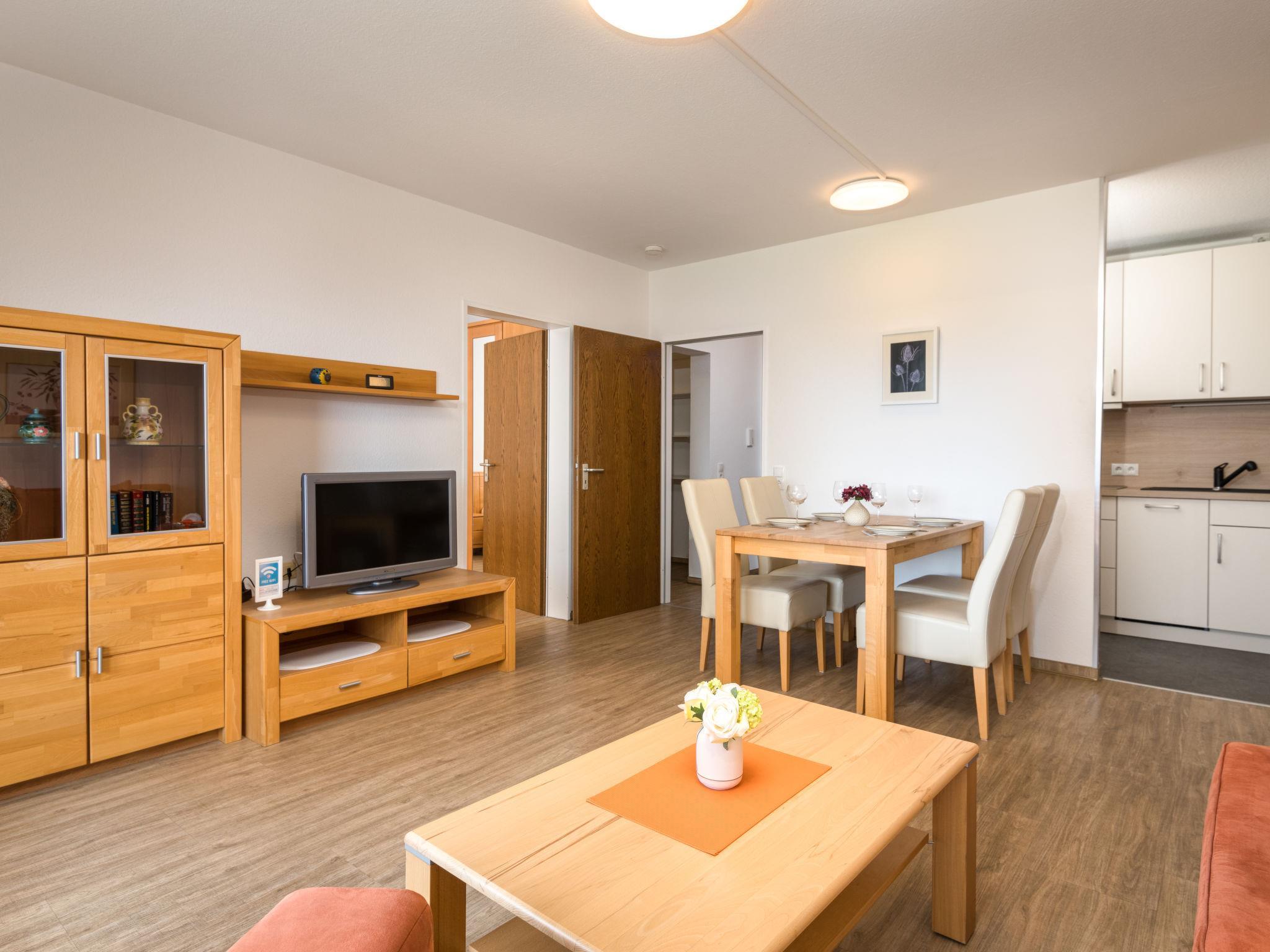 Lahnstein 12 km from Koblenz: Apartment block "Ferienpark Rhein-Lahn". In the district of Lahnstein auf der Höhe 4 km from the centre of Lahnstein, 12 km from the centre of Koblenz, 4 km from the river. For shared use: indoor pool (11 x 6 m, depth 120 cm) with internal staircase. Shower/WC in the pool area. In the complex: reception, WiFi, table tennis, lift, central heating system, washing machine, tumble dryer (for shared use, extra). Parking at the house. E-charging station. Grocery 200 m, supermarket 4.5 km, restaurant 800 m, bakery 4.5 km, bicycle rental 4.5 km, 45 minute walk to the centre, bus stop "Kurklinik" 200 m, railway station "Koblenz (HBF)" 12 km, park "Kurpark" 200 m, outdoor swimming pool 1.5 km, indoor swimming pool 5 km, thermal baths "Emser Therme" 10 km. Golf course (18 hole) 16 km, tennis 500 m, minigolf 6 km, walking paths from the house 100 m, cycle lane 4.5 km, children's playground 100 m. Nearby attractions: Burg Lahneck 3 km, Marksburg 7 km, Deutsches Eck Koblenz / Seilbahn 10 km, Schloss Stolzenfels 13 km. Hiking paths: Lahn-Höhenweg 100 m, Rheinsteig (11) 100 m, Jakobswege Rhein-Lahn. Please note: car recommended. Lahn River 4 km. Boat trips (KD) on the Rhine 4.5 km. Moselle River 10 km. A small kiosk with a small animal enclosure is 300 m away. The Rhein-Lahn holiday park is located 200 m above the town of Lahnstein, in the heart of the 530 km² Nassau Nature Park. It consists of two interconnected apartment buildings and its own Interhome service office. Smoking is permitted on the balconies of the apartments. An 11 kW electric charging station is located in the parking lot. Usage and billing are handled through the Interhome service office.