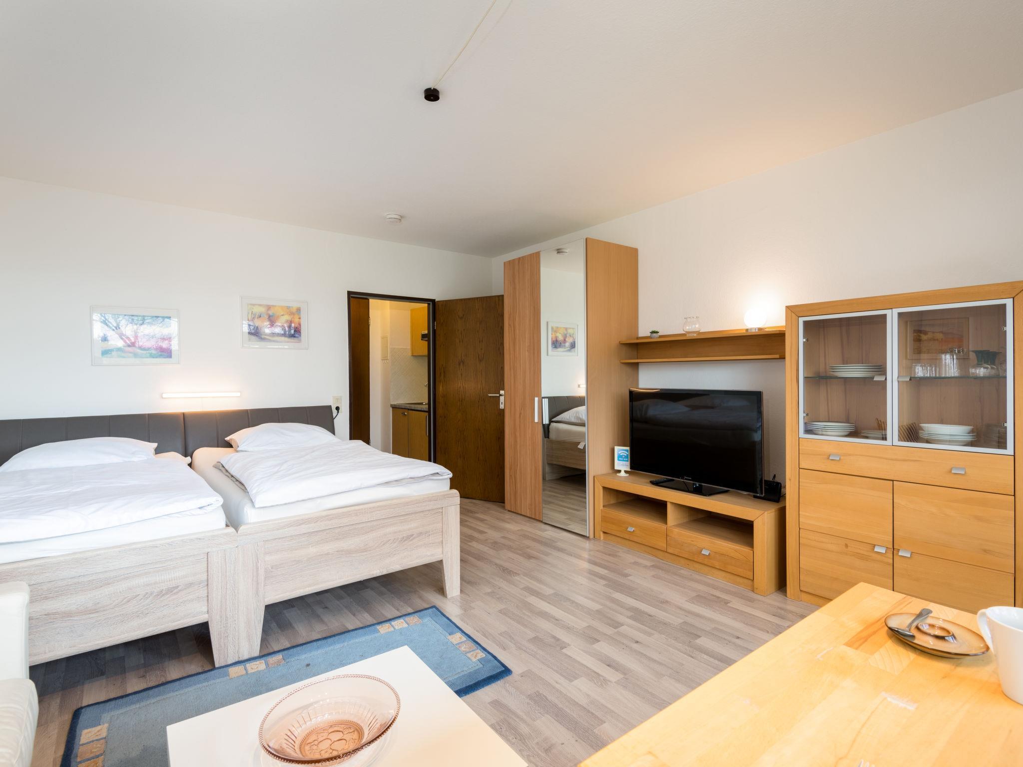 "Fauna (B307)", 1-room apartment 33 m2 on 3rd floor, west facing position. Living/sleeping room with 2 beds (90 cm, length 200 cm), satellite TV. Exit to the balcony. Kitchenette in the entrance (2 ceramic glass hob hotplates, toaster, kettle, electric coffee machine). Bath/shower/WC. Balcony furniture. Facilities: Internet (WiFi, free). Please note: non-smokers only. Maximum 1 pet/ dog allowed. Smoke alarm.