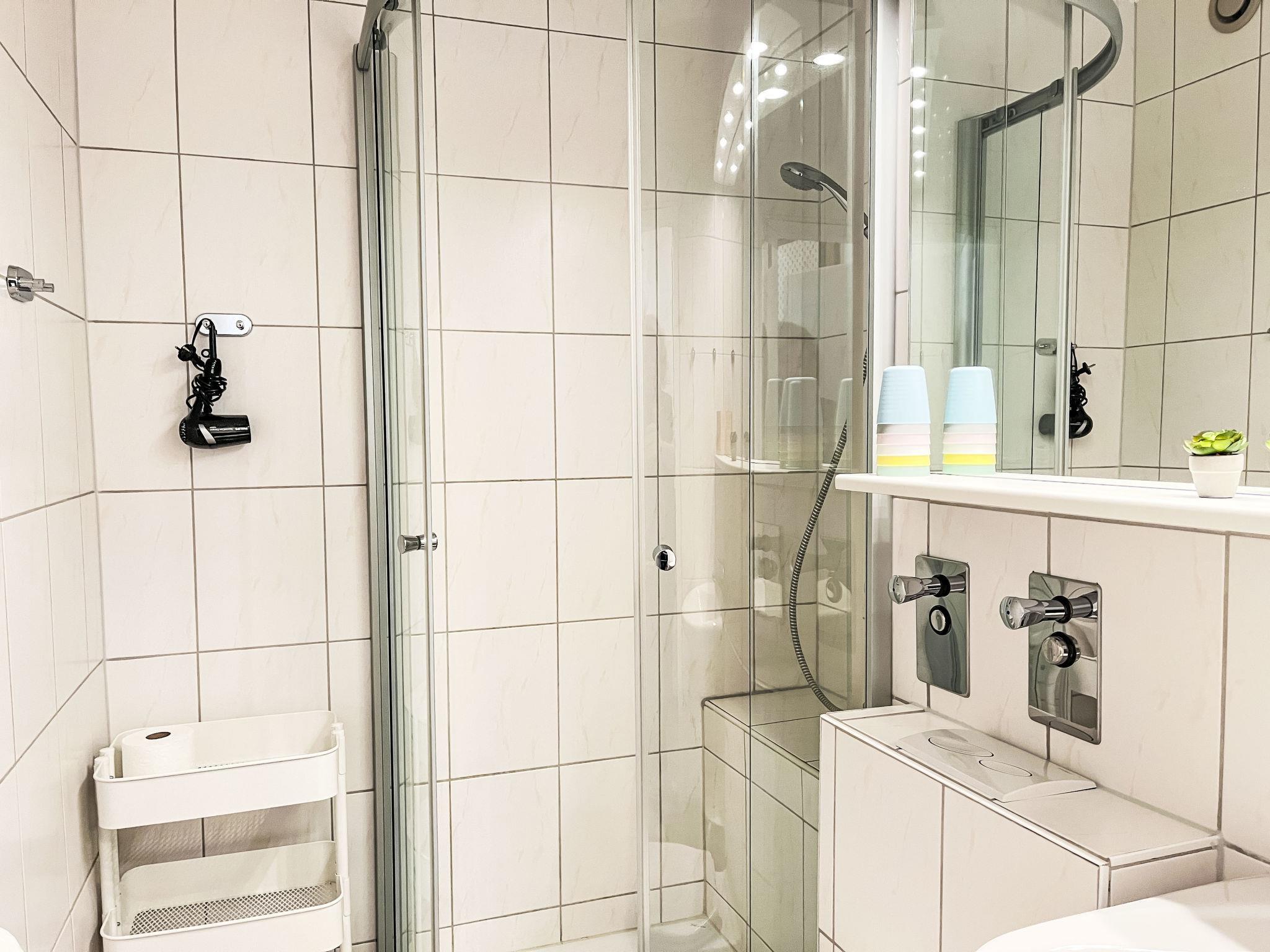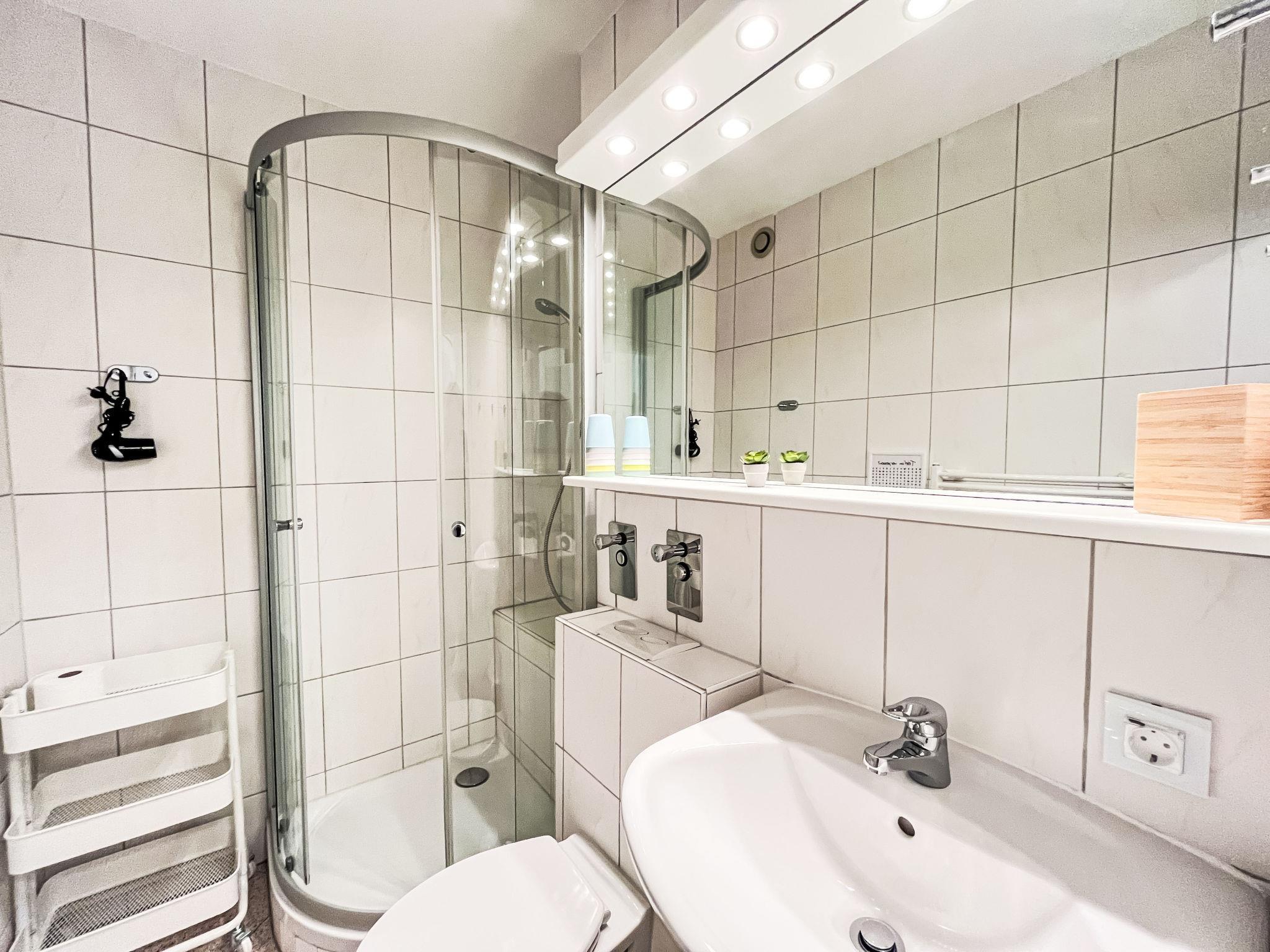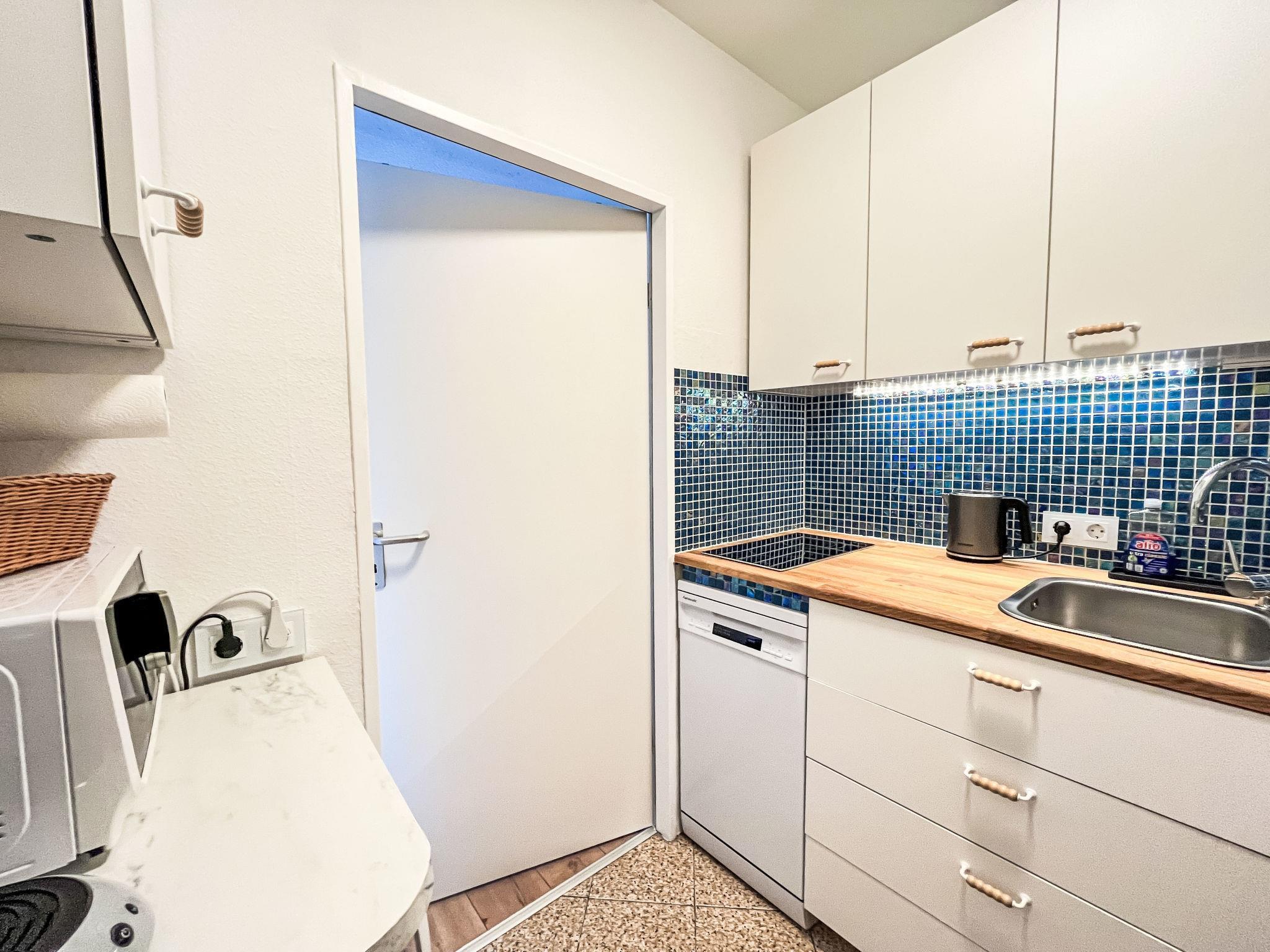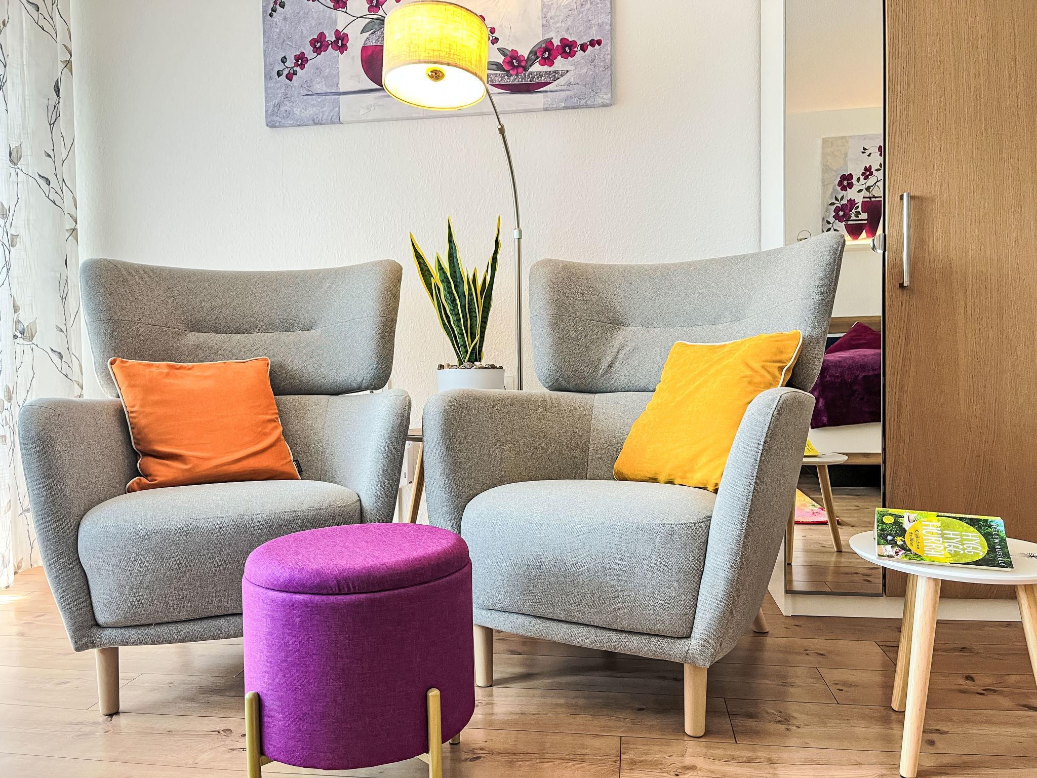 "Flieder (A110)", 1-room apartment 33 m2 on 1st floor. Beautiful and cosy furnishings: living/sleeping room with 1 french bed (160 cm, length 200 cm), satellite TV (flat screen). Exit to the balcony. Kitchenette in the entrance (dishwasher, 2 ceramic glass hob hotplates, toaster, kettle, microwave). Shower/WC. Balcony furniture. Facilities: iron. Internet (WiFi, free). Please note: non-smokers only. Maximum 1 pet/ dog allowed. Smoke alarm. There is a Senseo coffee pad machine.