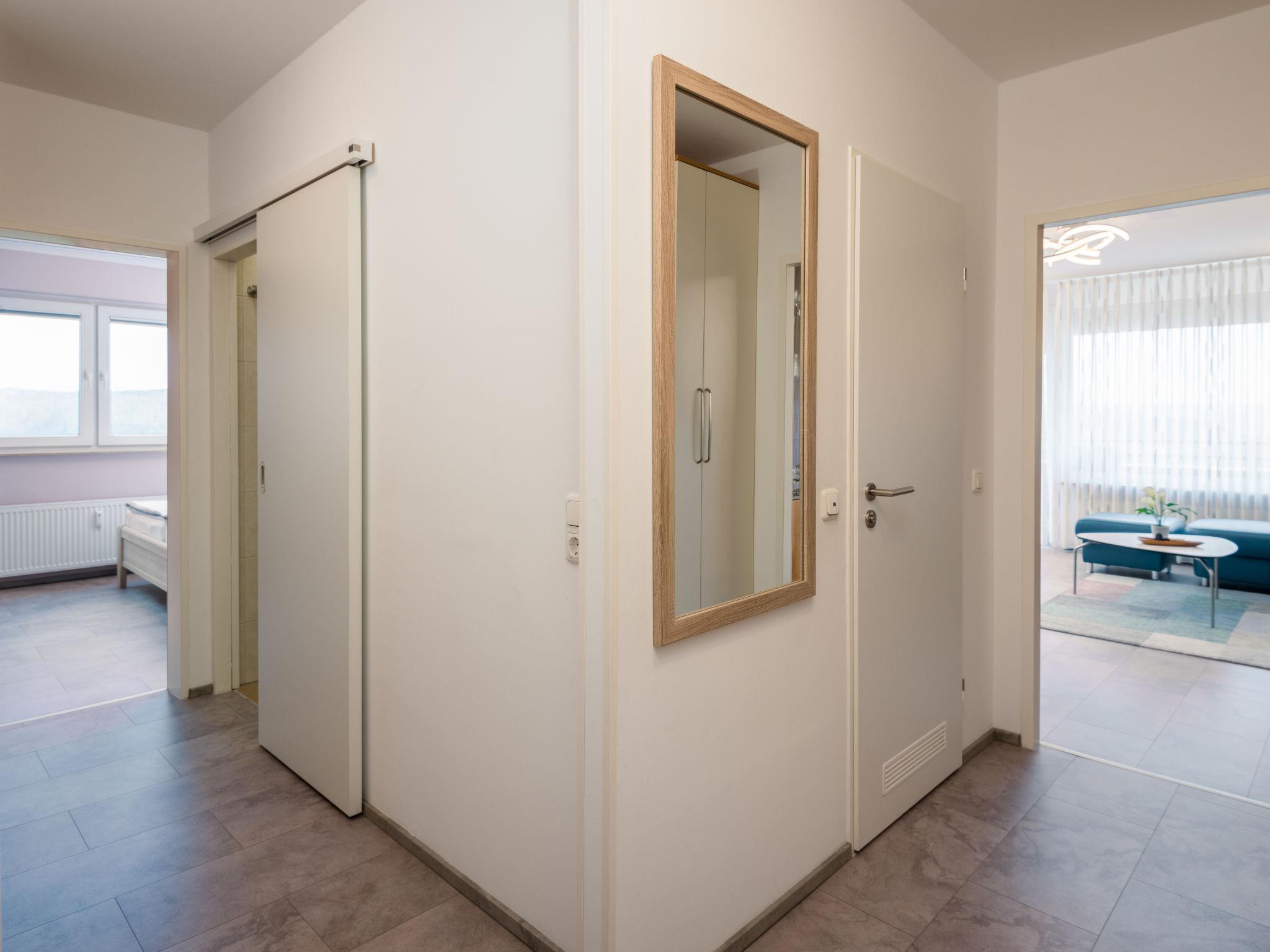 Lahnstein 12 km from Koblenz: Apartment block "Ferienpark Rhein-Lahn". In the district of Lahnstein auf der Höhe 4 km from the centre of Lahnstein, 12 km from the centre of Koblenz, 4 km from the river. For shared use: indoor pool (11 x 6 m, depth 120 cm) with internal staircase. Shower/WC in the pool area. In the complex: reception, WiFi, table tennis, lift, central heating system, washing machine, tumble dryer (for shared use, extra). Parking at the house. E-charging station. Grocery 200 m, supermarket 4.5 km, restaurant 800 m, bakery 4.5 km, bicycle rental 4.5 km, 45 minute walk to the centre, bus stop "Kurklinik" 200 m, railway station "Koblenz (HBF)" 12 km, park "Kurpark" 200 m, outdoor swimming pool 1.5 km, indoor swimming pool 5 km, thermal baths "Emser Therme" 10 km. Golf course (18 hole) 16 km, tennis 500 m, minigolf 6 km, walking paths from the house 100 m, cycle lane 4.5 km, children's playground 100 m. Nearby attractions: Burg Lahneck 3 km, Marksburg 7 km, Deutsches Eck Koblenz / Seilbahn 10 km, Schloss Stolzenfels 13 km. Hiking paths: Lahn-Höhenweg 100 m, Rheinsteig (11) 100 m, Jakobswege Rhein-Lahn. Please note: car recommended. Lahn River 4 km. Boat trips (KD) on the Rhine 4.5 km. Moselle River 10 km. A small kiosk with a small animal enclosure is 300 m away. The Rhein-Lahn holiday park is located 200 m above the town of Lahnstein, in the heart of the 530 km² Nassau Nature Park. It consists of two interconnected apartment buildings and its own Interhome service office. Smoking is permitted on the balconies of the apartments. An 11 kW electric charging station is located in the parking lot. Usage and billing are handled through the Interhome service office.