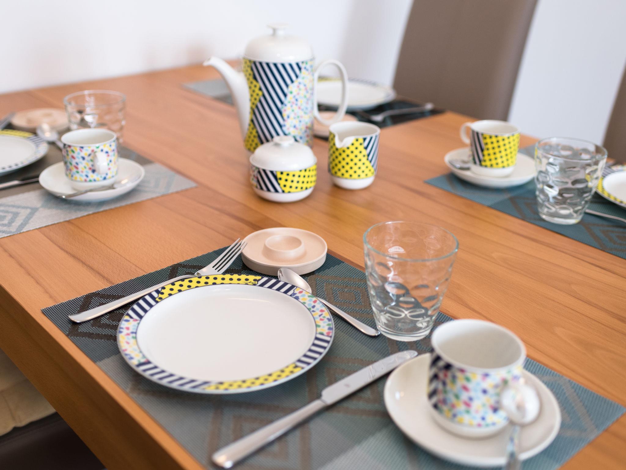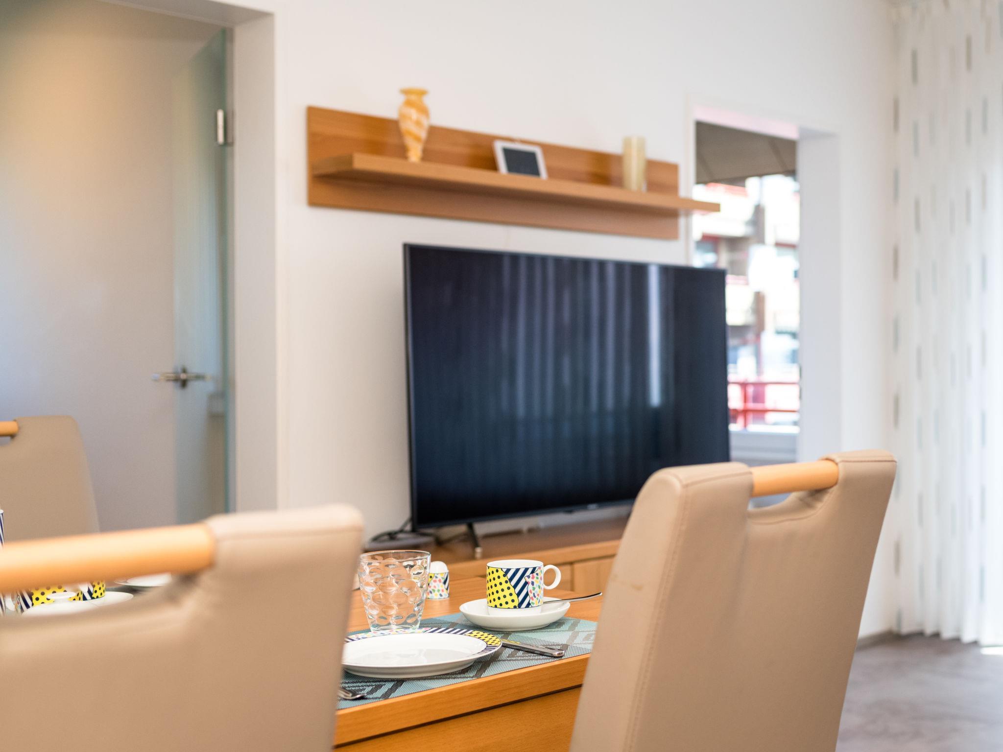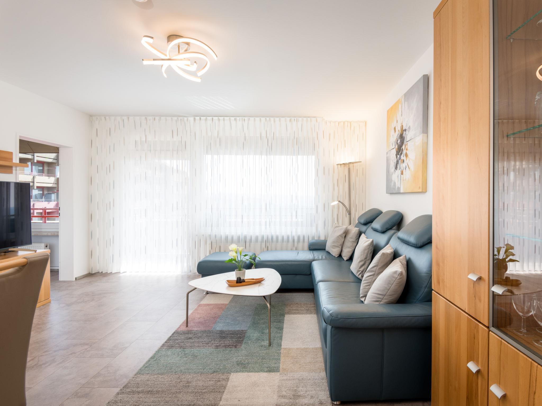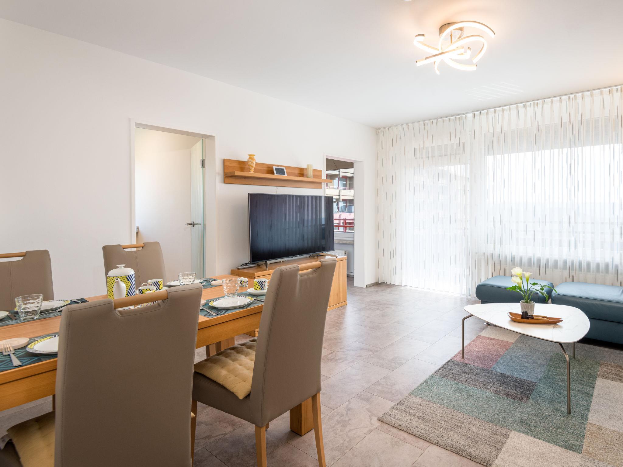 "Horizont (B1014)", 3-room apartment 68 m2 on 10th floor, south facing position. Very tasteful and cosy furnishings: living/dining room with 1 double sofabed (120 cm, length 210 cm), satellite TV (flat screen). Exit to the balcony. 1 room with 1 double bed (2 x 100 cm, length 200 cm). 1 room with 1 double sofabed (160 cm, length 200 cm). Kitchen (oven, dishwasher, 4 induction hot plates, toaster, kettle, electric coffee machine). Shower, sep. WC. Balcony furniture. Marvellous view of the countryside. Facilities: washing machine. Internet (WiFi, free). Please note: non-smokers only. Smoke alarm. Bookings accepted for holiday purposes only.