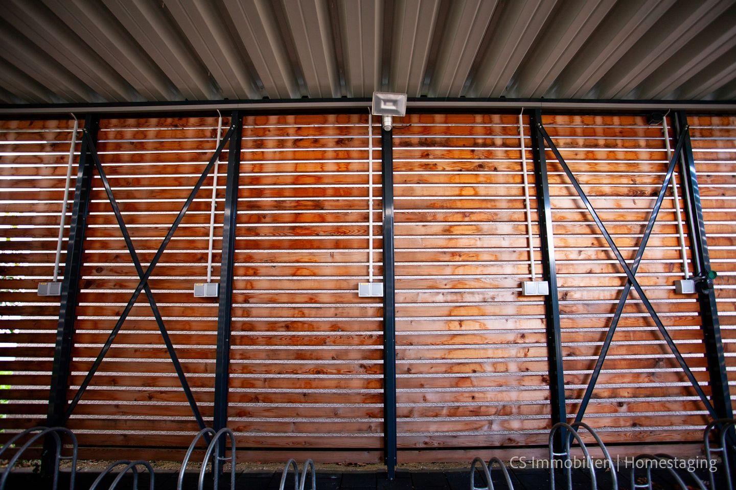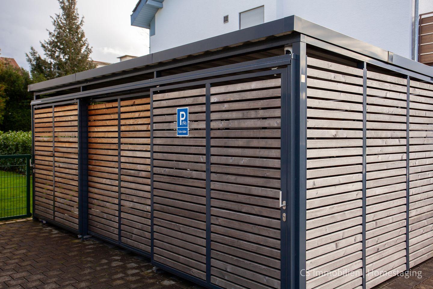 Alle Fenster sind mit elektrischen Rollläden ausgestattet. Ein eigener Parkplatz steht vor dem Haus zur Verfügung, und Fahrräder können sicher in einem abgeschlossenen Fahrradschuppen mit E-Bike-Ladestation untergebracht werden. Waschmaschine und Trockner befinden sich im Waschkeller. Die Ortsmitte mit Geschäften des täglichen Bedarfs ist ebenfalls in nur 5 Gehminuten erreichbar.