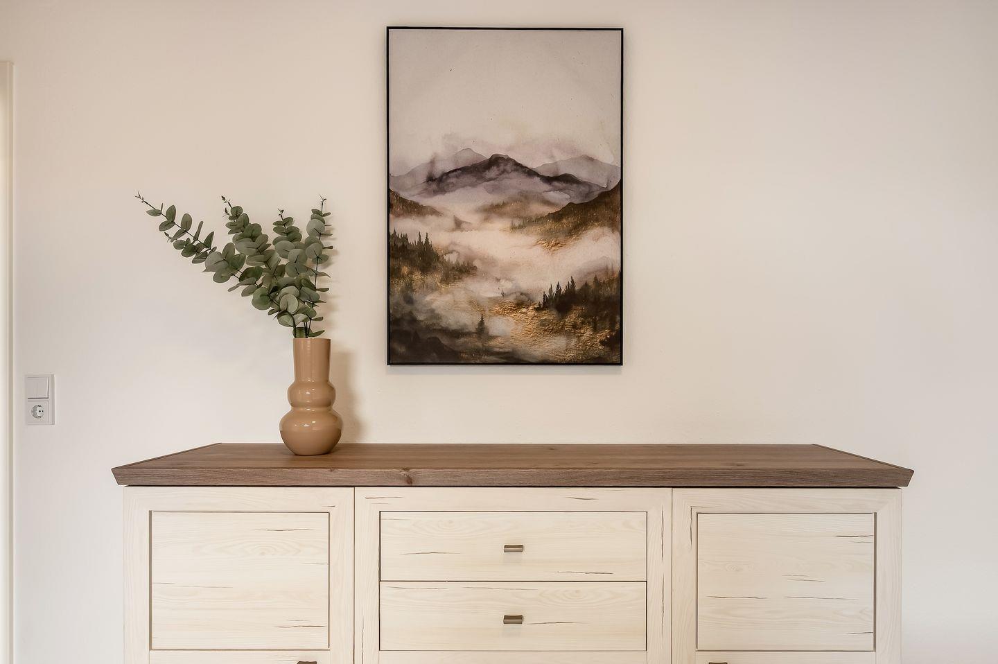 Der helle Wohnbereich lädt mit einer gemütlichen Sofaecke, einem einladenden Essbereich und einem großzügigen Esstisch zum Entspannen und Verweilen ein. Für Ihre Unterhaltung steht ein moderner TV mit Kabel- und Digitalanschluss zur Verfügung. Selbstverständlich profitieren Sie auch von kostenfreiem WLAN mit einer schnellen Internetverbindung ab 100 Mbit/s – ideal für Streaming, Arbeiten oder die Urlaubsplanung.