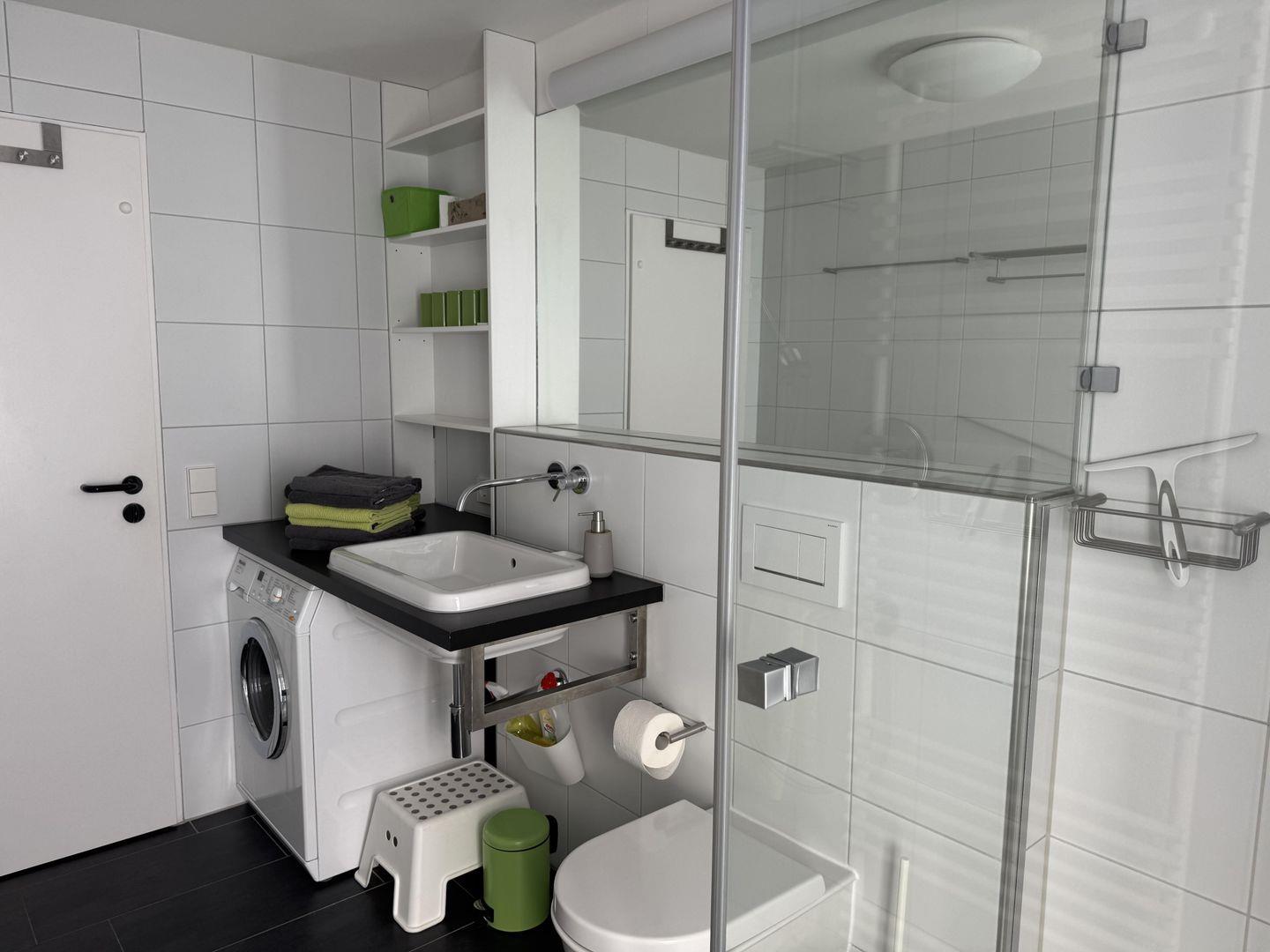 Waschmaschine, Trockner, Wäschereck, Bügelbrett-und eisen stehen zur Verfügung.