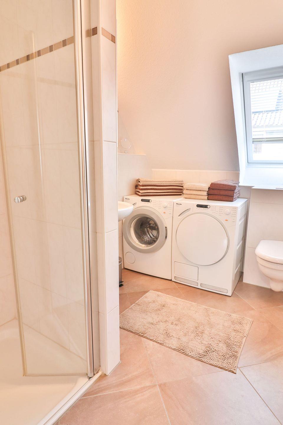 Das Haus bietet Ihnen drei helle und freundliche Schlafzimmer, die zum Entspannen und Wohlfühlen einladen. Verdunkeln können Sie alle Schlafzimmer mit Vorhängen. Zwei Schlafzimmer sind mit Doppelbetten (je 160 x 200 cm) und eines mit zwei gleich großen Einzelbetten (je 80 x 200 cm) ausgestattet. In einem der Doppelzimmer gibt es einen zusätzlichen Fernseher. Die beiden Badezimmer verfügen über modernste Sanitäranlagen, inklusive je einer Dusche. Im oberen Bad befinden sich zusätzlich Waschmaschine und der Trockner, die Sie kostenfrei nutzen können.