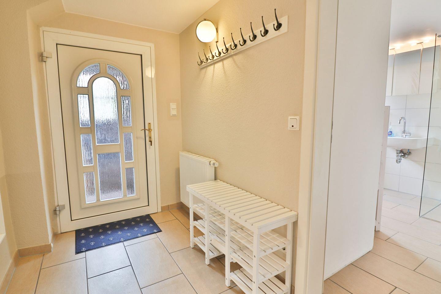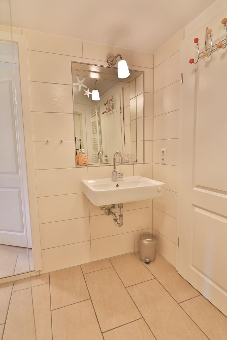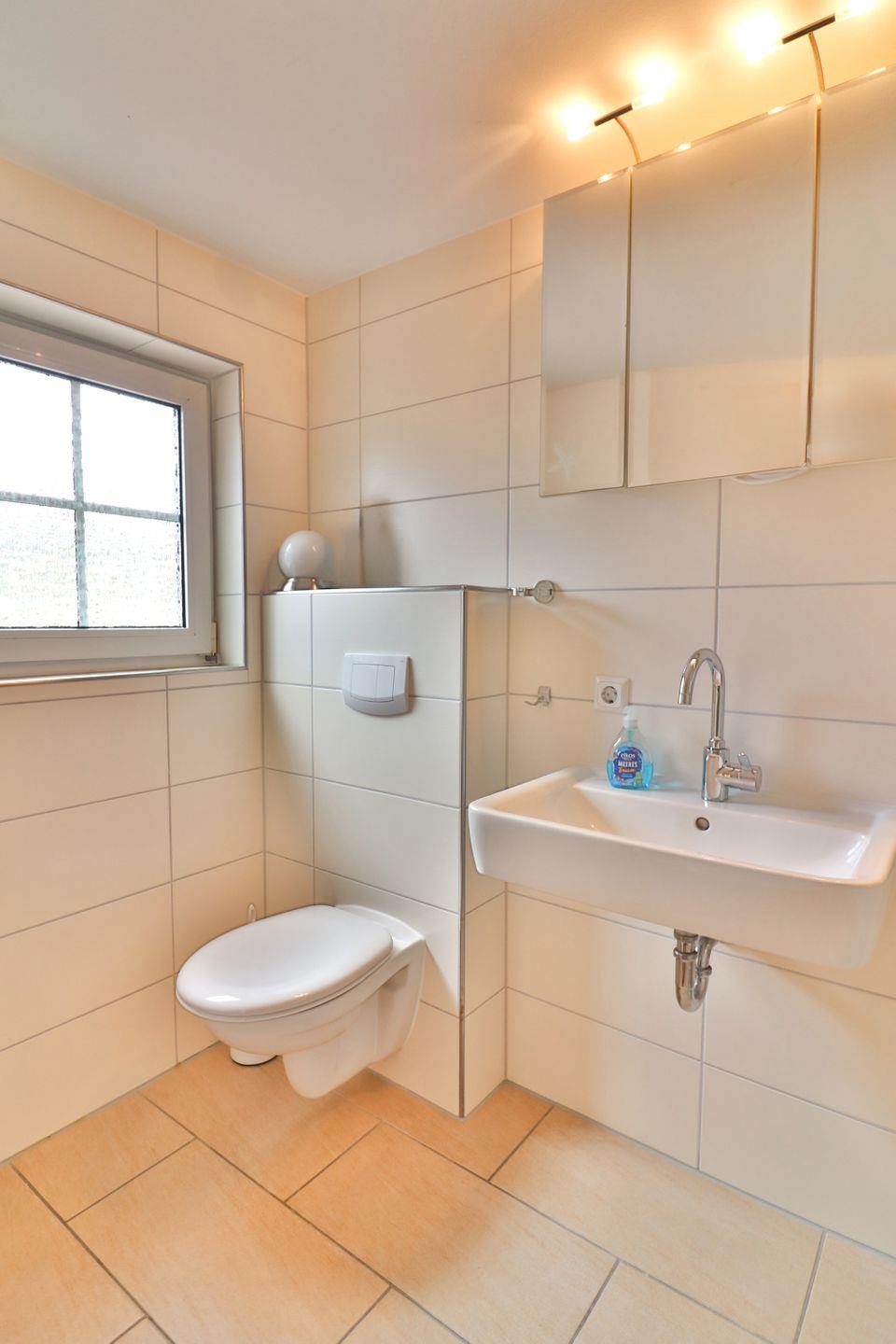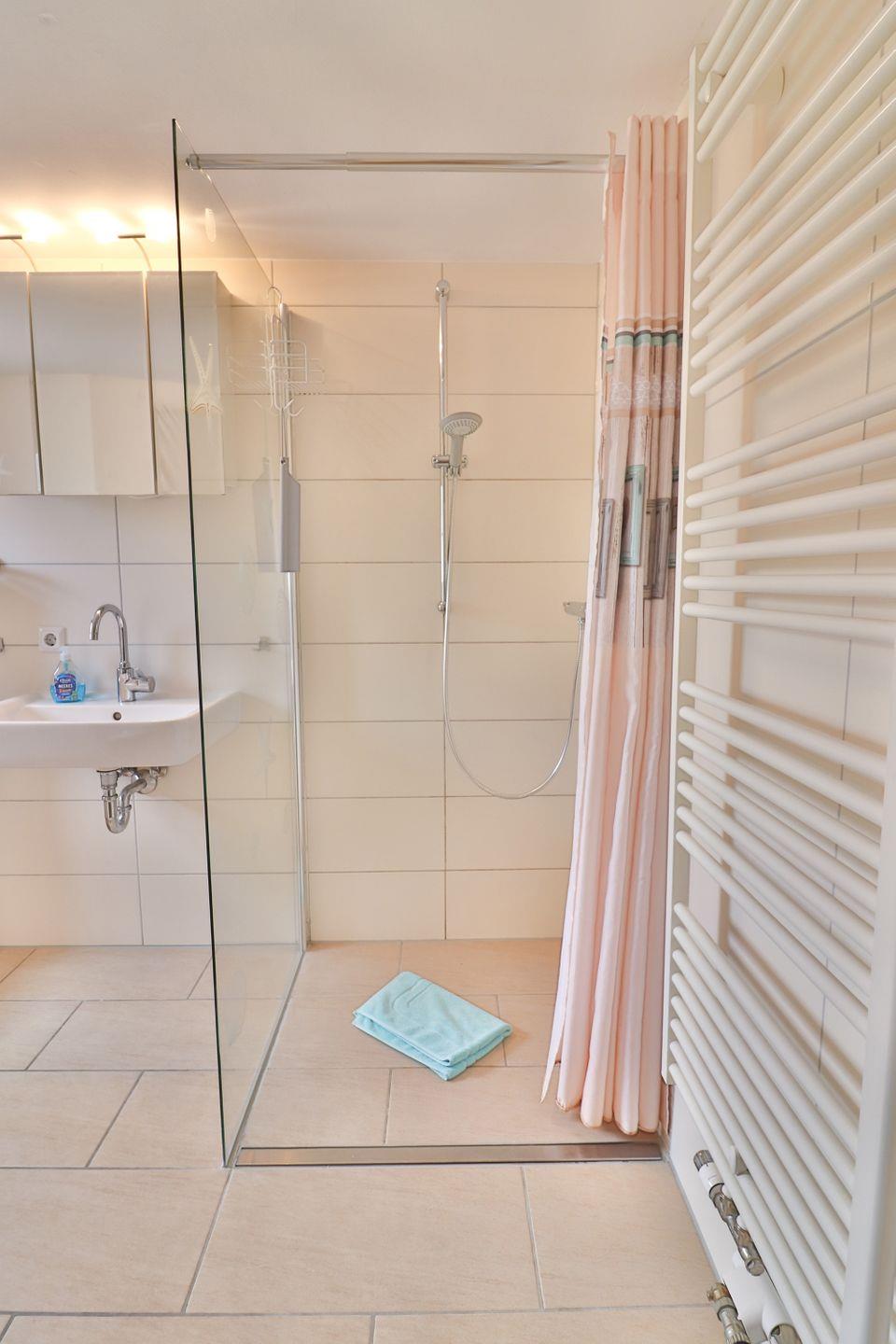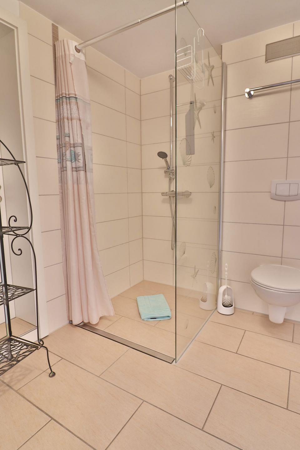 Die beiden Badezimmer sind jeweils mit Fußbodenheizung, einer bodengleichen Dusche, Waschbecken, Spiegel und WC ausgestattet. In einem der beiden Badezimmer befindet sich eine eigene kleine Sauna. Auch im Eingangsbereich trocknet und wärmt eine Fußbodenheizung Ihre nassen Schuhe. Sichtschutz an allen Fenstern sorgt für Privatsphäre.