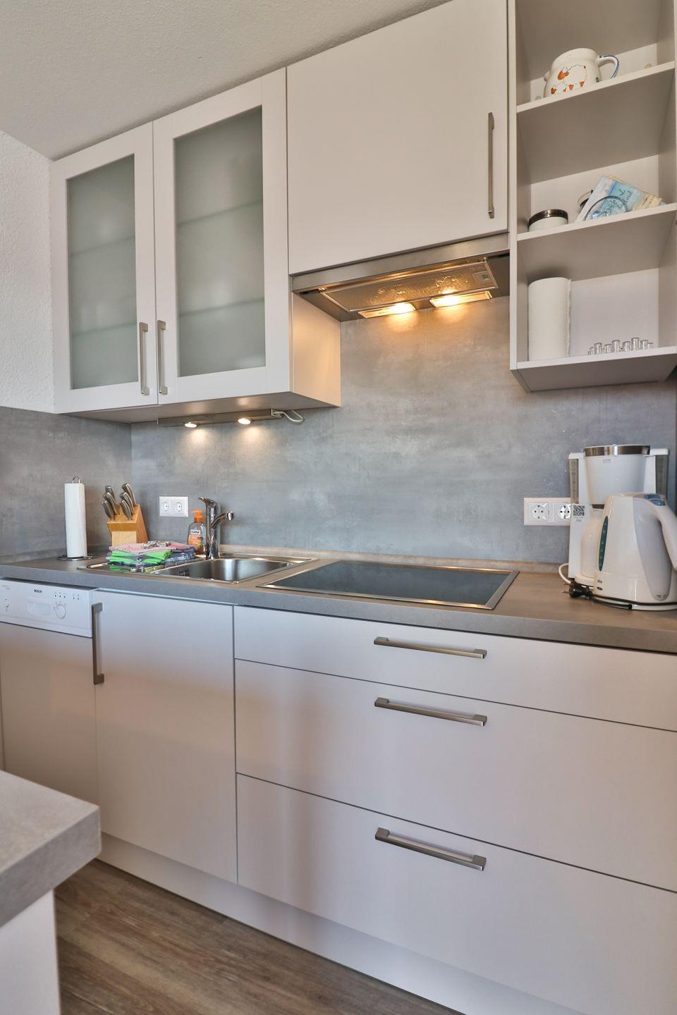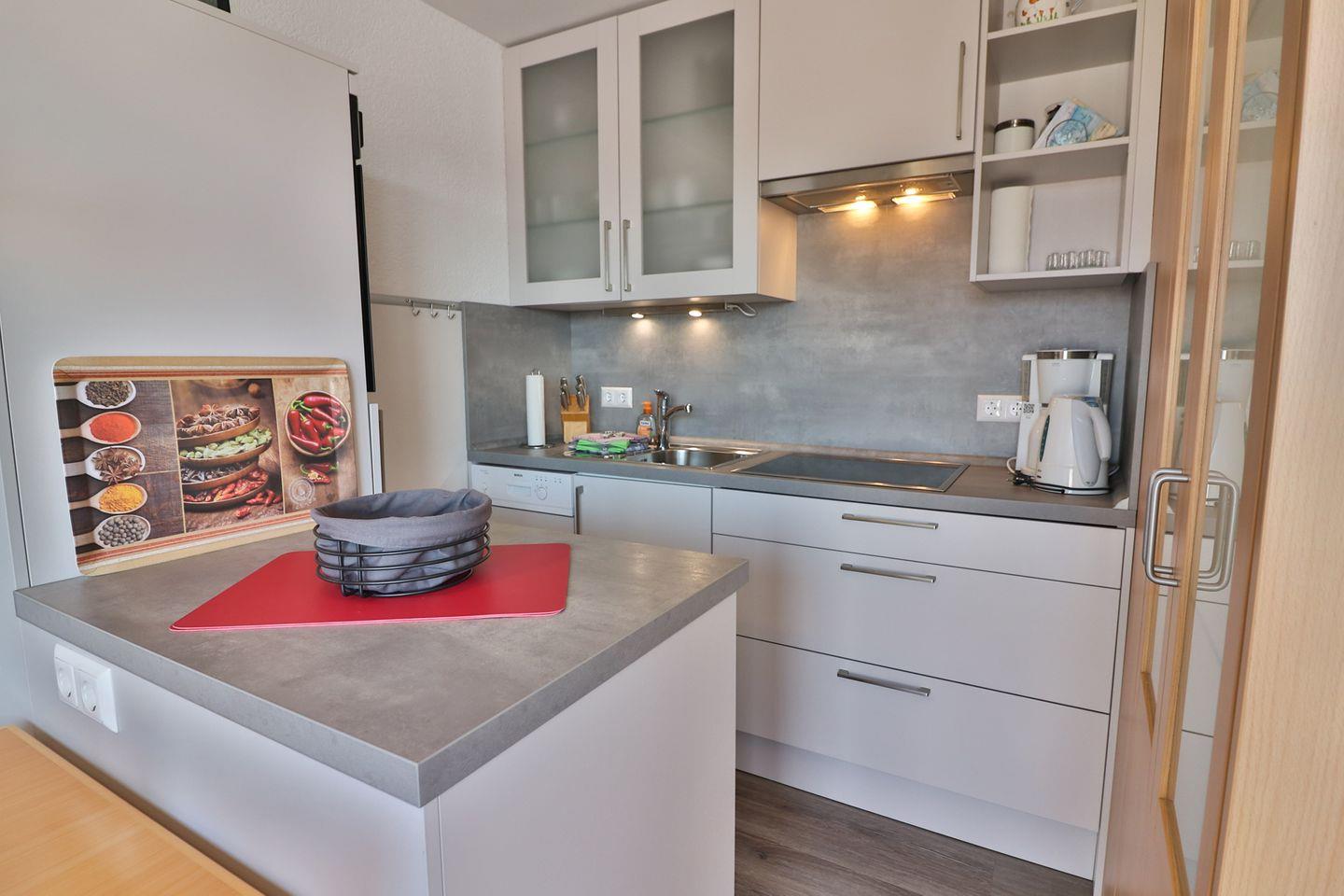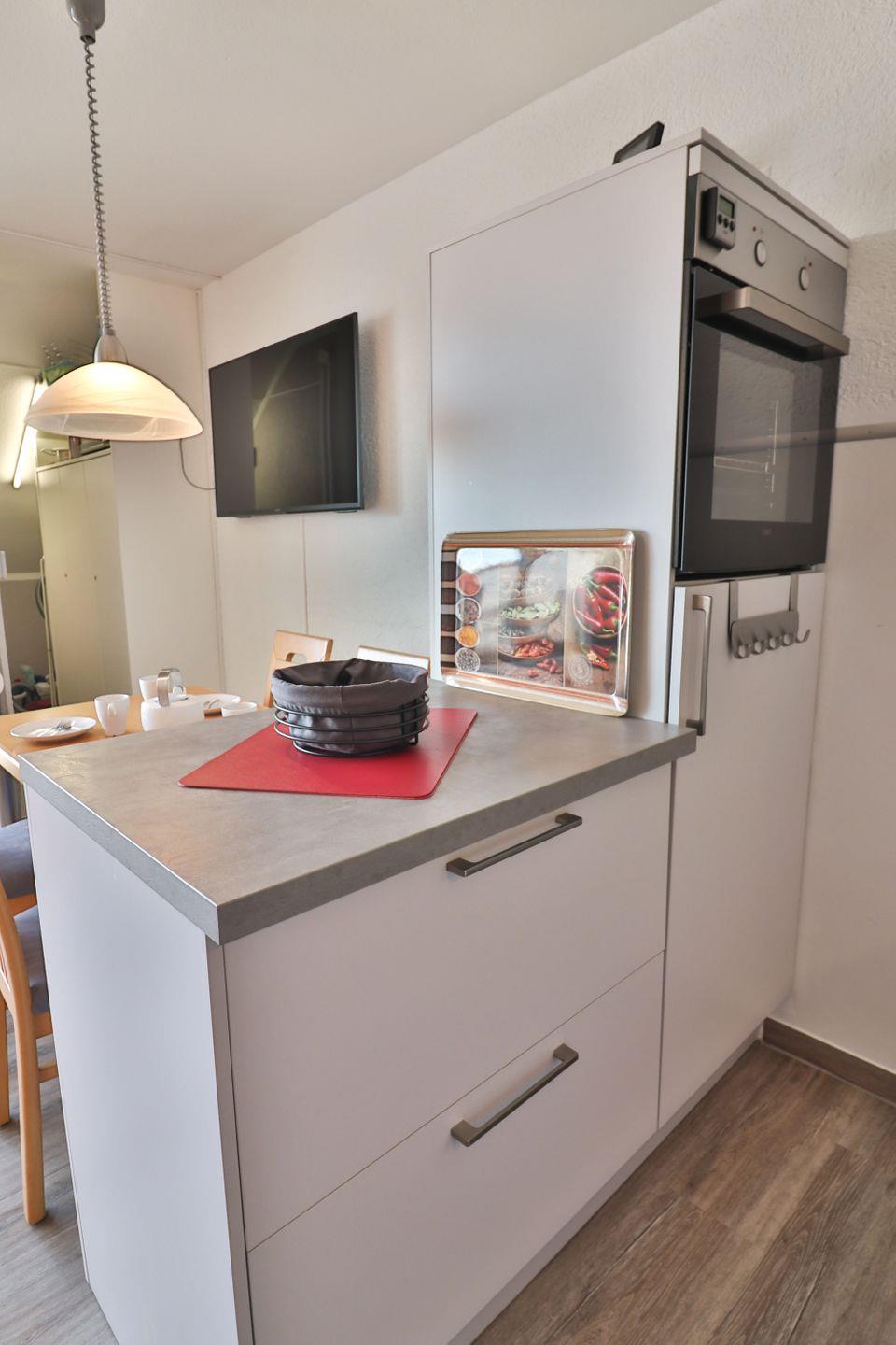 Die Kochnische ist umfassend ausgestattet und lässt keine Wünsche offen: Neben einem Herd, Backofen, Kühlschrank mit integriertem Gefrierfach, Spülmaschine, Mikrowelle sowie Toaster, Wasserkocher, Kaffeemaschine, Mixer und diversen Küchenutensilien finden Sie alles vor, was für die Zubereitung Ihrer leckeren Mahlzeiten erforderlich ist. Geschirr, Besteck und Geschirrhandtücher sind selbstverständlich vorhanden.