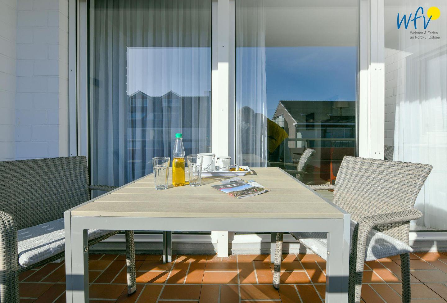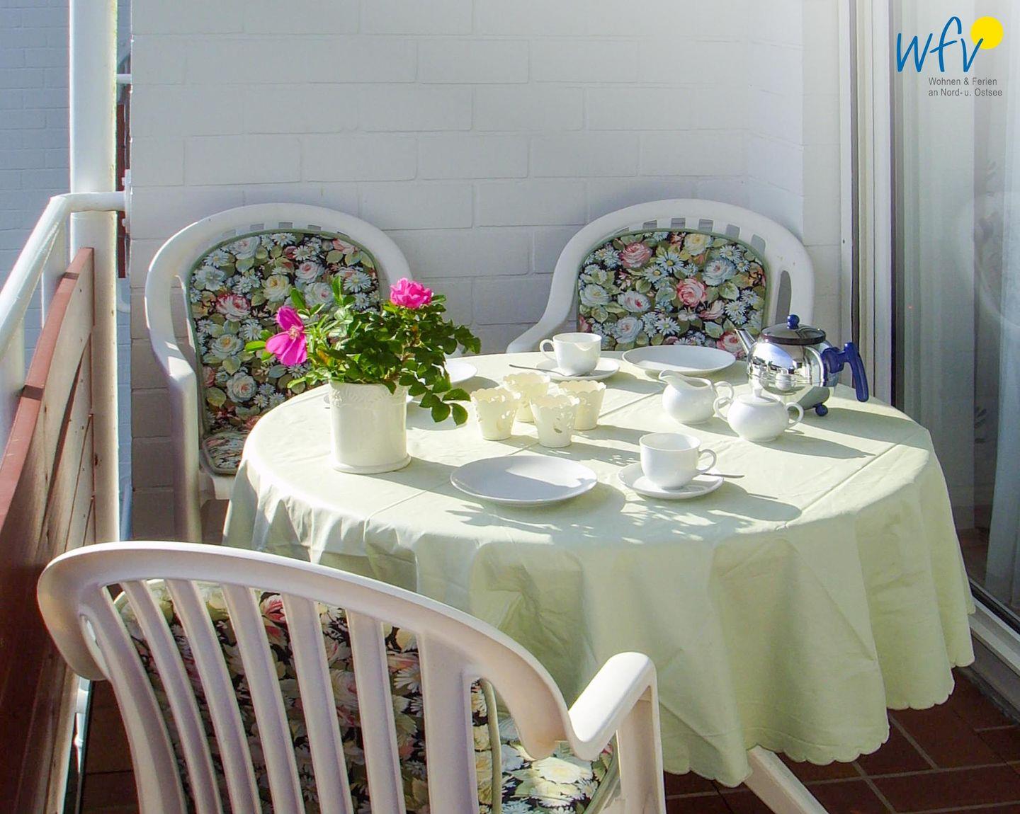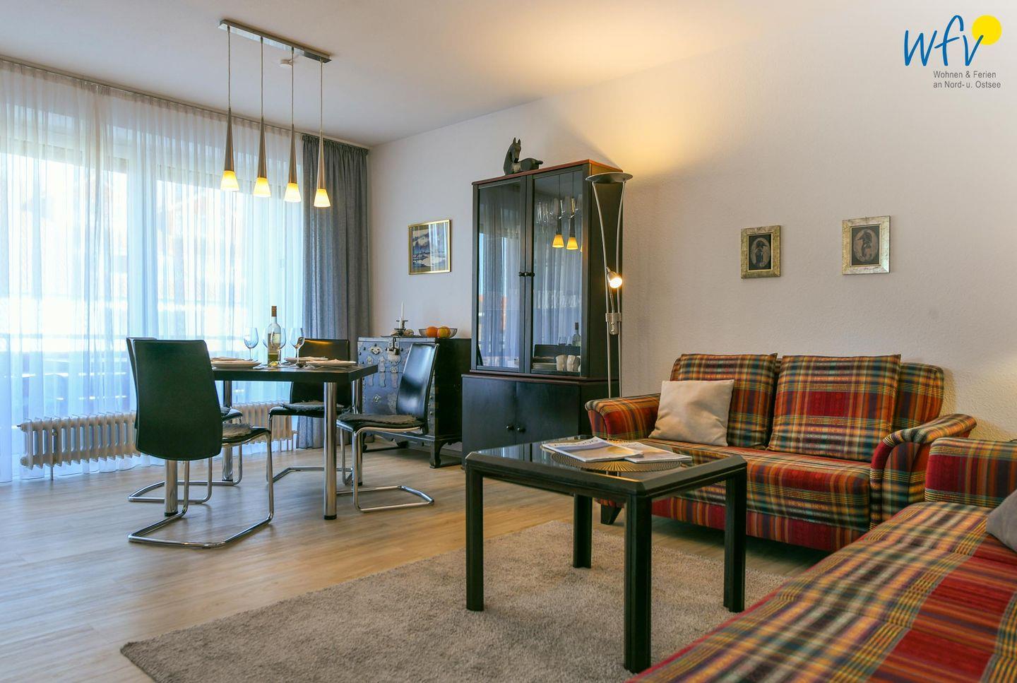 Nach dem Strandtag oder der Wattwanderung lädt der helle Wohnraum mit Essplatz und Sofaecke sowie TV, DVD-Player und CD-Player ein. Oder Sie genießen auf dem Balkon erholsame Stunden - mit einem Buch und dem schönen Ausblick in die ruhige Umgebung. Ein wunderbares Urlaubsgefühl!