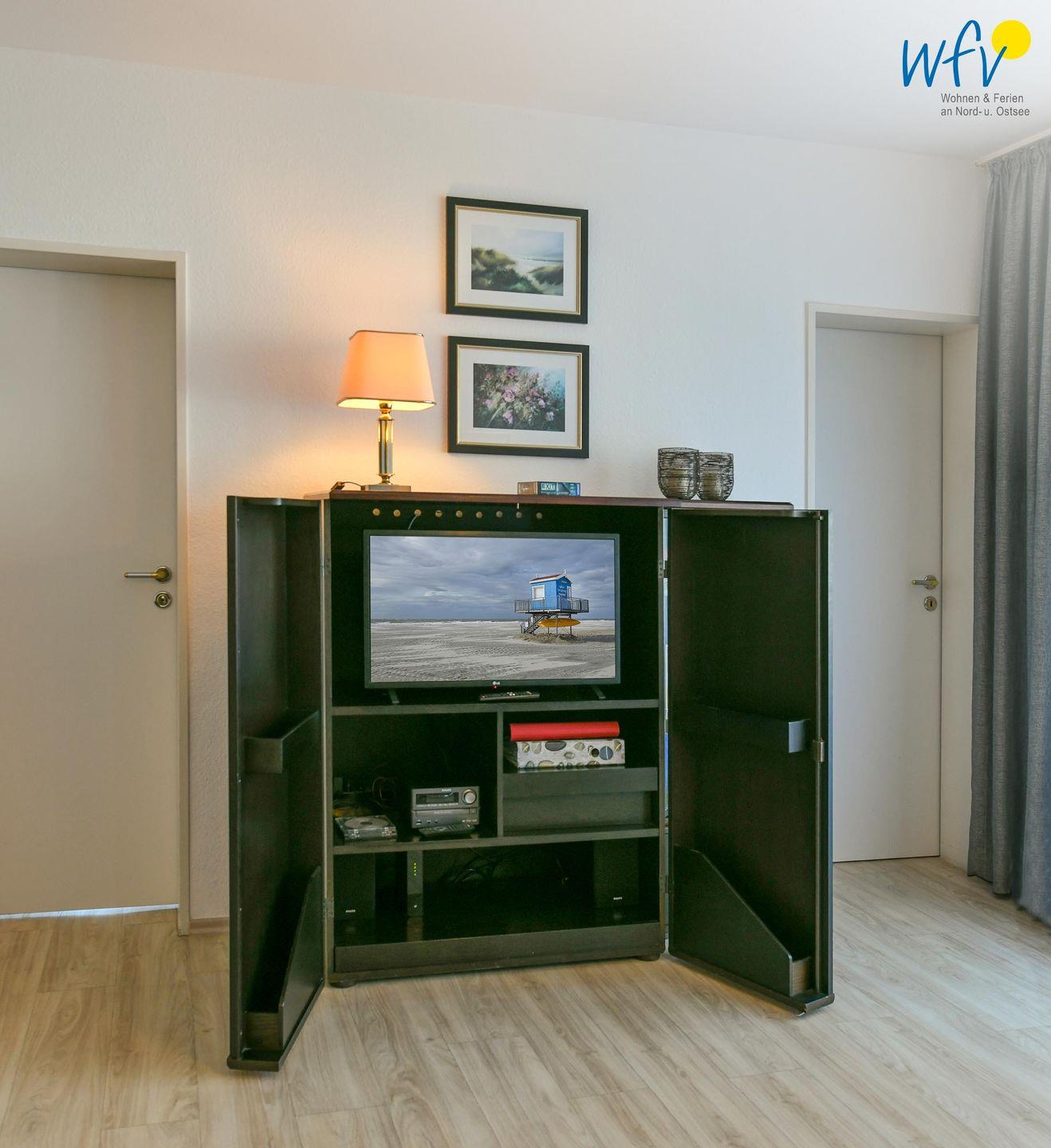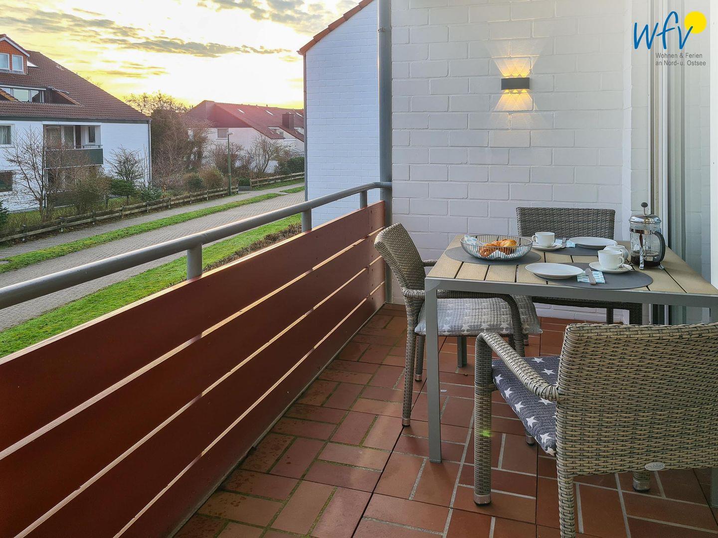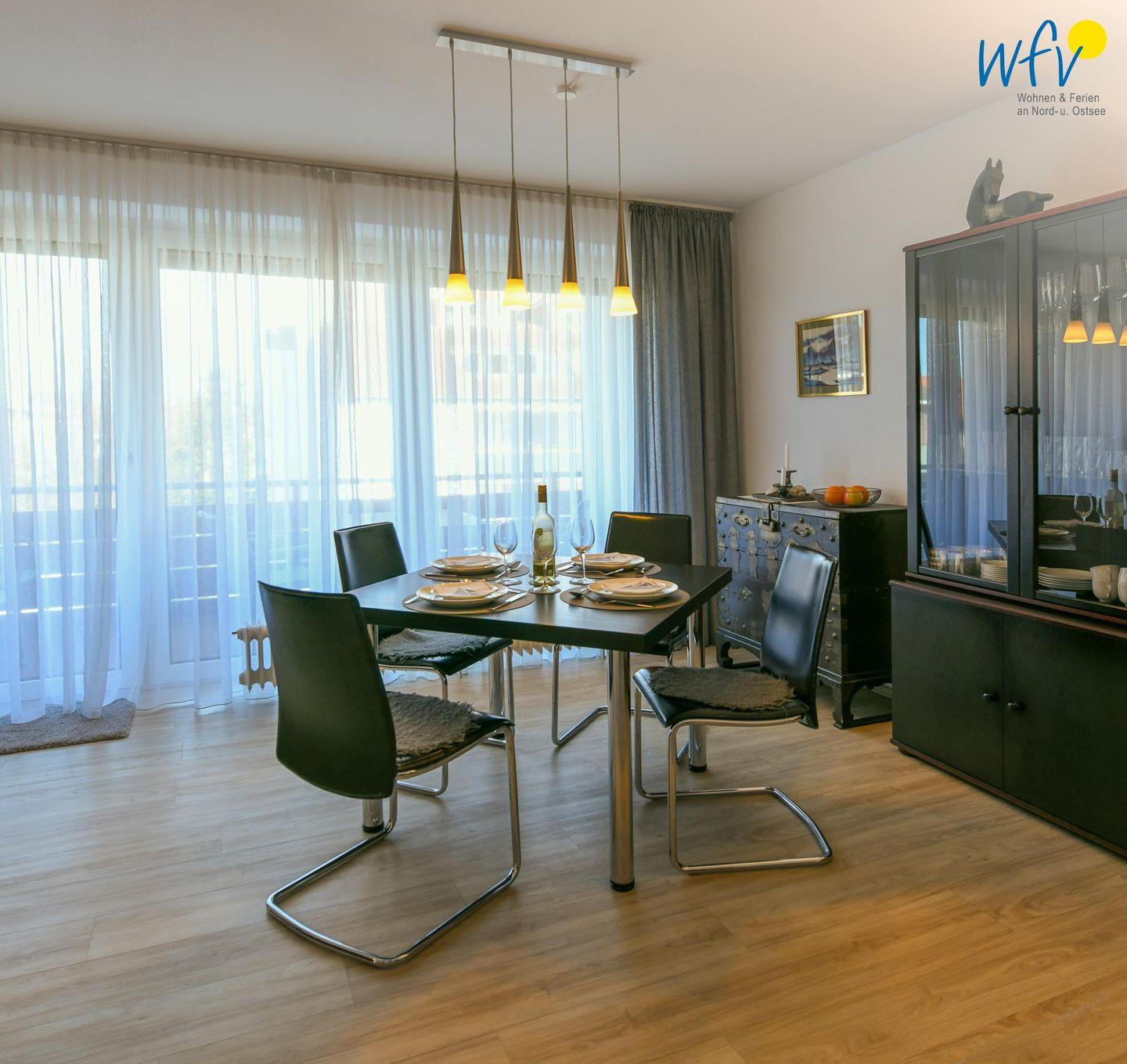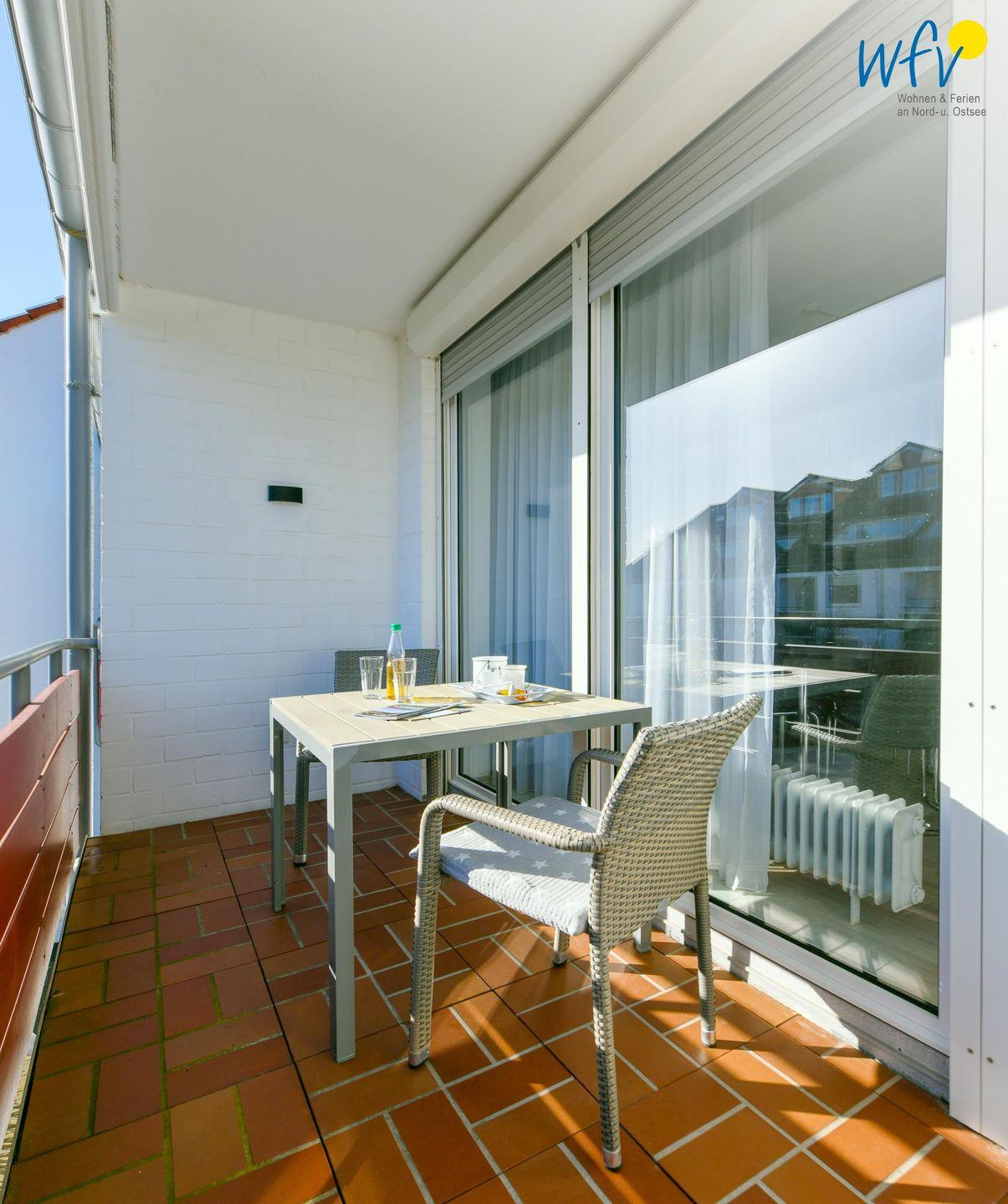 Nach dem Strandtag oder der Wattwanderung lädt der helle Wohnraum mit Essplatz und Sofaecke sowie TV, DVD-Player und CD-Player ein. Oder Sie genießen auf dem Balkon erholsame Stunden - mit einem Buch und dem schönen Ausblick in die ruhige Umgebung. Ein wunderbares Urlaubsgefühl!