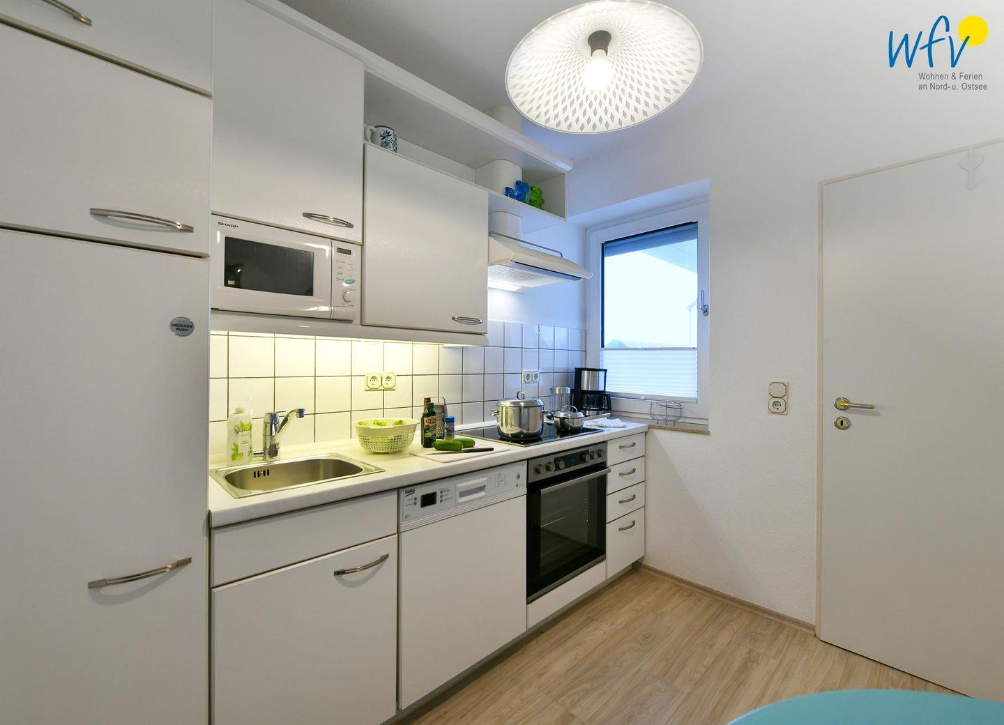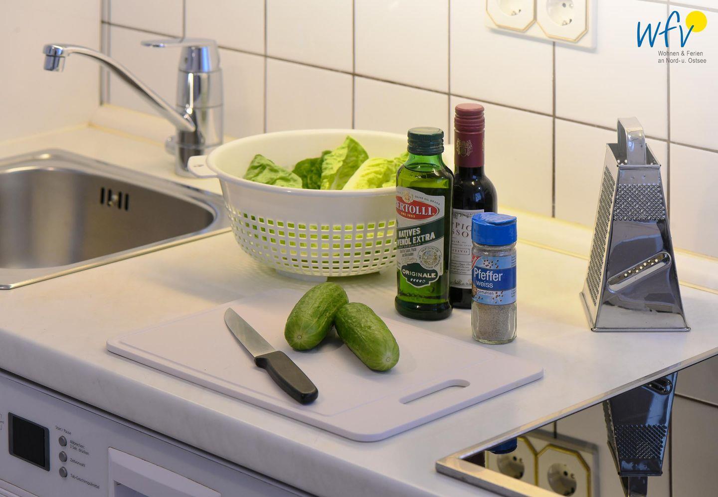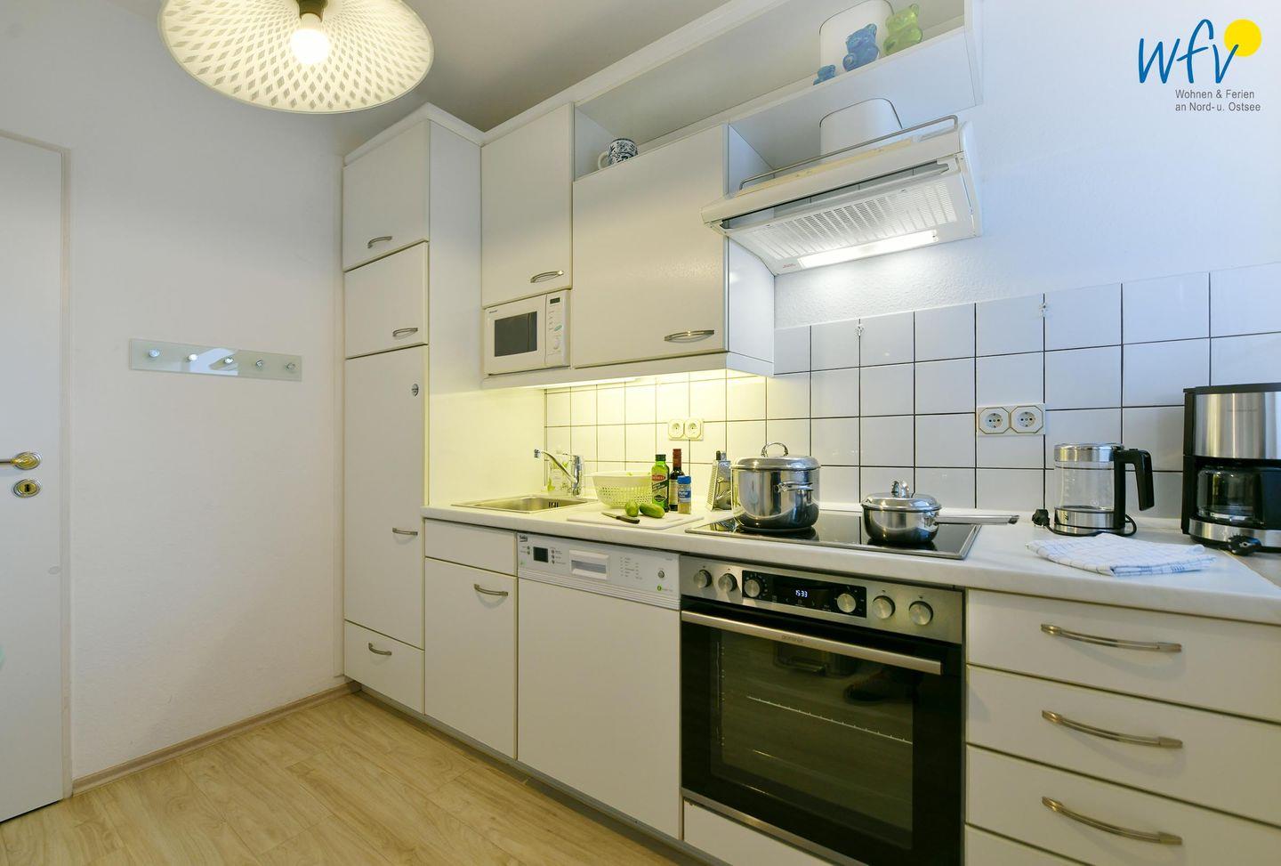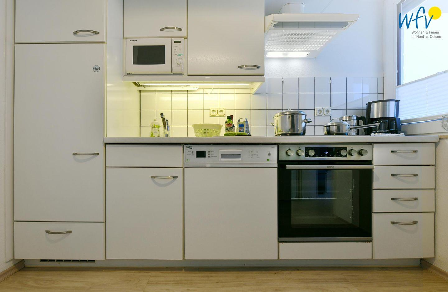 Bereits beim Ferienfrühstück beginnen Sie entspannt den Urlaubstag. In Gedanken wird schon die Badetasche gepackt oder der Rucksack für den Strandspaziergang. Warme Frühstücksbrötchen, kleine Snacks für den Ausflug und leckere Mahlzeiten lassen sich in der gut ausgestatteten separaten Küche zubereiten. Ein 4-Platten-Ceranherd, ein Backofen, eine Mikrowelle und ein Geschirrspüler ermöglichen Ihnen eine bequeme Selbstverpflegung sowie gemeinsames Kochen und Klönen.