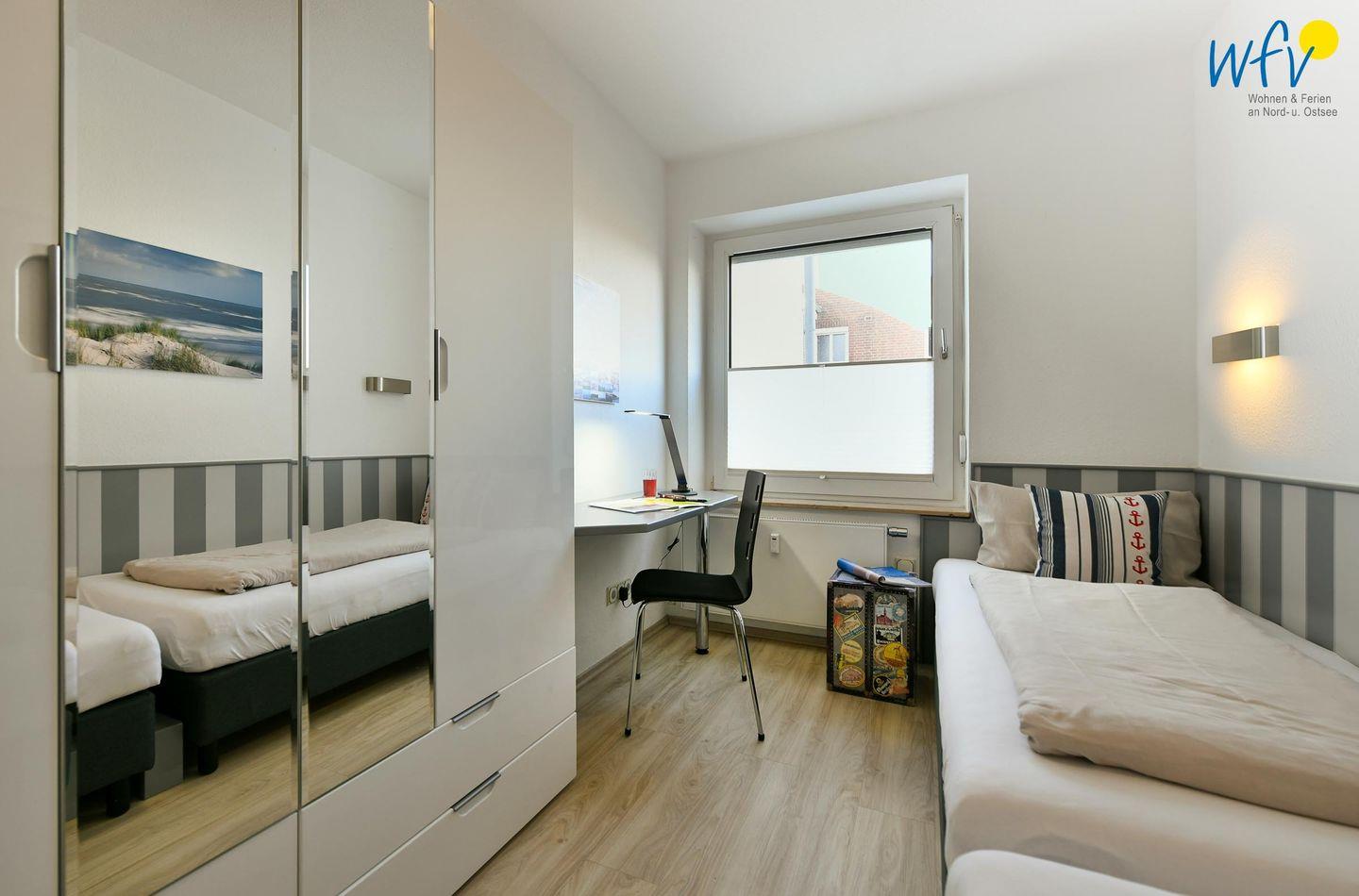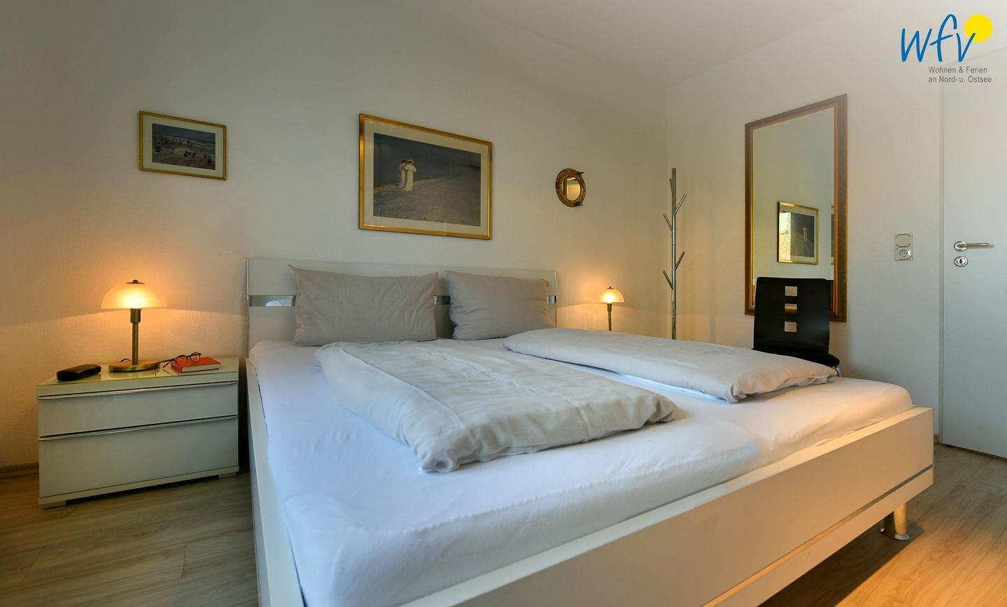 Wenn auf Langeoog die Sonne untergeht, bieten Ihnen zwei separate Schlafzimmer einen wohligen Rückzugsort. Das Elternschlafzimmer ist mit einem Doppelbett ausgestattet (180 cm x 200 cm), das Kinderzimmer mit zwei Einzelbetten (je 90 x 190 cm). Für Ihre Urlaubsgarderobe sind geräumige Kleiderschränke vorhanden, zudem befindet sich im Elternschlafzimmer ein TV.