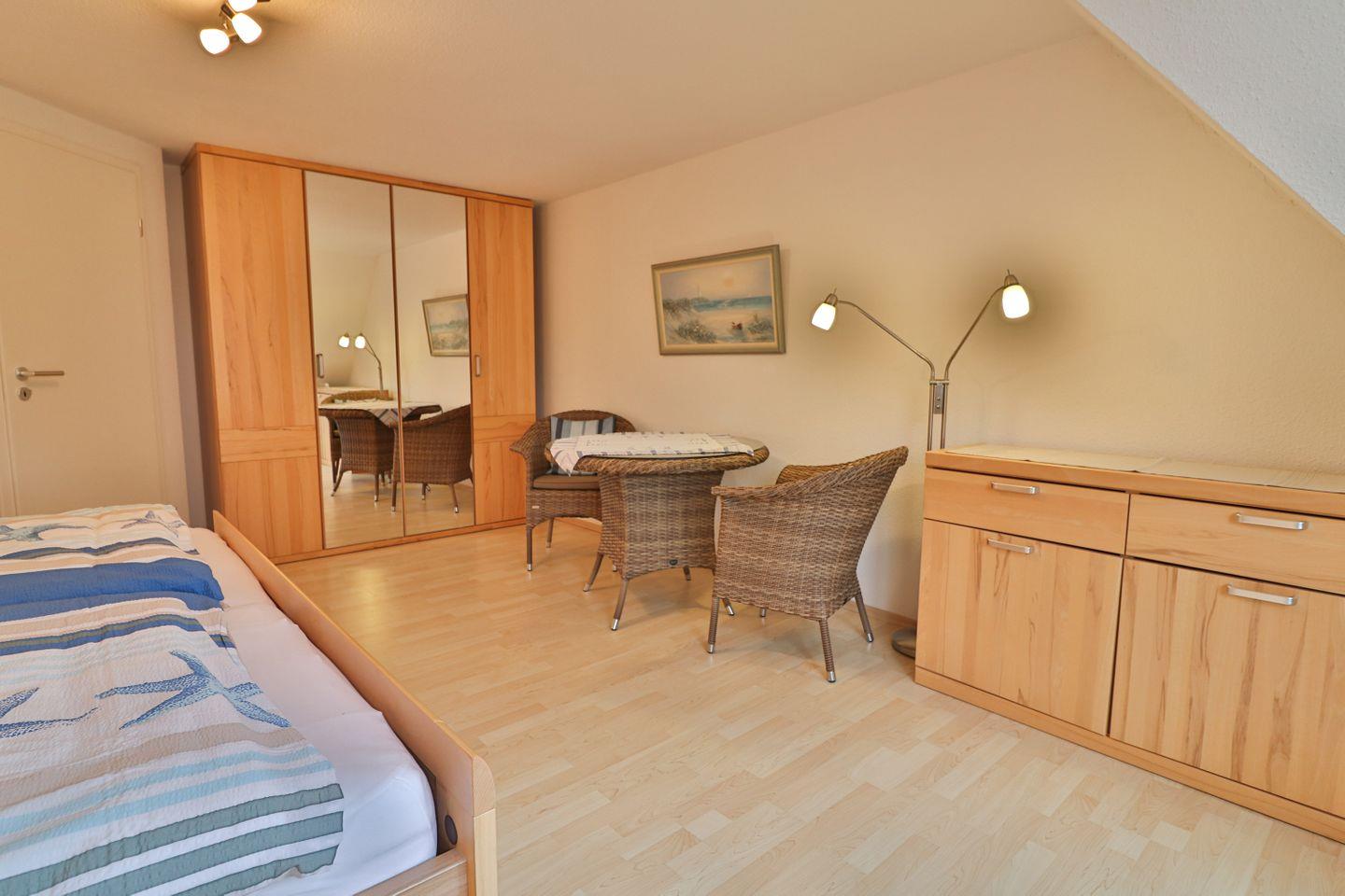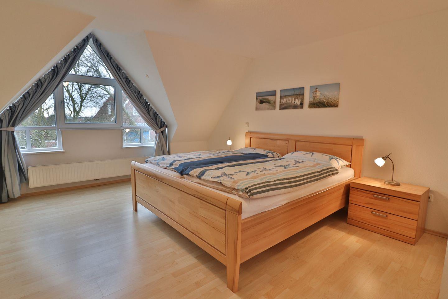 Das Haus Pirola auf Langeoog bietet Ihnen einen komfortablen Rückzugsort in ruhiger, naturnaher Lage, der sich besonders für Familien und kleine Gruppen eignet. Die großzügige Unterkunft mit einer Wohnfläche von ca. 100 m² verfügt über insgesamt vier Zimmer, darunter drei separate Schlafzimmer, die insgesamt bis zu sechs Schlafmöglichkeiten bereitstellen. Es gibt zwei Zimmer mit Doppelbetten (180 x 200 cm), wobei es sich bei einem von beiden um zwei zusammengestellte Einzelbetten (je 90 x 200 cm) handelt. Das dritte Schlafzimmer verfügt über zwei Einzelbetten (je 90 x 200 cm). Auf drei Etagen gestaltet, hebt sich das Haus durch ein offenes und zugleich harmonisches Raumkonzept hervor.
