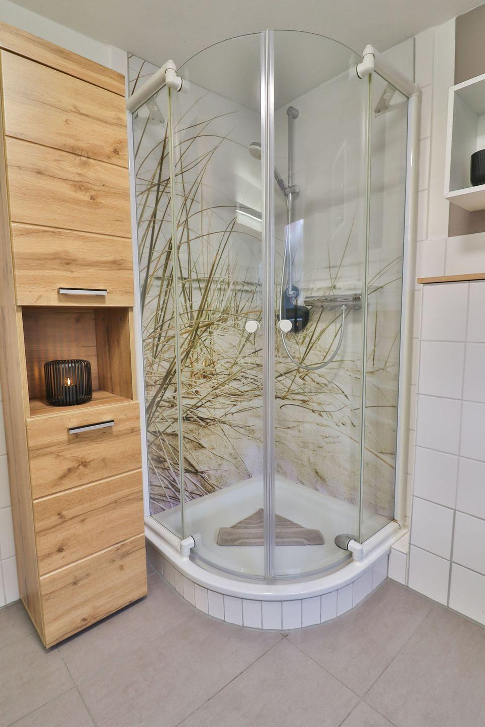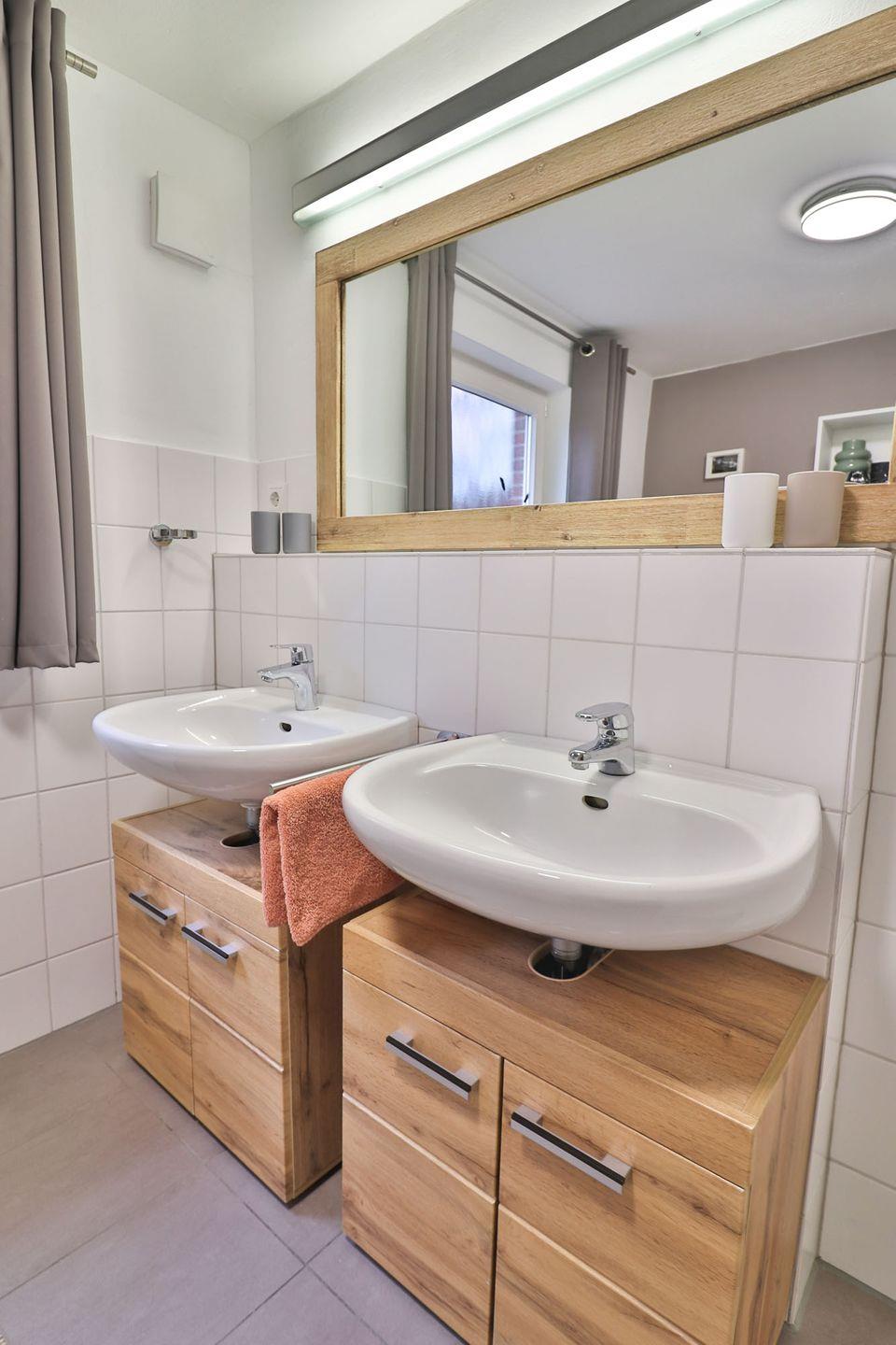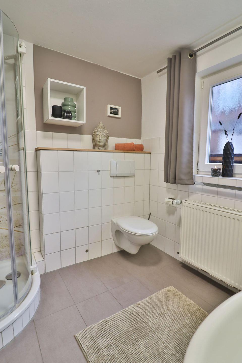 Das helle Tageslichtbad bietet Dusche, WC und Waschbecken. Spiegel und Haartrockner sind selbstverständlich vorhanden.