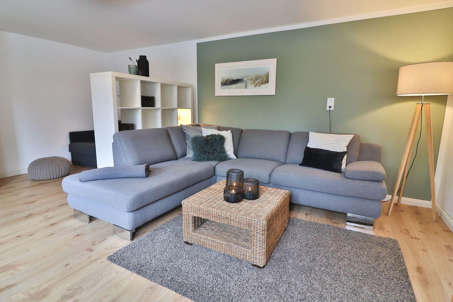 Der Wohnbereich lädt mit viel Platz und gemütlicher Atmosphäre zum gemeinsamen Verweilen ein. Ein komfortables Schlafsofa (Liegefläche 140 x 190 cm), eine Sofaecke und TV schaffen den perfekten Rahmen für entspannte Abende. Für Unterhaltung und Komfort sorgen zwei TVs, eine HiFi-Anlage und kostenfreies WLAN. Dank kontaktlosem Check-in und Check-out über Schlüsseltresore genießen Sie maximale Flexibilität bei Ihrer An- und Abreise.