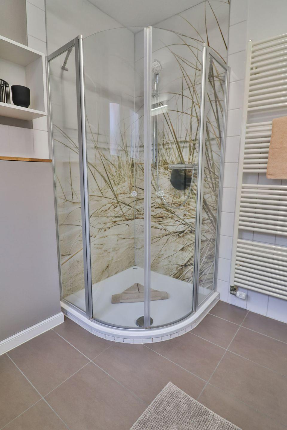 Das helle Tageslichtbad bietet Dusche, WC und Waschbecken. Spiegel, Kosmetikspiegel und Haartrockner stehen selbstverständlich für Sie bereit.