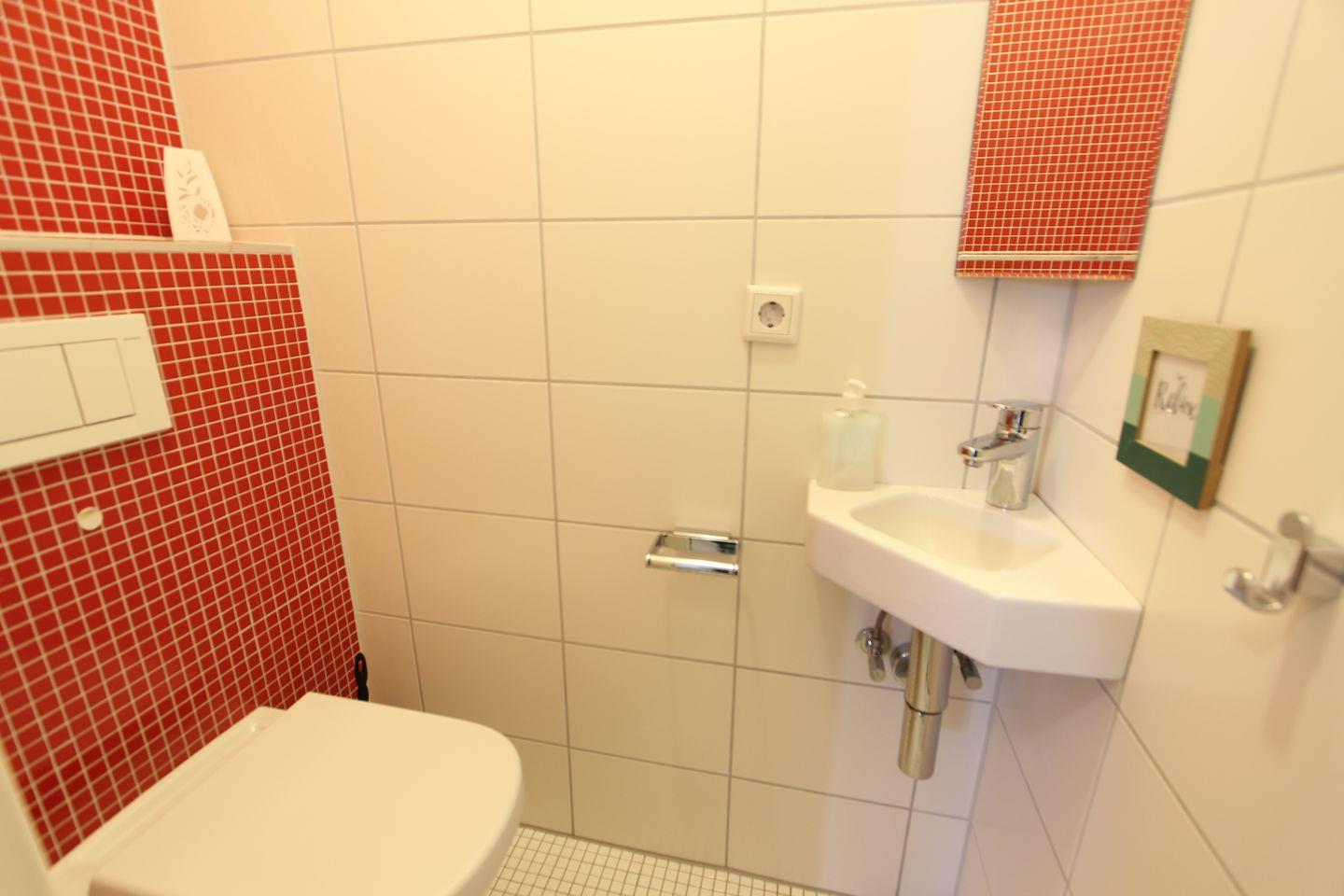 Im Wohnzimmer befindet sich eine gemütliche Couchecke und die voll ausgestattete Küchenzeile u.a. mit einem Geschirrspüler, Kombigerät Backofen und Mikrowelle mit Ceranfeld, Eierkocher, Toaster, Milchaufschäumer, Mixer mit Rührgerät mit Knet- und Pürieraufsatz.