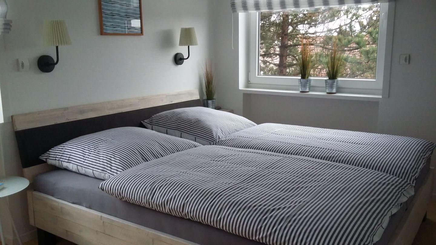 Zwei Schlafzimmer, SZ 1 mit Doppelbett 180 cm x 200 cm, TV, SZ 2 mit zwei Einzelbetten