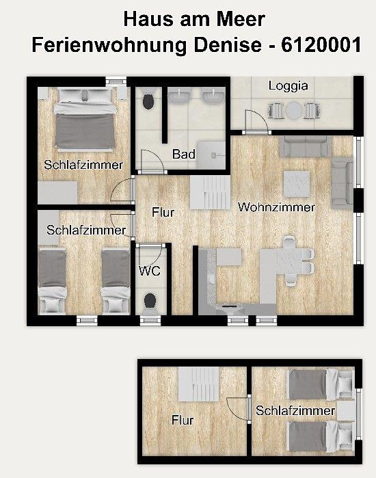Entdecken Sie unsere komfortable Ferienwohnung "Denise" im "Haus am Meer" auf Langeoog! Die moderne Unterkunft in strandnaher Lage bietet Ihnen auf 70 m² Platz für 4 Personen - ideal für Ihren Familienurlaub. Genießen Sie Annehmlichkeiten wie einen offenen Wohnraum, zwei separate Schlafzimmer, ein modernes Tageslichtbad mit Gäste-WC sowie eine eigene Loggia und einen Gemeinschaftsgarten mit Grillmöglichkeit. Wir wünschen Ihnen traumhafte Ferien an der Nordsee!