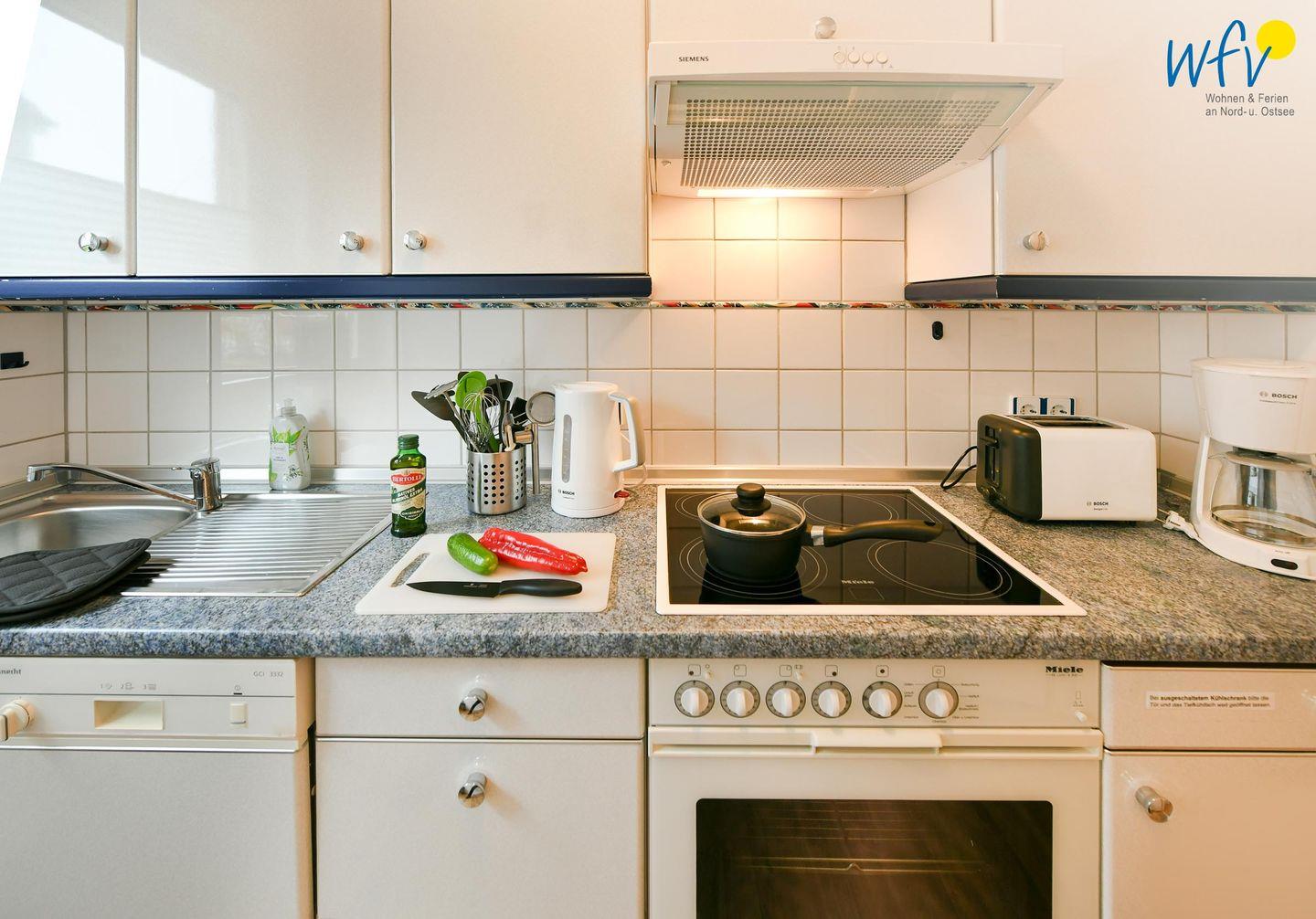 Für die Selbstverpflegung steht Ihnen eine separate gut ausgestattete Küche zur Verfügung - u.a. mit 4-Platten-Ceranherd, Backofen, Kühlschrank mit Gefrierfach und Spülmaschine. So können Sie ganz nach Belieben Ihre eigenen Mahlzeiten zubereiten.