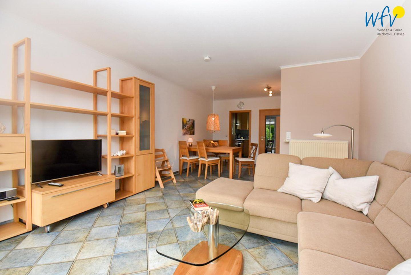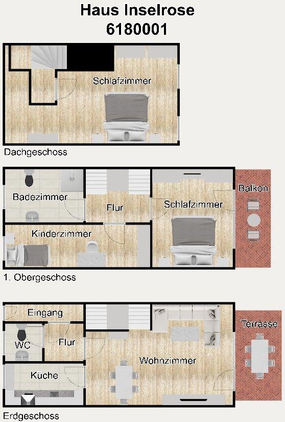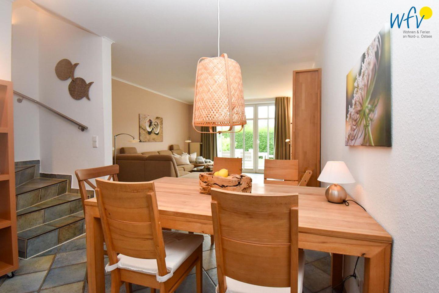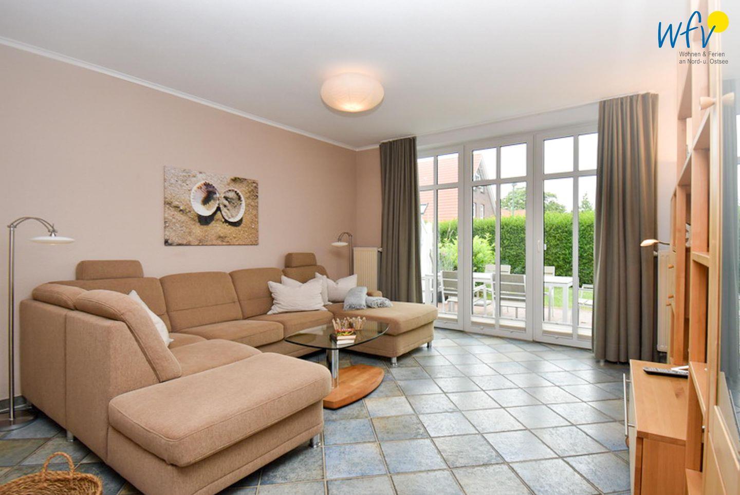 Auf einer großzügigen Wohnfläche von 100 m² über drei Etagen erwartet Sie eine optimale Raumaufteilung - bestehend aus einem ansprechenden Wohnraum mit Couchecke und Essplatz, einer separaten Küche, drei separaten Schlafzimmern und zwei Duschbädern. Klare Meeresluft genießen Sie auf der windgeschützten Loggia und auf der windgeschützten möblierten Süd-Terrasse mit angrenzendem Garten. Perfekt, um sich auf der Sonnenliege zu entspannen, ein gutes Buch zu lesen oder gemütlich im Freien zu essen!