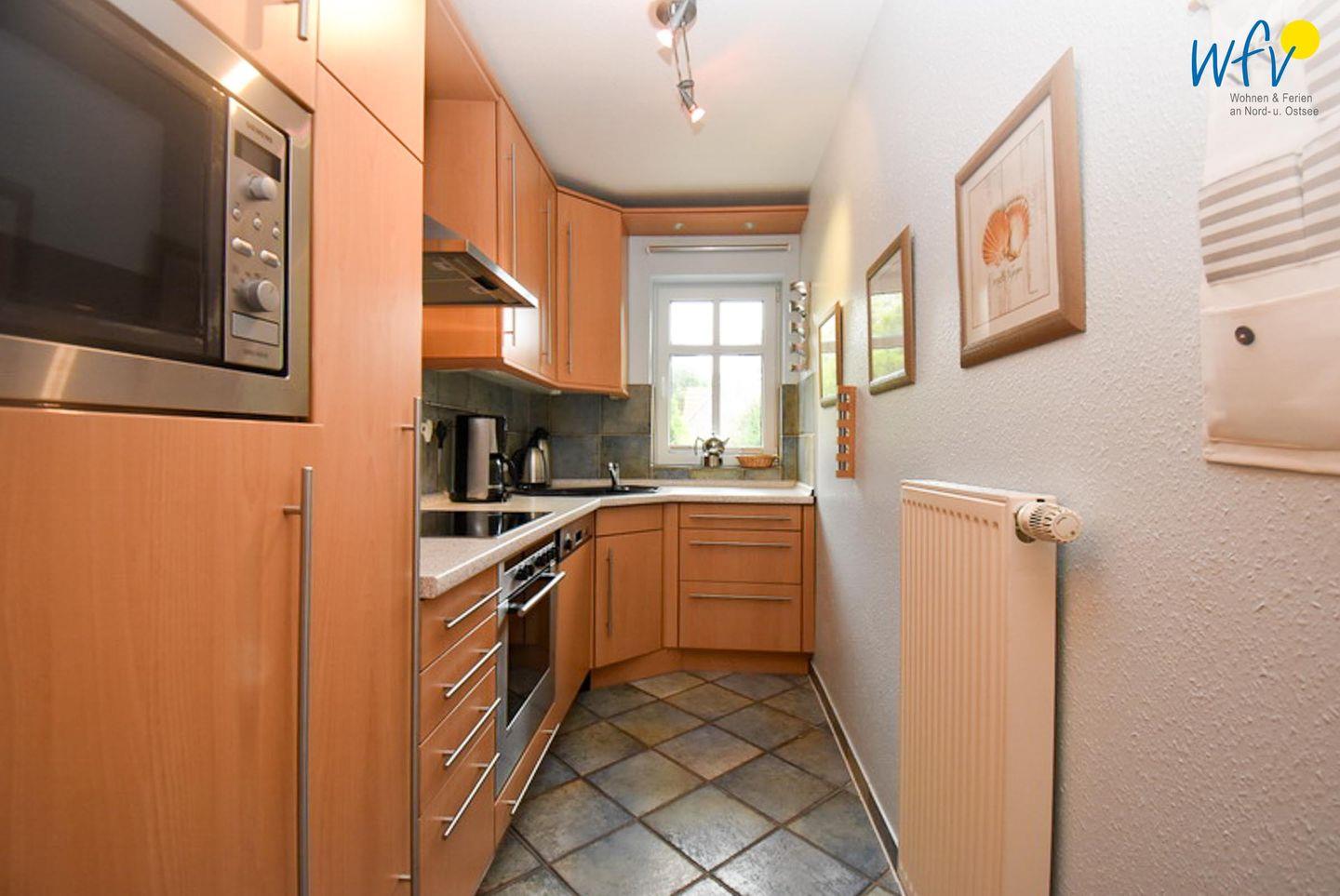 Snacks für den Strandtag und leckere Gerichte können Sie bequem in der modernen separaten Küche zubereiten. Sie verfügt u.a. über Ceranherd, Backofen, Kühlschrank mit Gefrierfach, Mikrowelle und Geschirrspüler sowie über Kaffeemaschine, Espresso-Kapselmaschine (zusätzlich), Wasserkocher, Toaster und Eierkocher.
