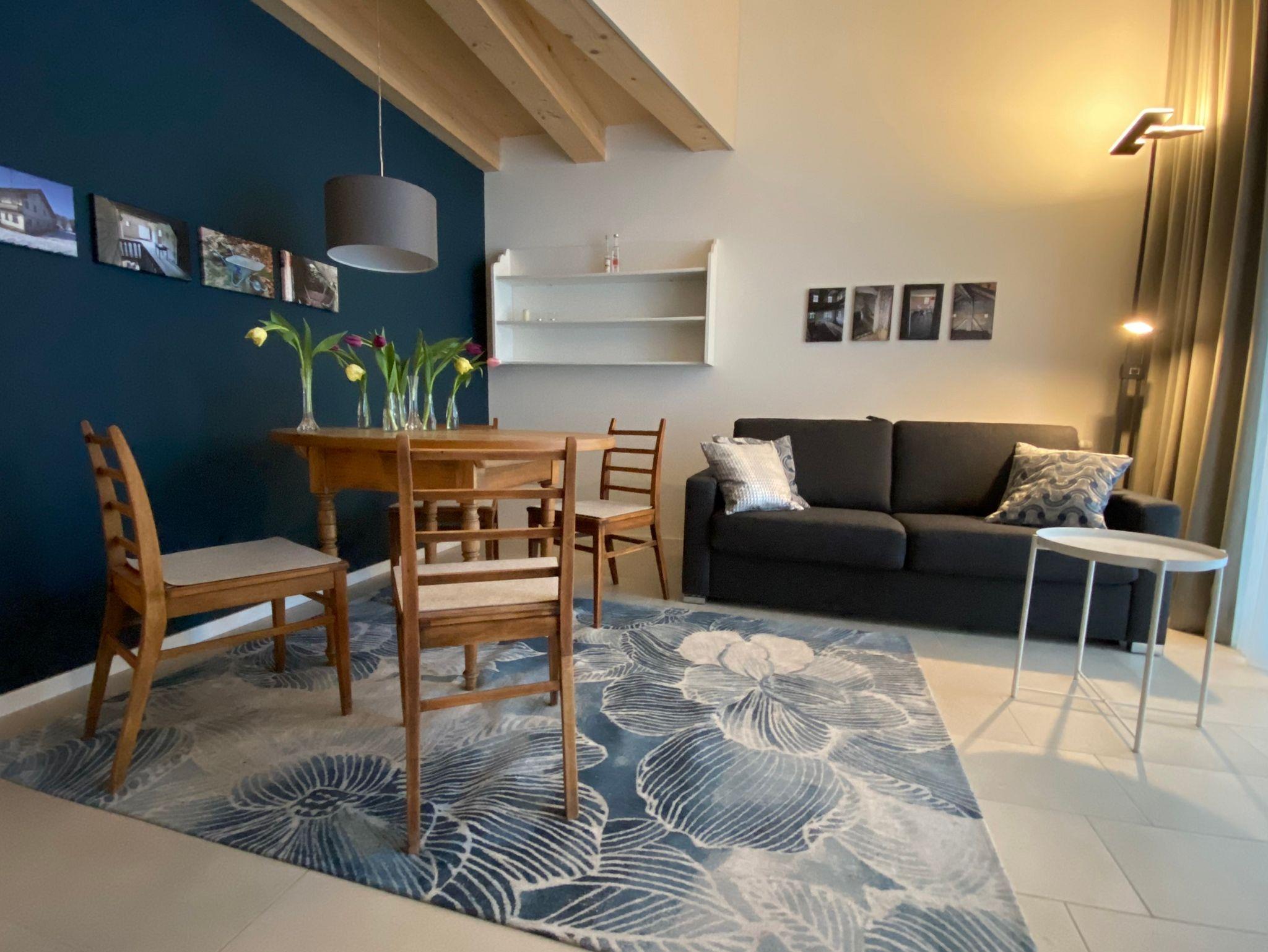 Die Ferienwohnung befindet sich in einem Holzneubau. Im Erdgeschoss befinden sich eine offene Küche, ein Esstisch mit 4 Stühlen, Sofa mit Schlaffunktion, Smart-TV und das Badezimmer mit WC und ebenerdiger Dusche.