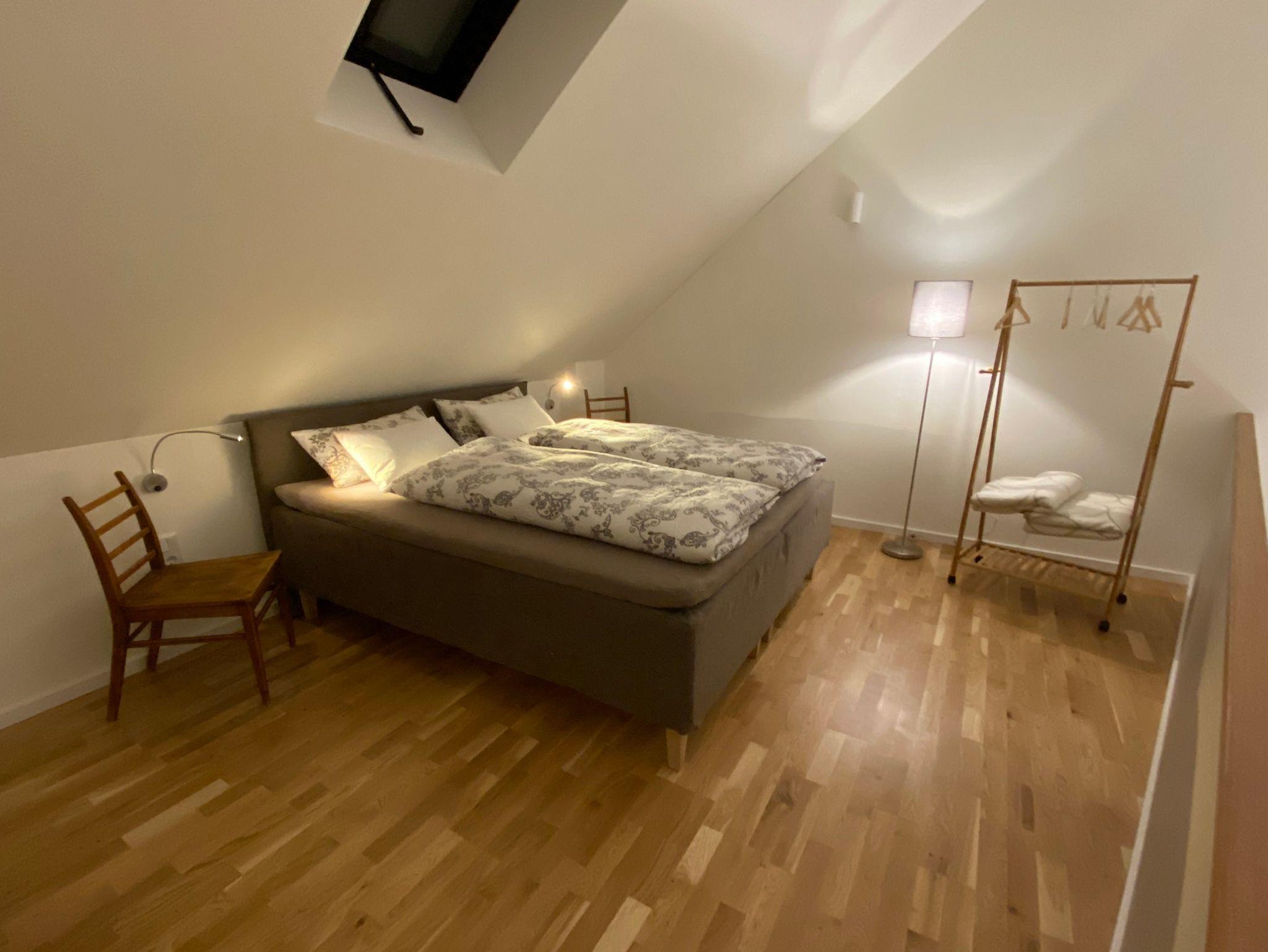 Auf der großen Schlafgalerie erwartet Sie ein King-Size Boxspringbett für 2 Personen (Fennobed).